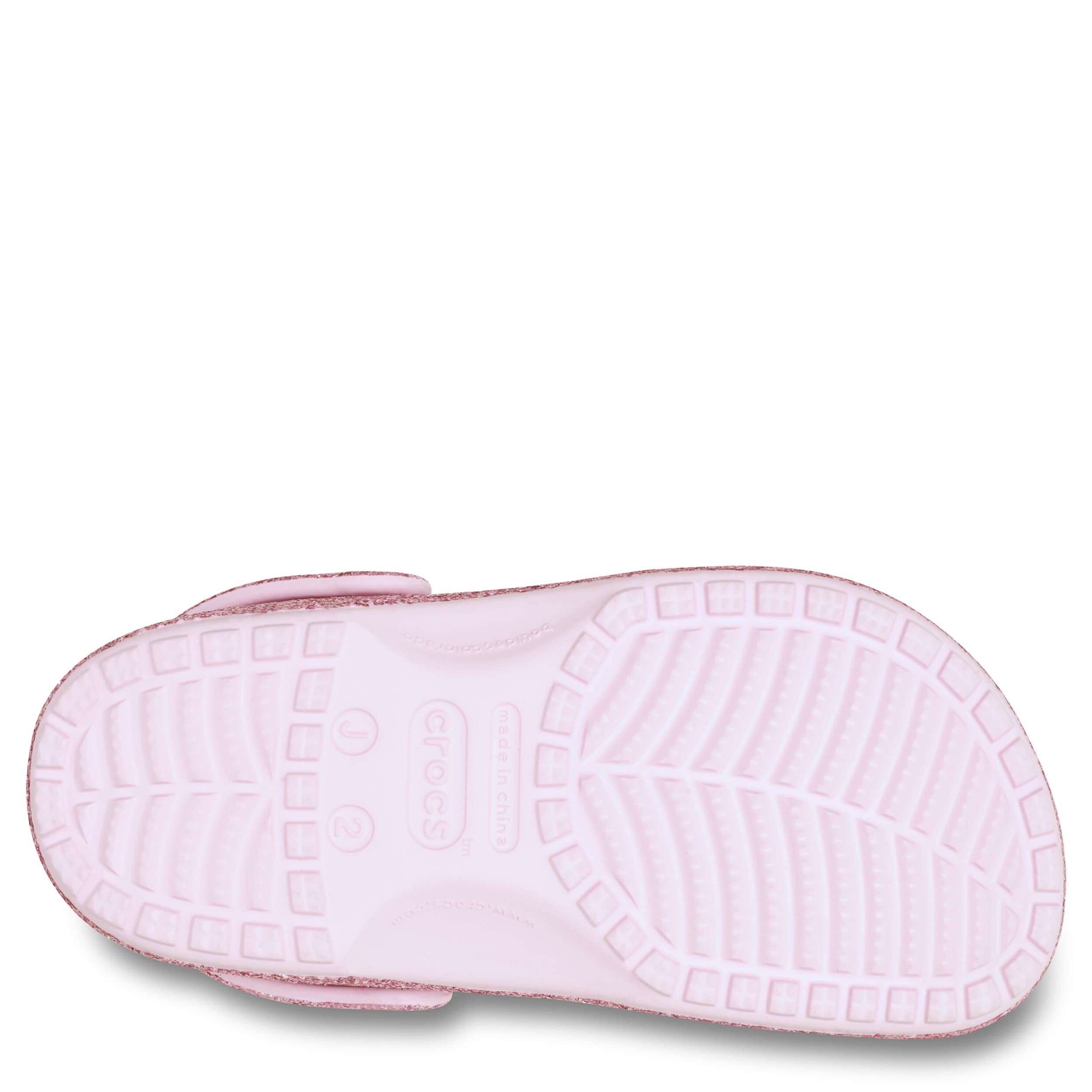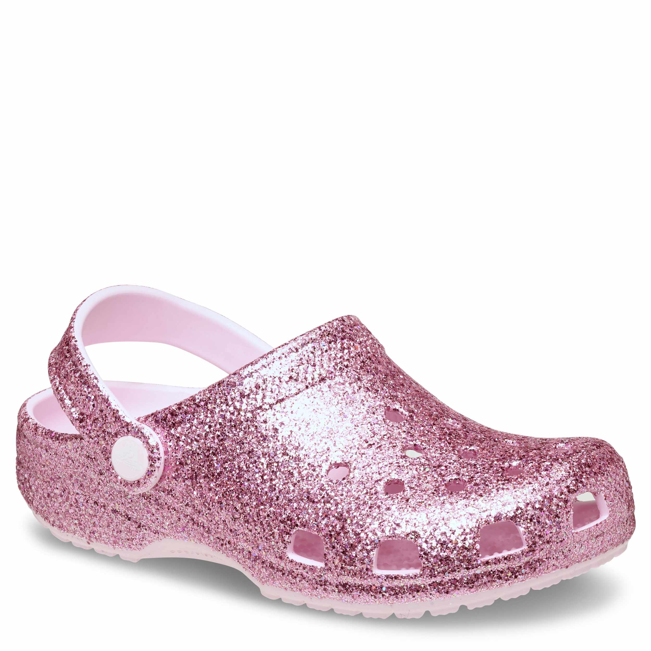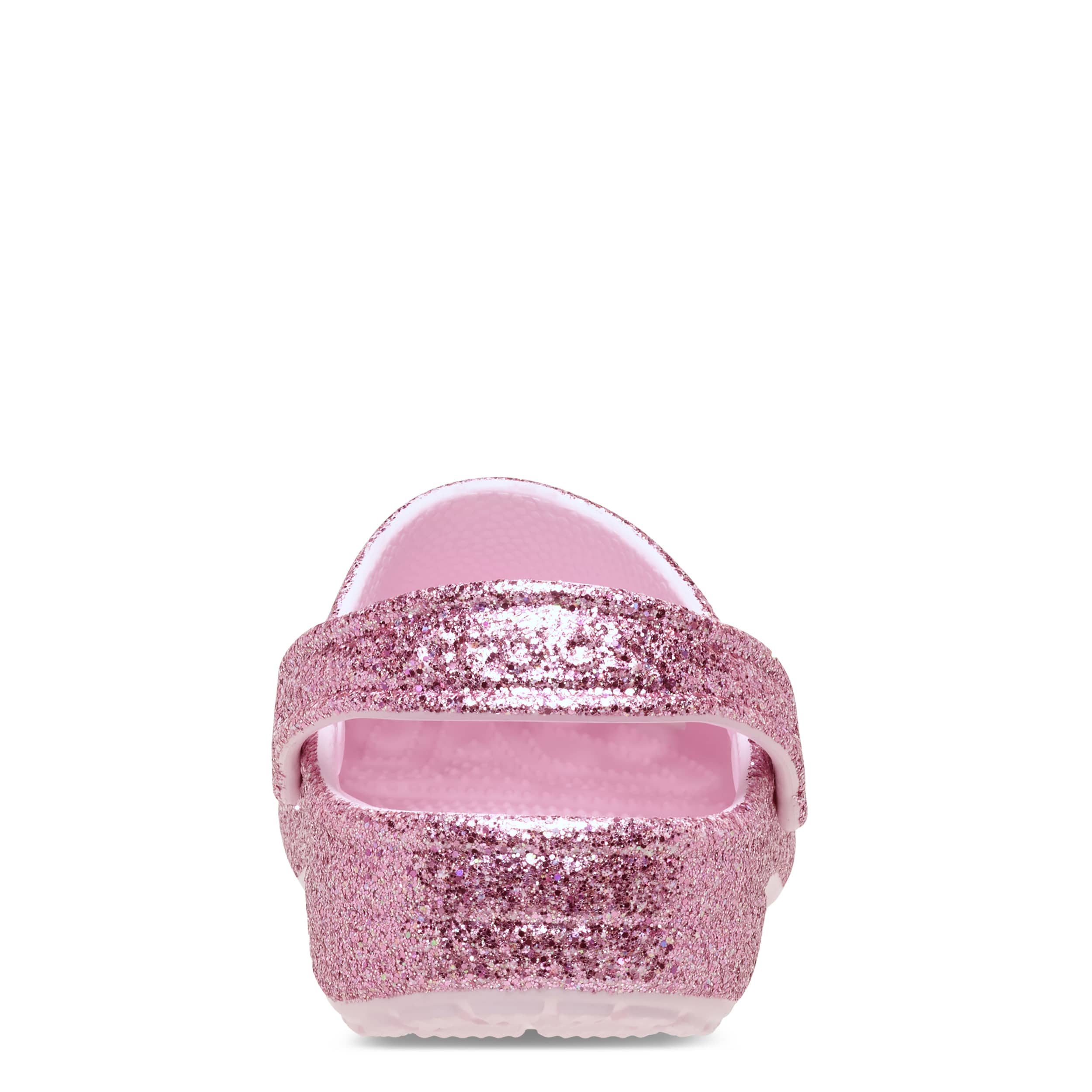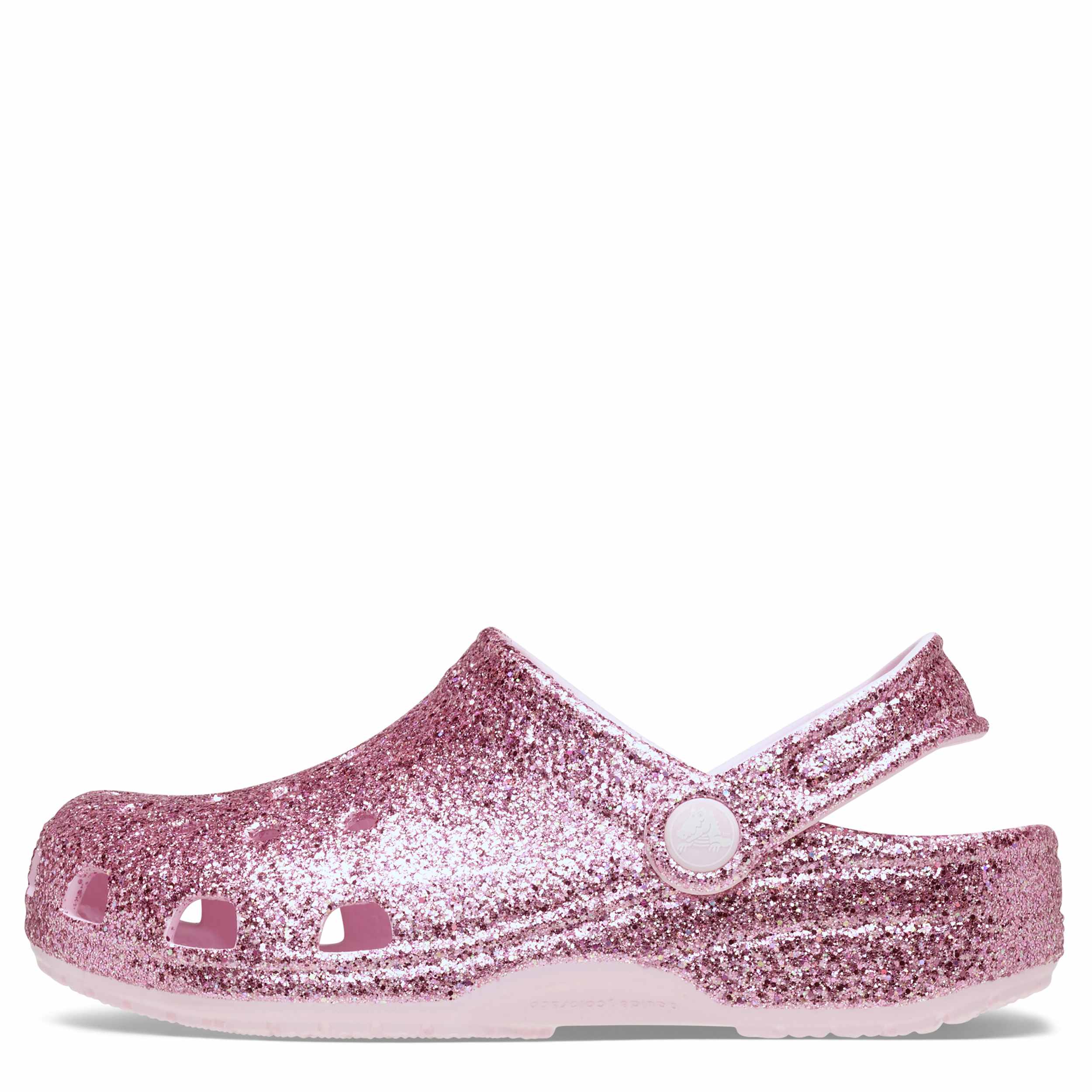 She can't go wrong with the Classic Glitter girls' clog by Crocs. The Iconic Crocs Comfort material offers lightweight, flexible cushioning and a gentle massaging sensation, while the well-ventilated upper circulates air for a cool, dry fit in these pink milk glitter Crocs.