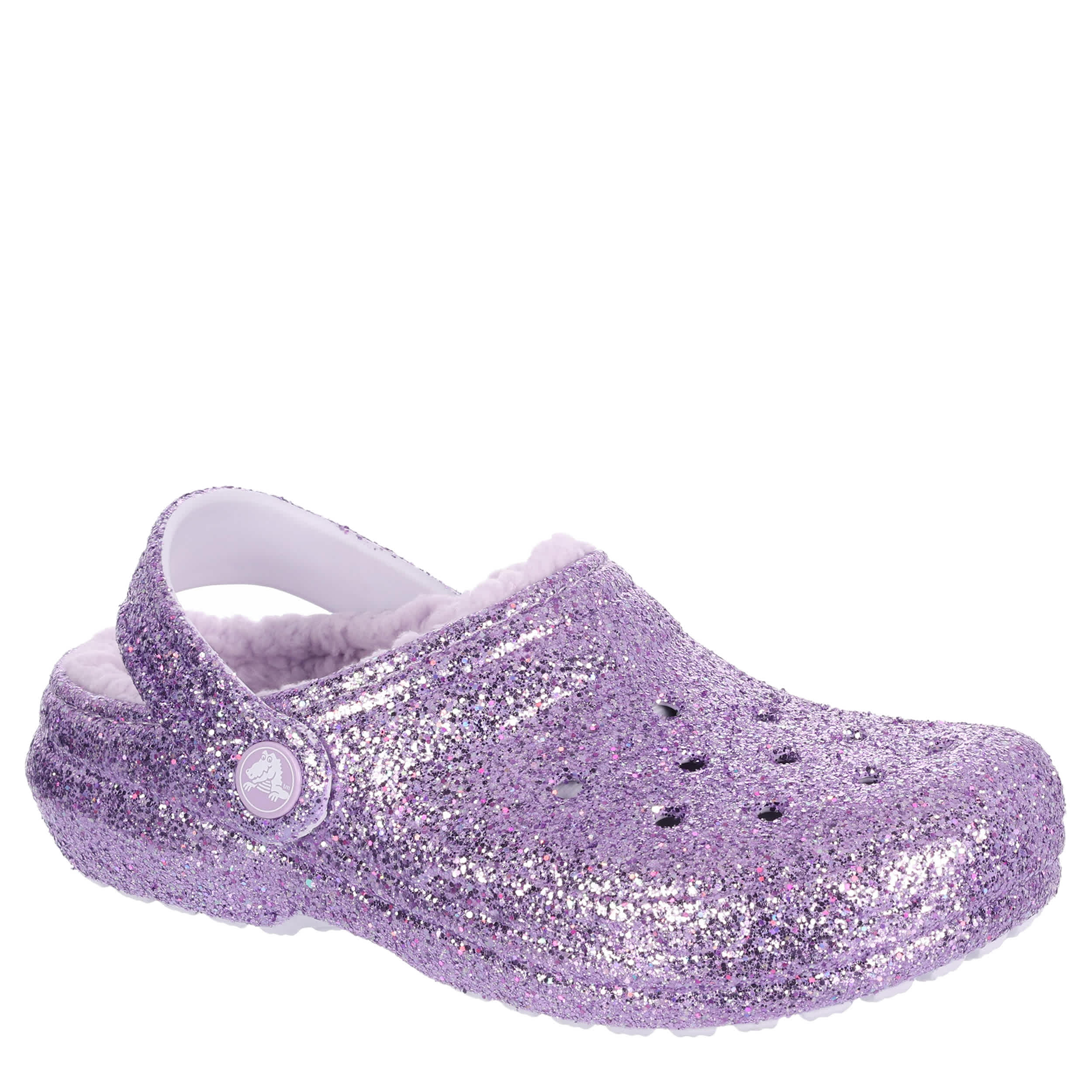 Let her enjoy even more comfort with the Crocs Classic Lined Chunky Glitter clog. Give your daughter a dose of the warm & fuzzies with a fleece lining that cradles her foot in cozy support. She'll never want to take them off.