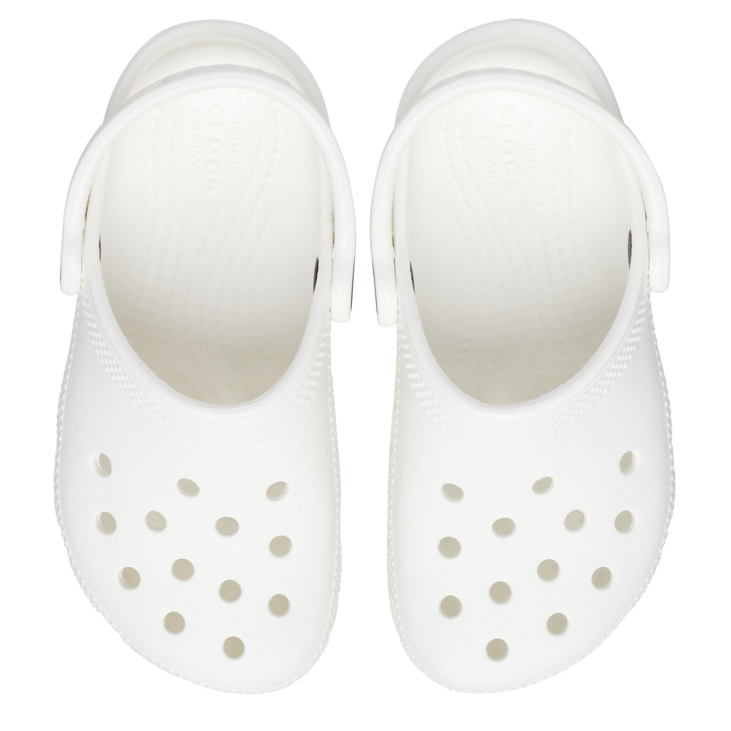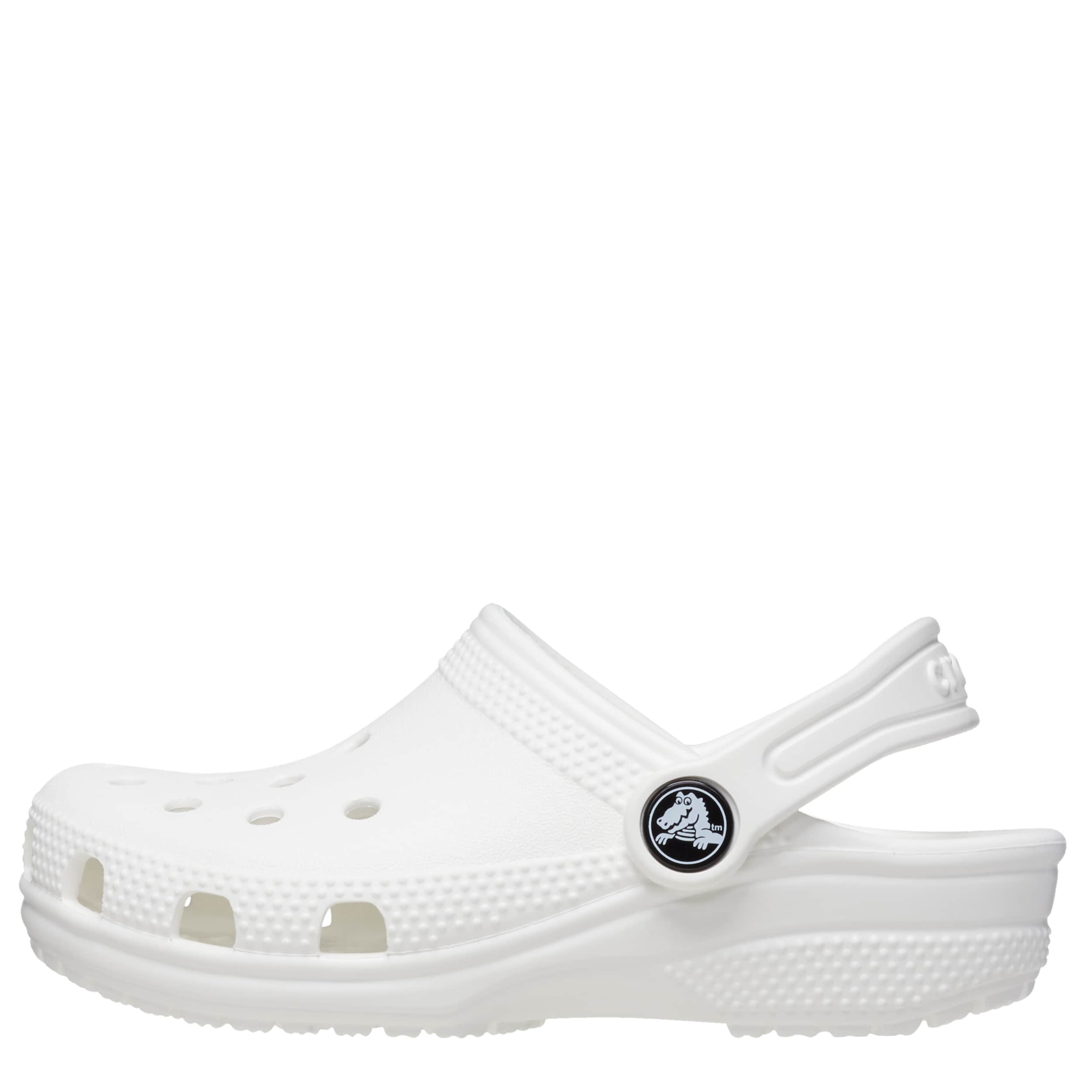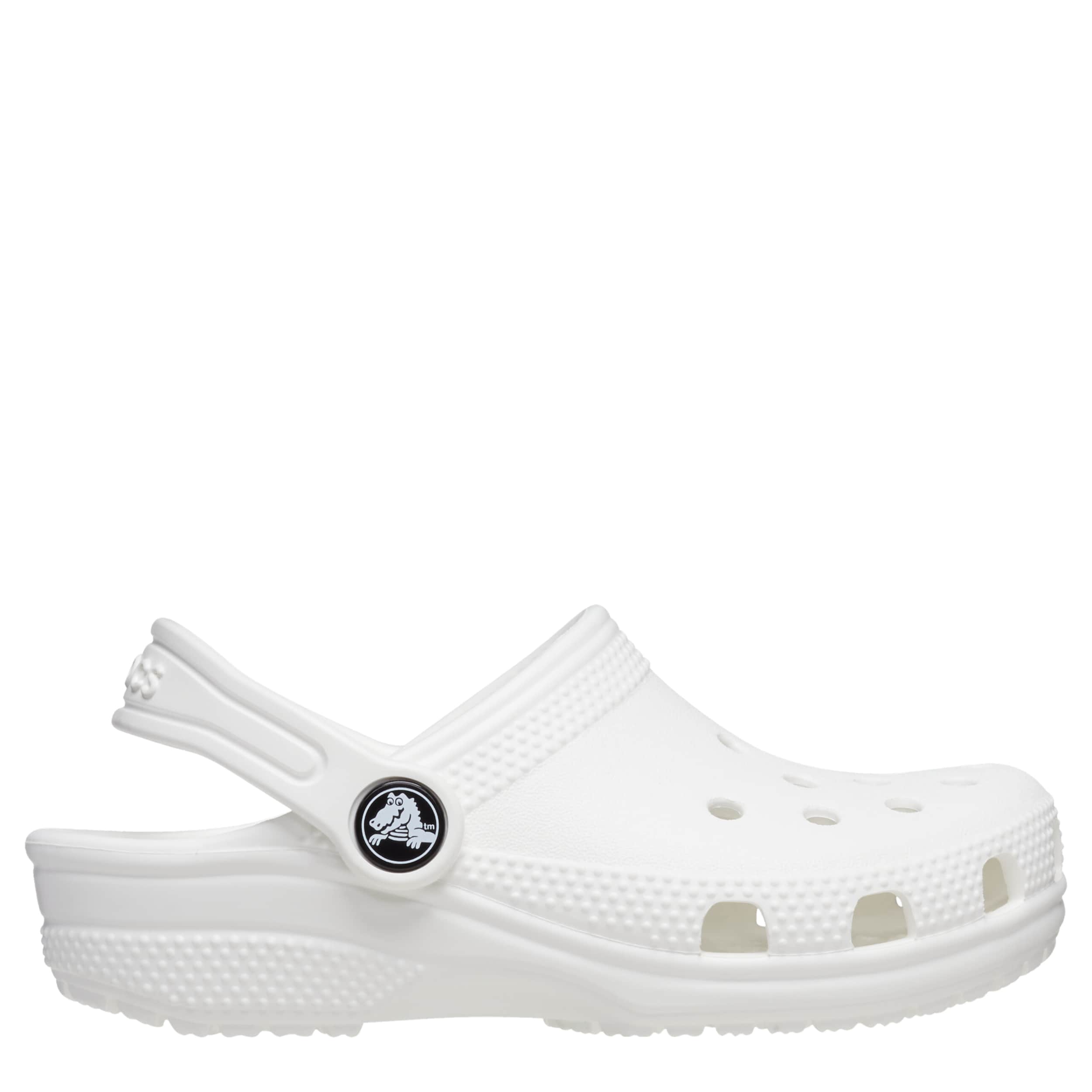 She can't go wrong with the Classic infant girls' clog by Crocs. The Iconic Crocs Comfort material offers lightweight, flexible cushioning and a gentle massaging sensation, while the white upper circulates air for a cool, dry fit.