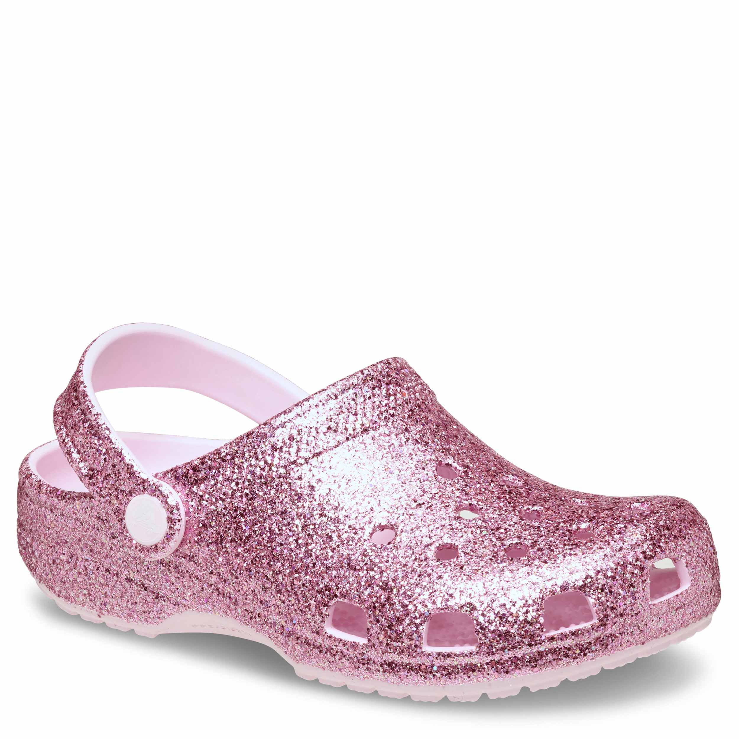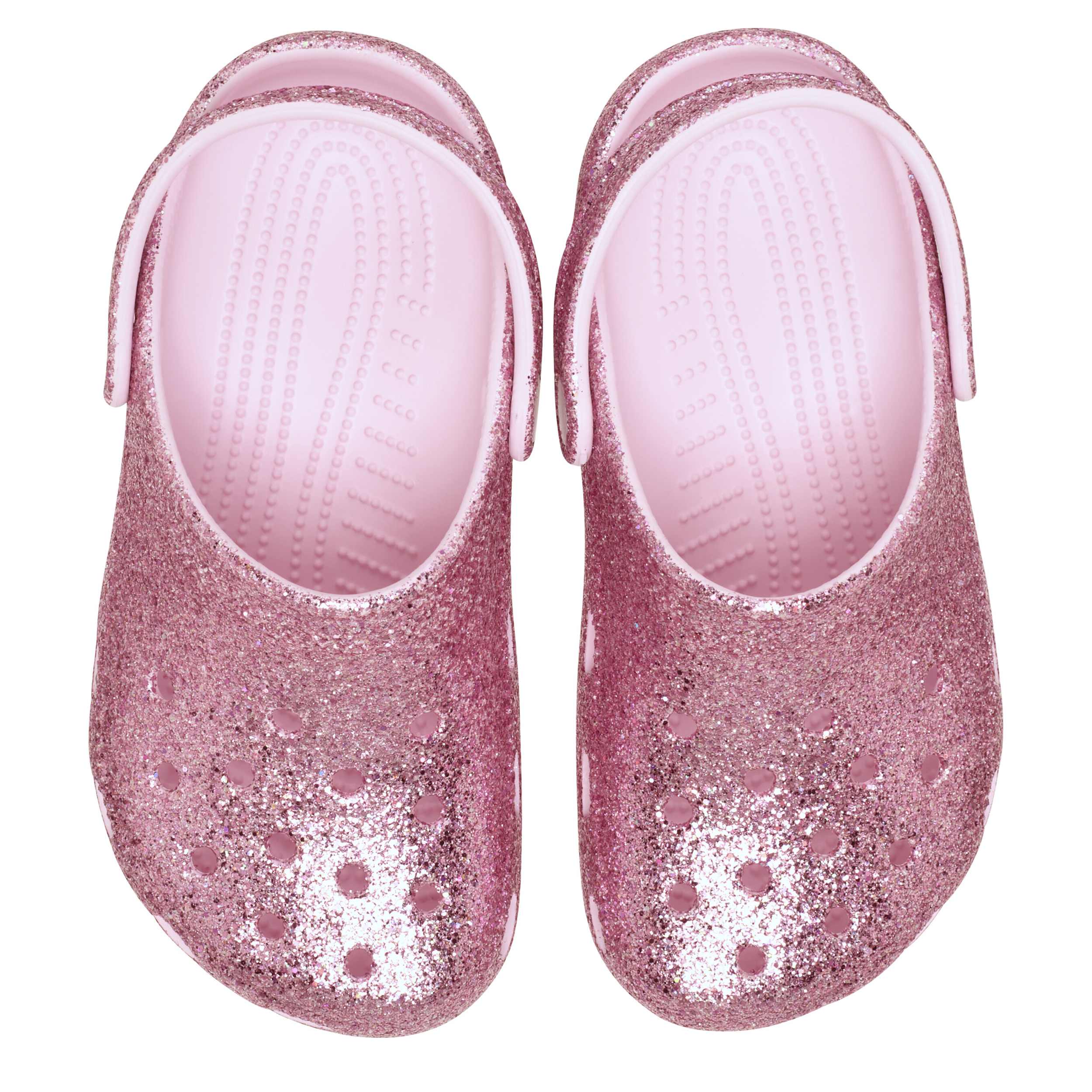 She can't go wrong with the Classic Glitter infant girls' clog by Crocs. The Iconic Crocs Comfort material offers lightweight, flexible cushioning and a gentle massaging sensation, while the well-ventilated glitter upper circulates air for a cool, dry fit.