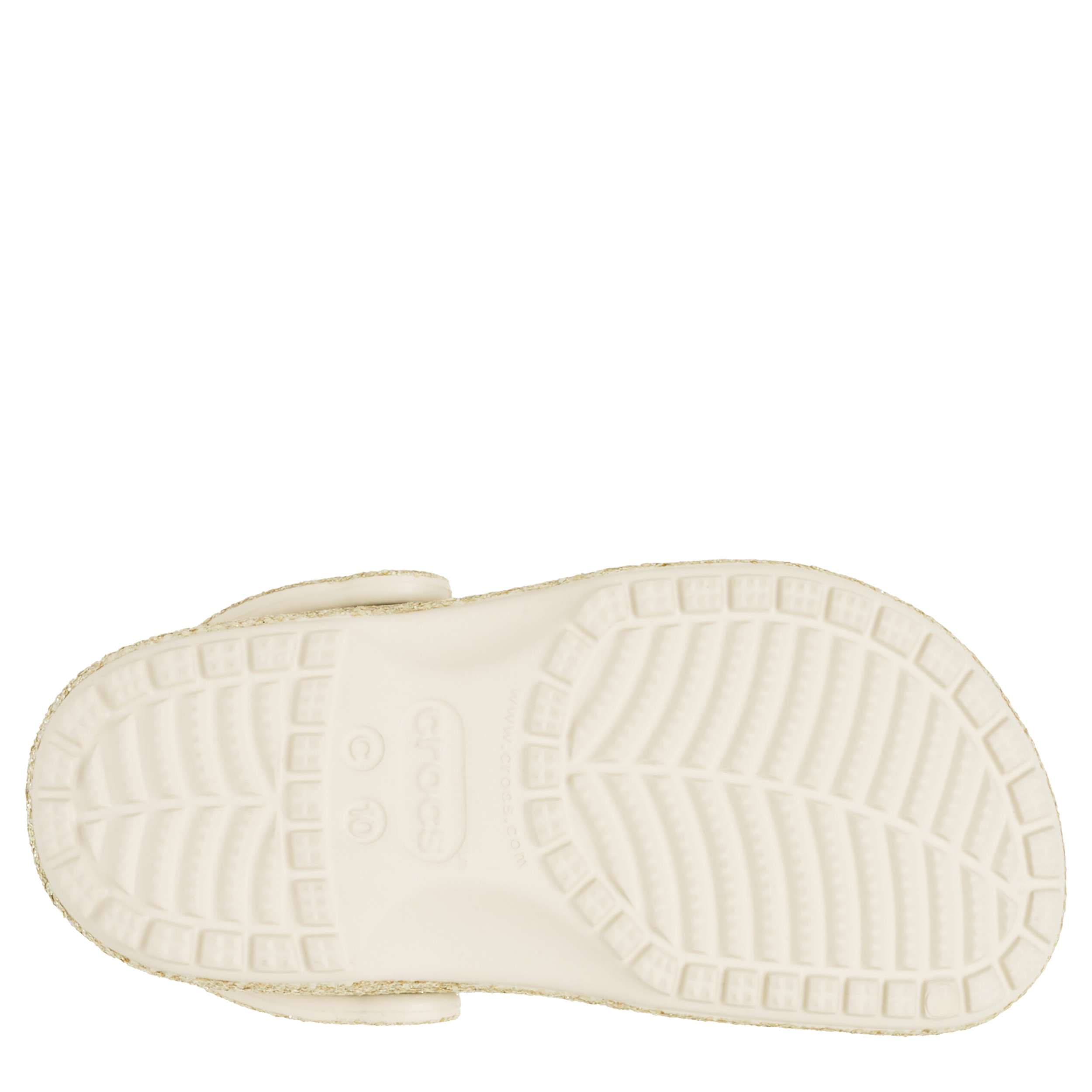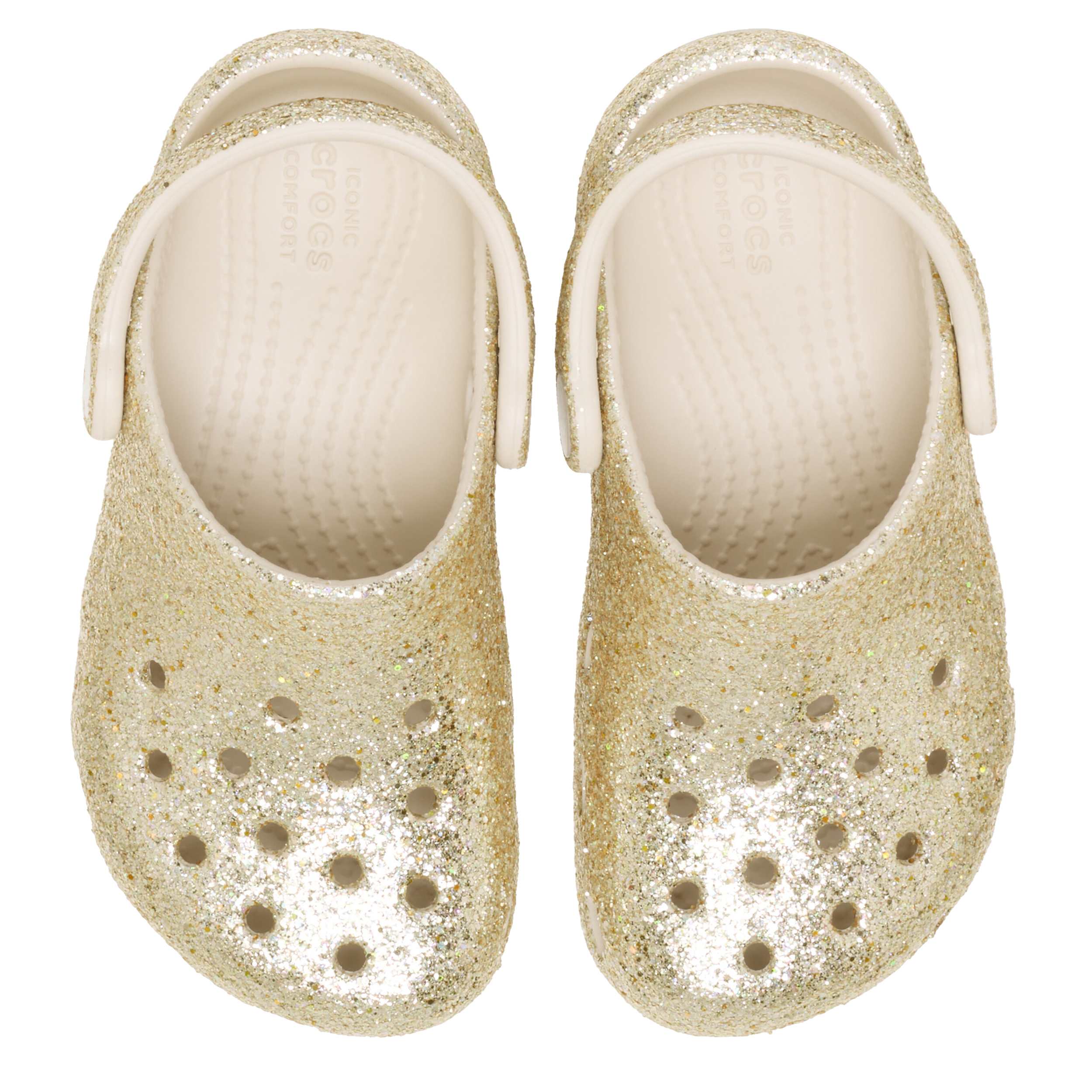 She can't go wrong with the Classic Glitter infant girls' clog by Crocs. The Iconic Crocs Comfort material offers lightweight, flexible cushioning and a gentle massaging sensation, while the well-ventilated glittery golden upper circulates air for a cool, dry fit.