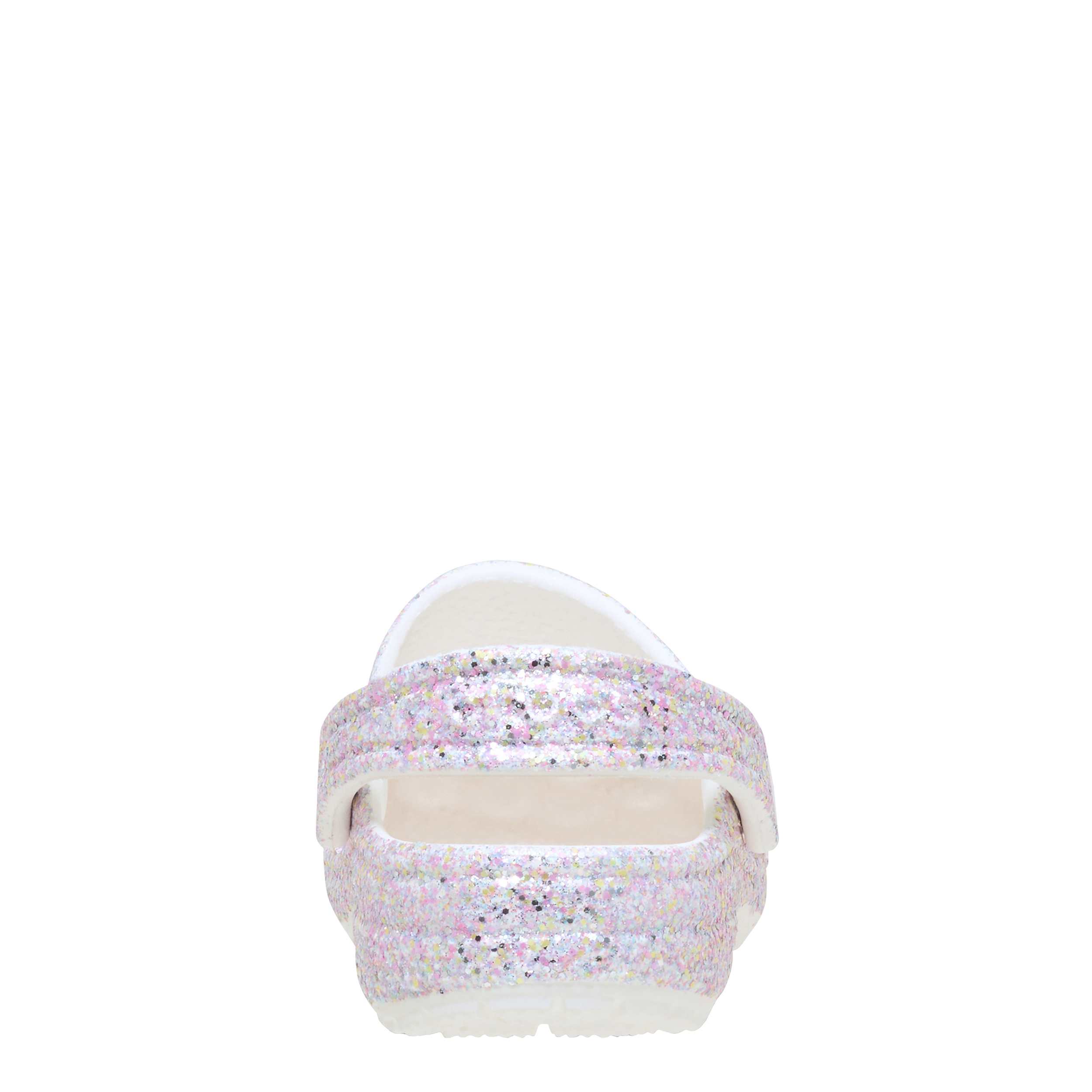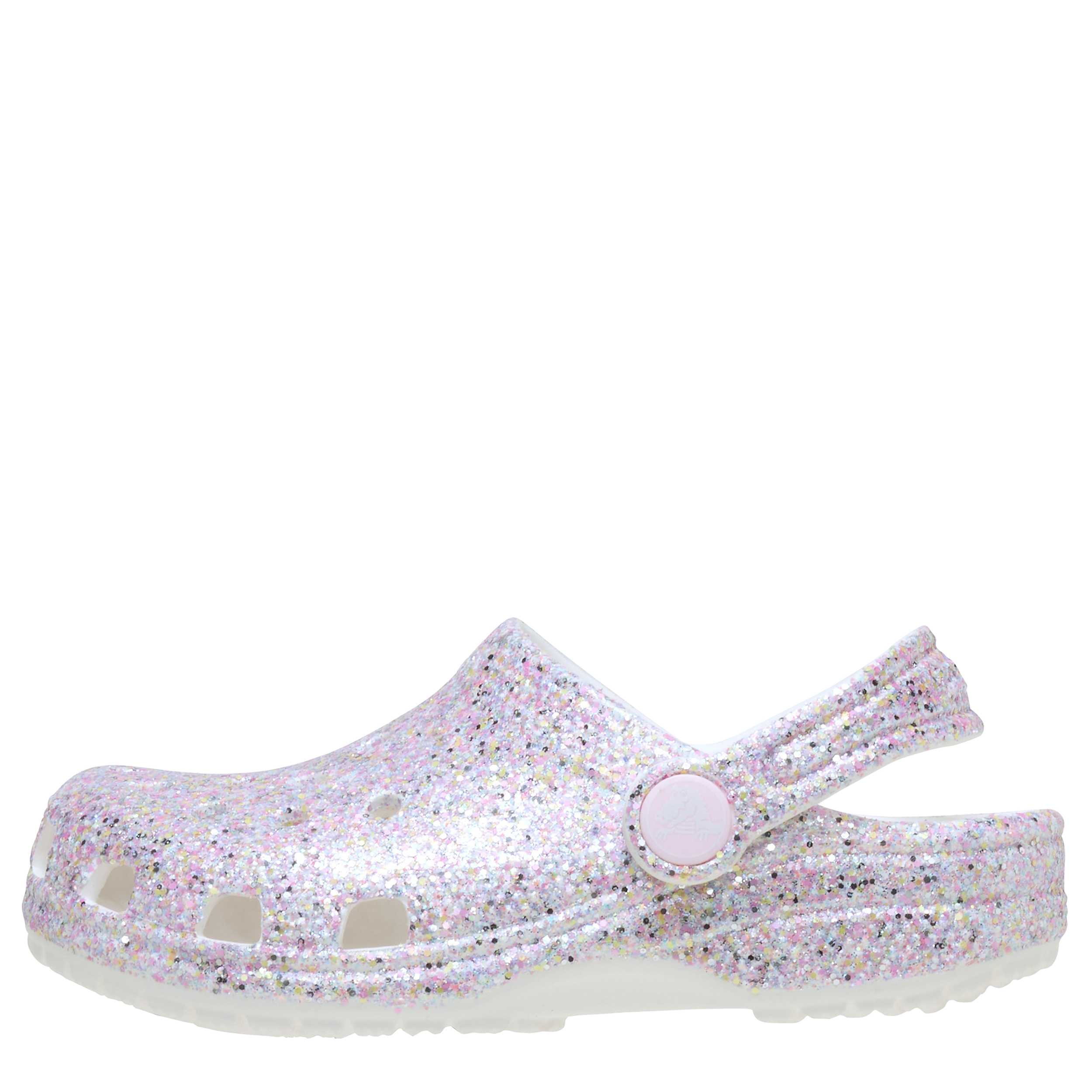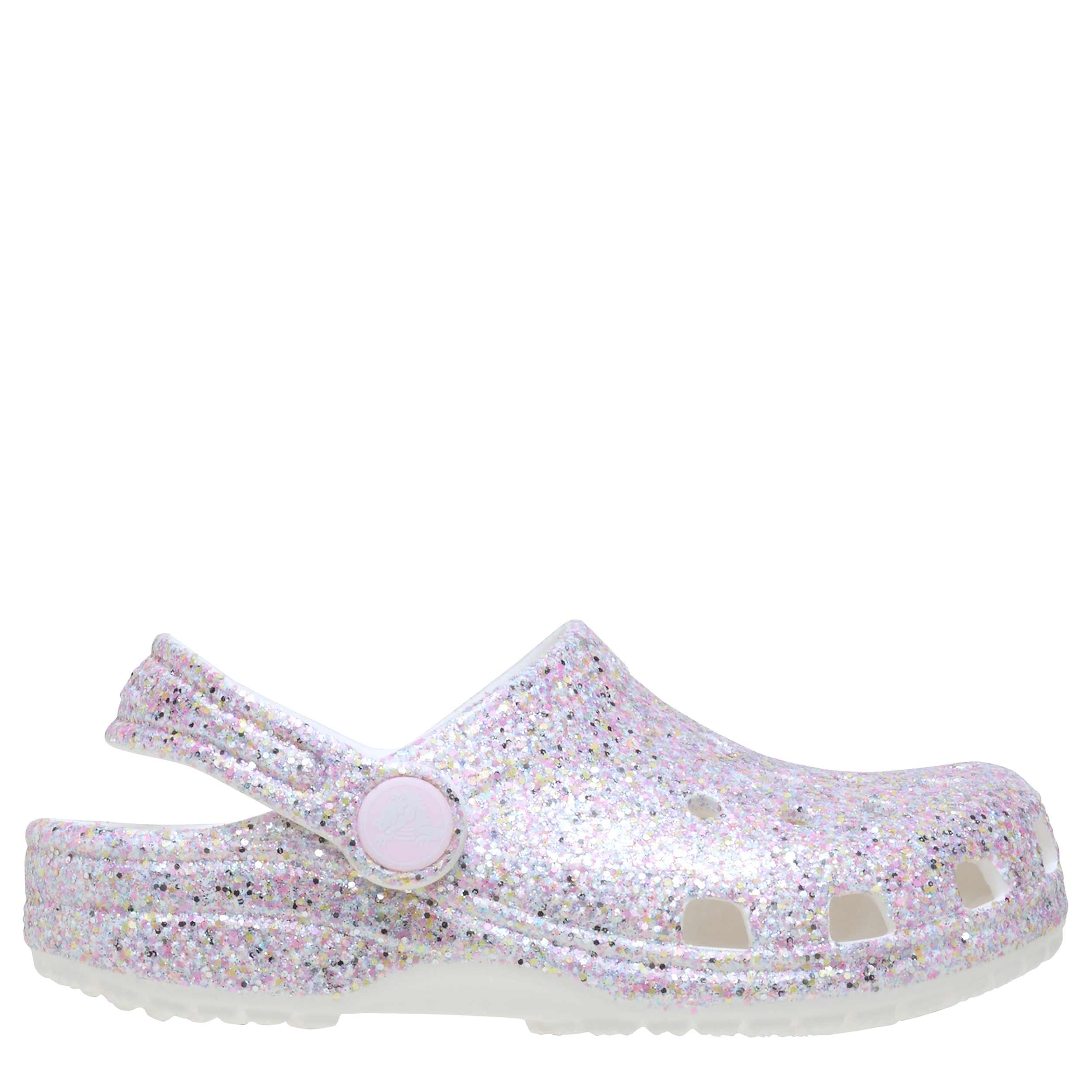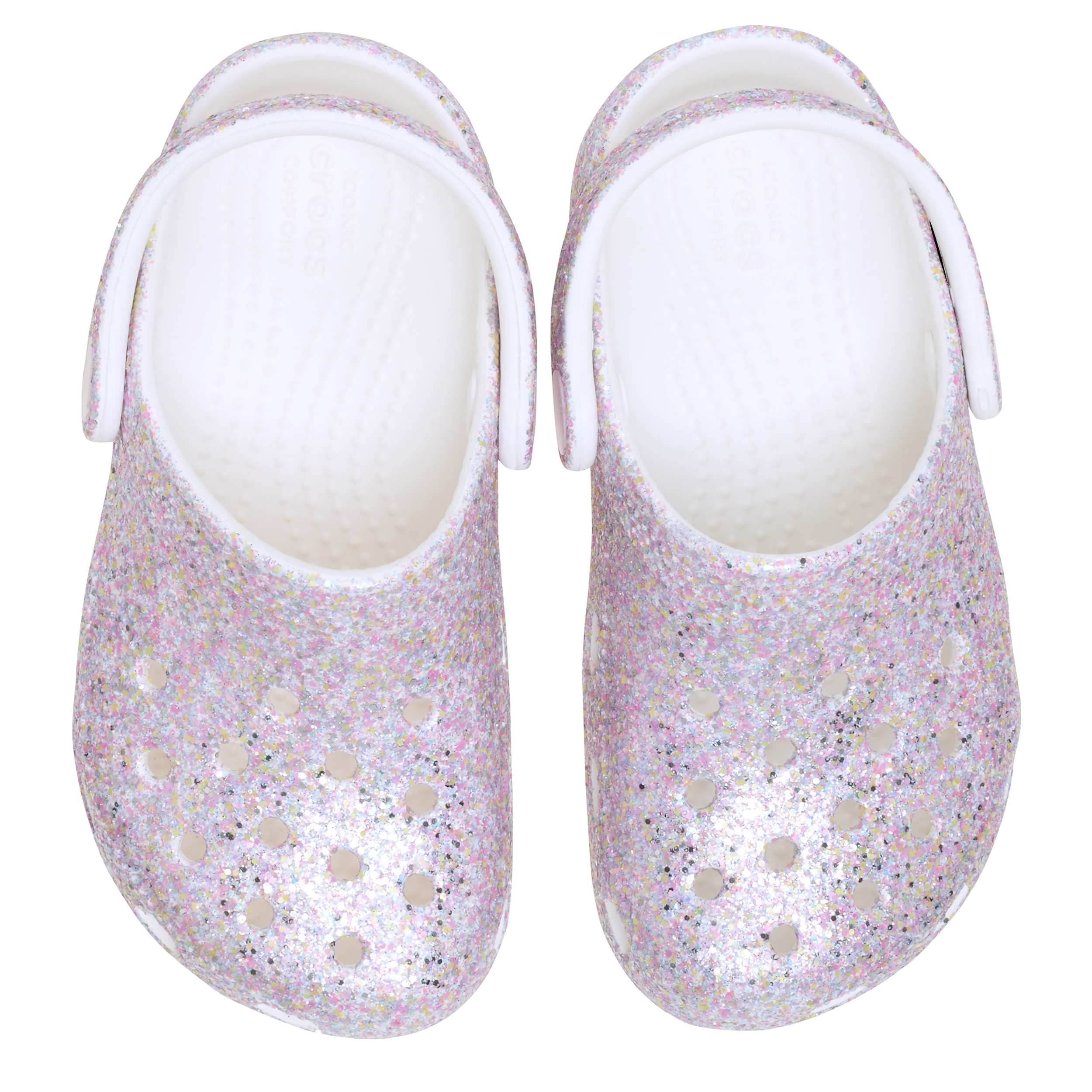 She can't go wrong with the Classic Glitter infant girls' clog by Crocs. The Iconic Crocs Comfort material offers lightweight, flexible cushioning and a gentle massaging sensation, while the well-ventilated glittery golden upper circulates air for a cool, dry fit.