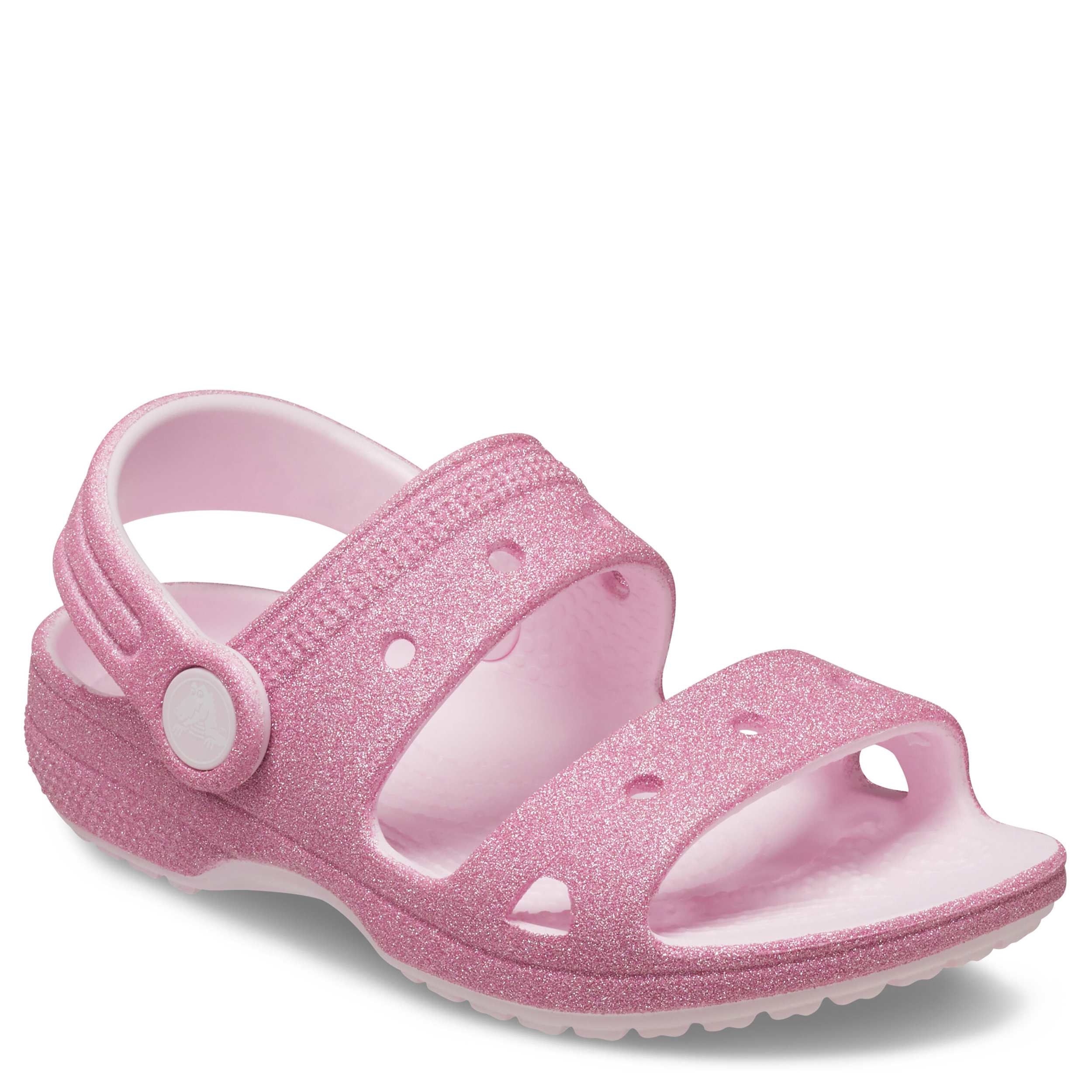 Her summer will forever be cute in the Crocs Classic Glitter sandal. Featuring Crosliteâ„¢ foam construction and glittery shine for extra style, this two-strap shoe keeps her securely comfortable. Personalize with Jibbitzâ„¢ charms.