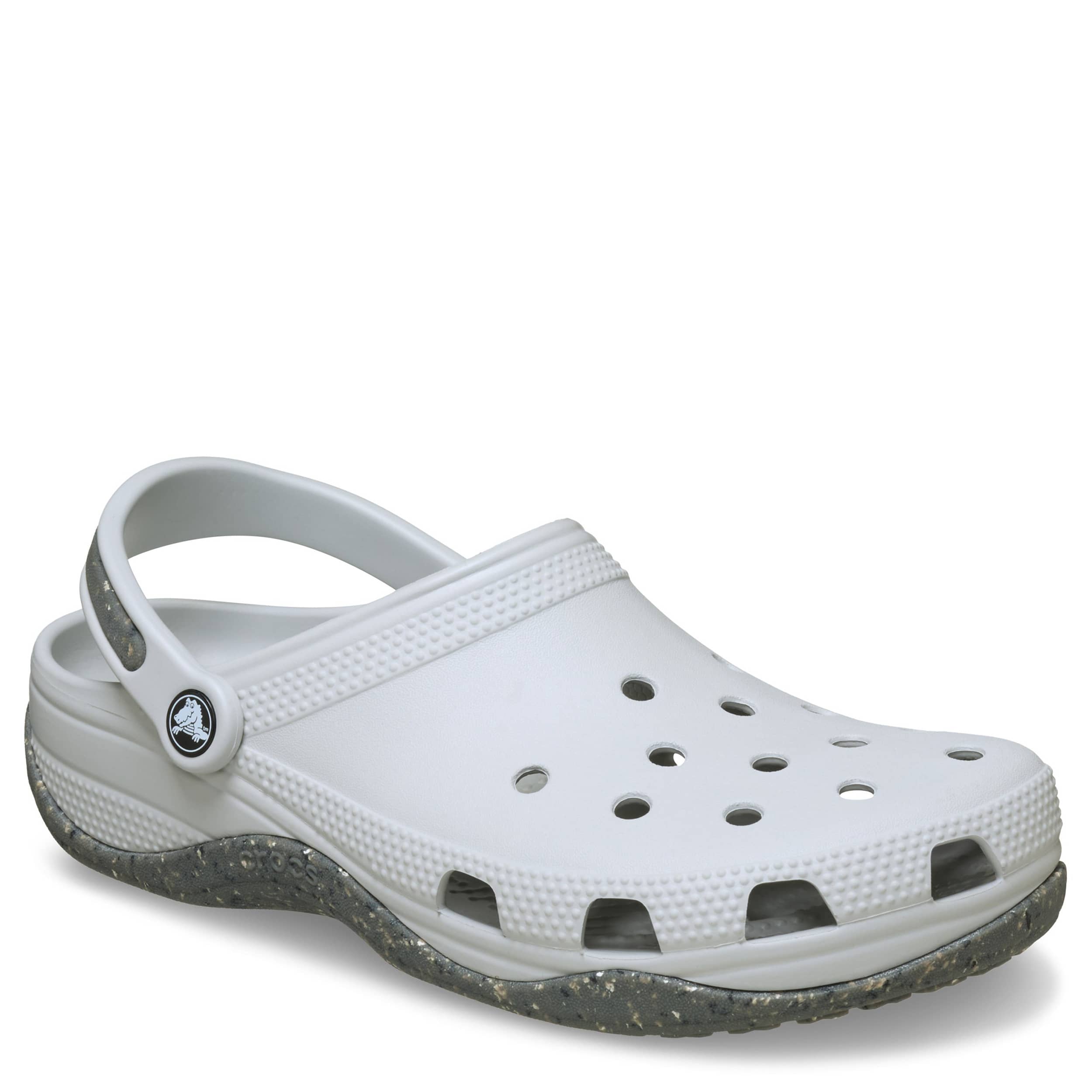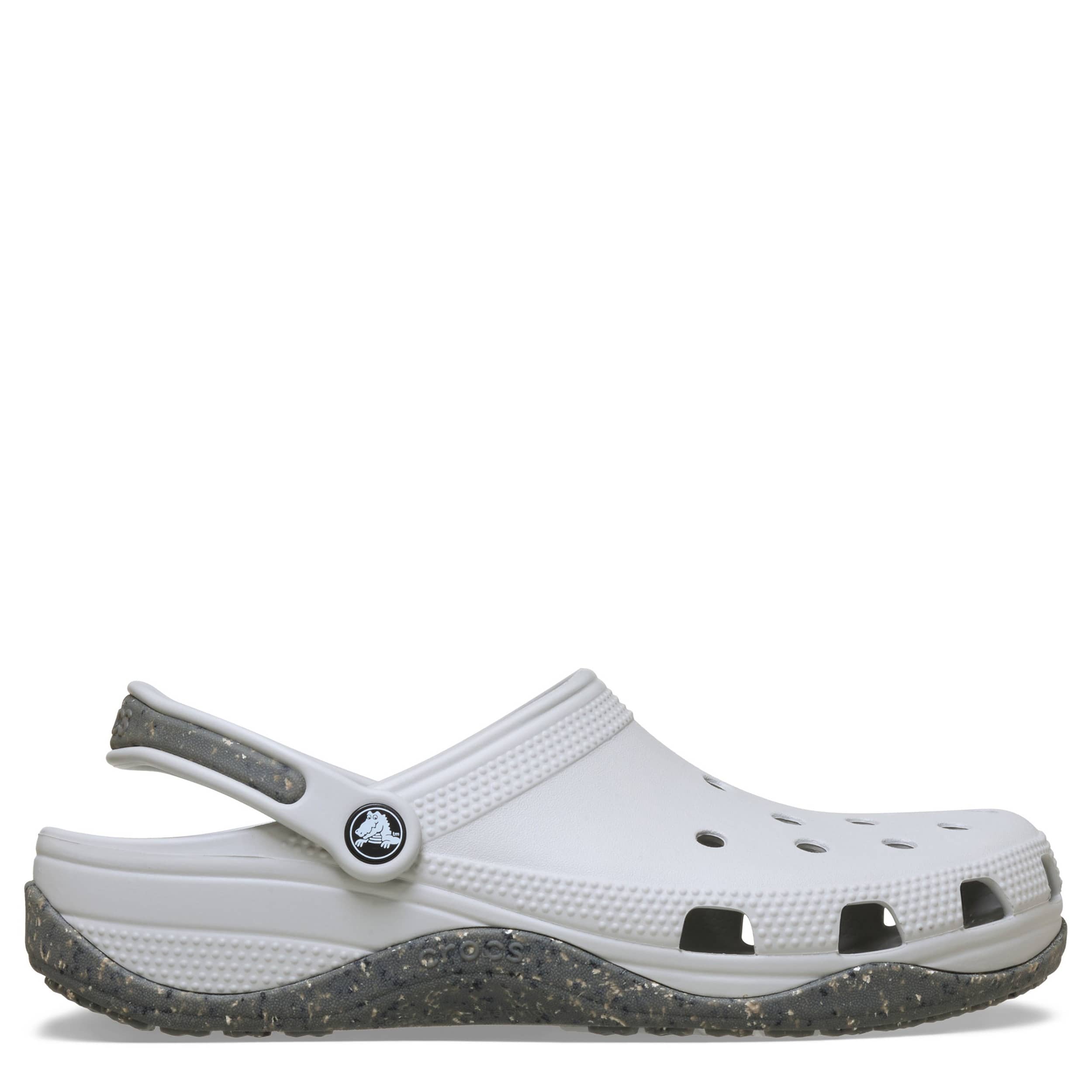 Capable with a large dose of comfort, the Classic Evo clog by Crocs are ready (give them a mission). The Iconic Crocs Comfort material offers lightweight, flexible cushioning in a fully molded Crosliteâ„¢ foam design, while the rubber detailing on the backstrap and speckled outsole add grip to these grey Crocs.