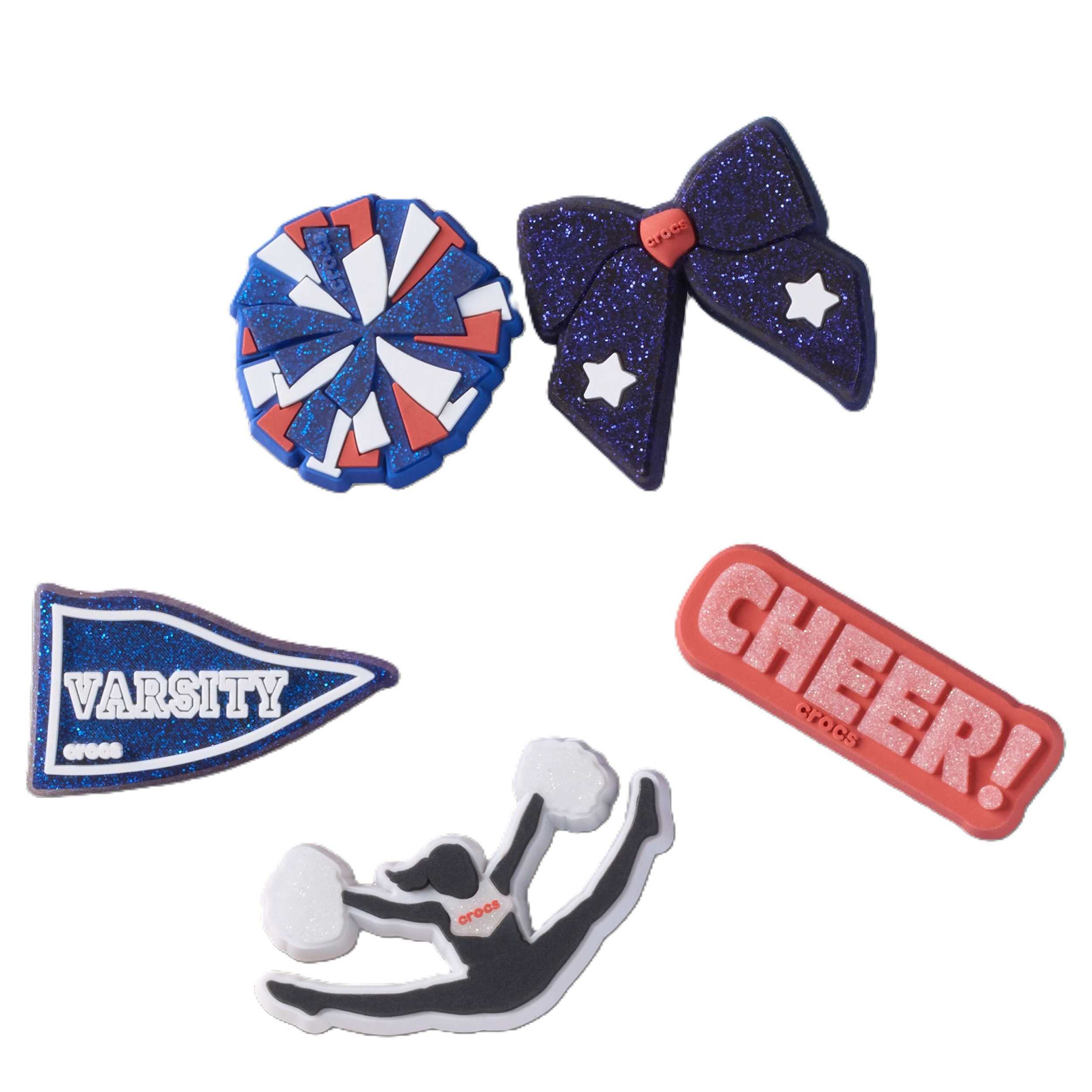 Pop some personality into your shoes with the Cheer 5 Pack of Jibbitzâ„¢ charms. It's the perfect addition to your favorite clogs, slides, sandals, bags, and more. Not a toy. Not intended for children under 3 years of age.
