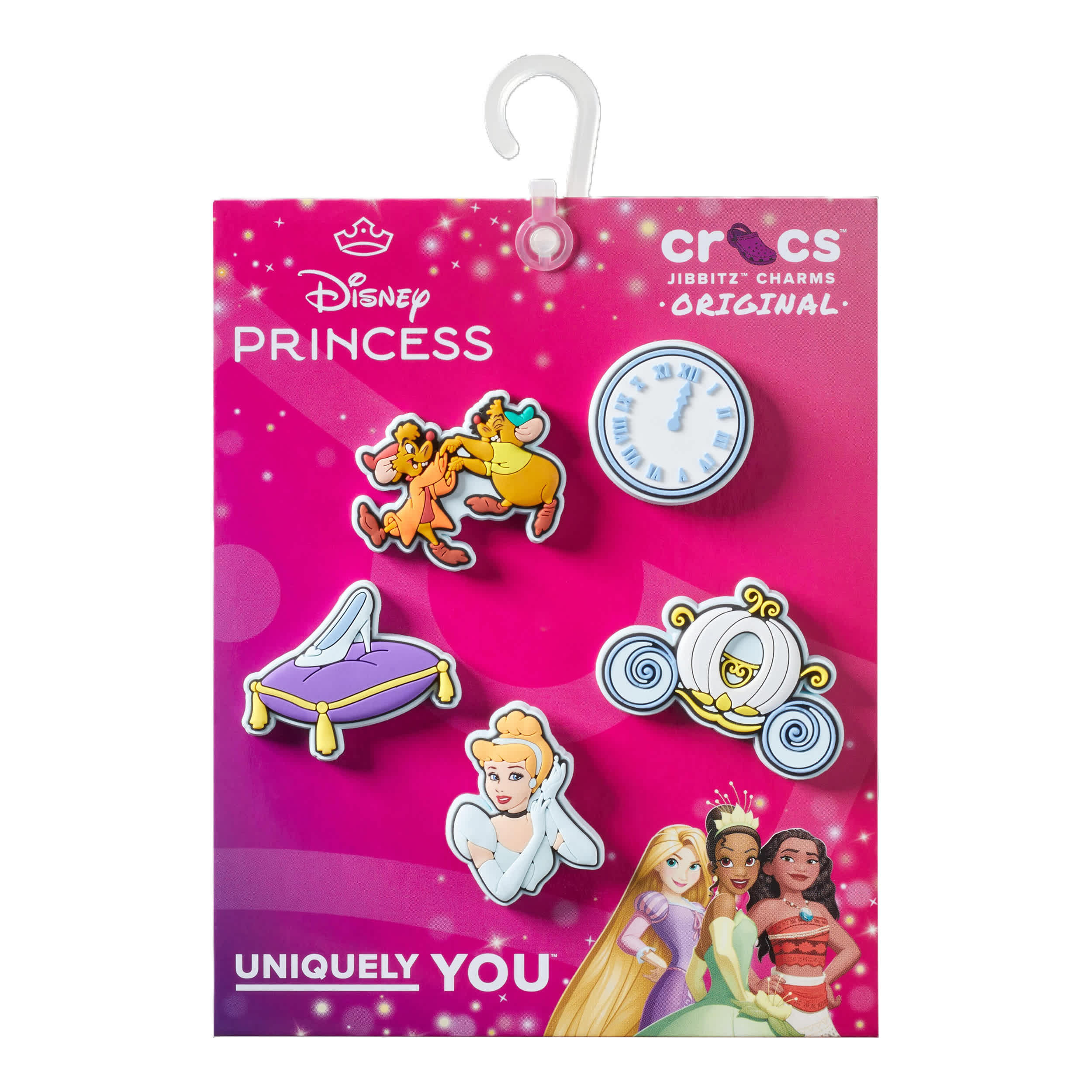 Show off your love of the classic Disney rags-to-riches love story with this amazing set of Jibbitzâ„¢ charms! Each pack includes 5 charms displaying important pieces of Cinderella's journey. Not a toy. Not intended for children under 3 years of age.
