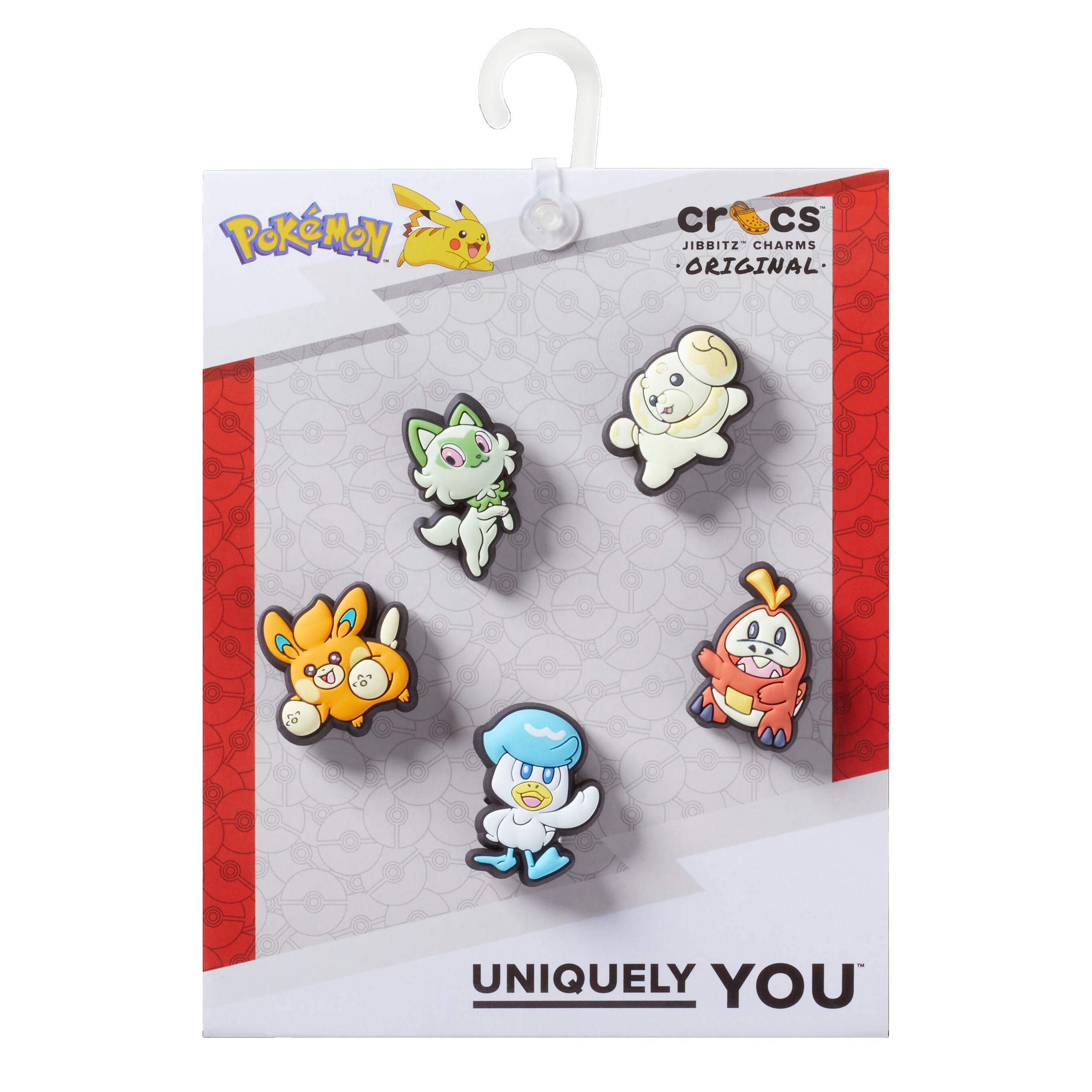 Pop some personality into your shoes with these Pokemon Paldea 5 Pack Jibbitzâ„¢ charms. They're the perfect addition to your favorite pairs of clogs, slides, and more. Not a toy. Not intended for children under 3 years of age.