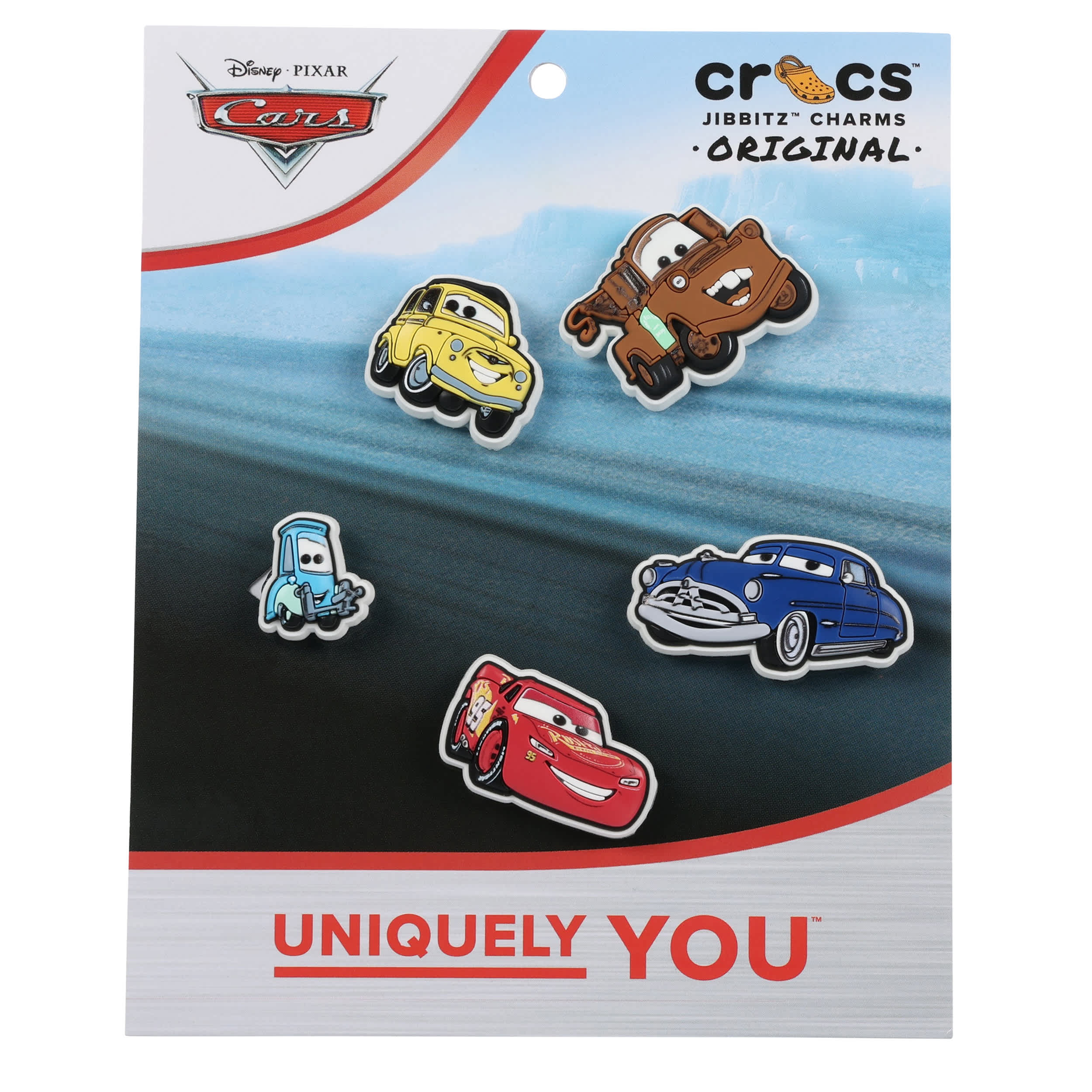 Pop some personality into your shoes with these Pixar Cars 5 Pack Jibbitz™ charms. They’re the perfect addition to your favorite pairs of clogs, slides, and more. Not a toy. Not intended for children under 3 years of age.