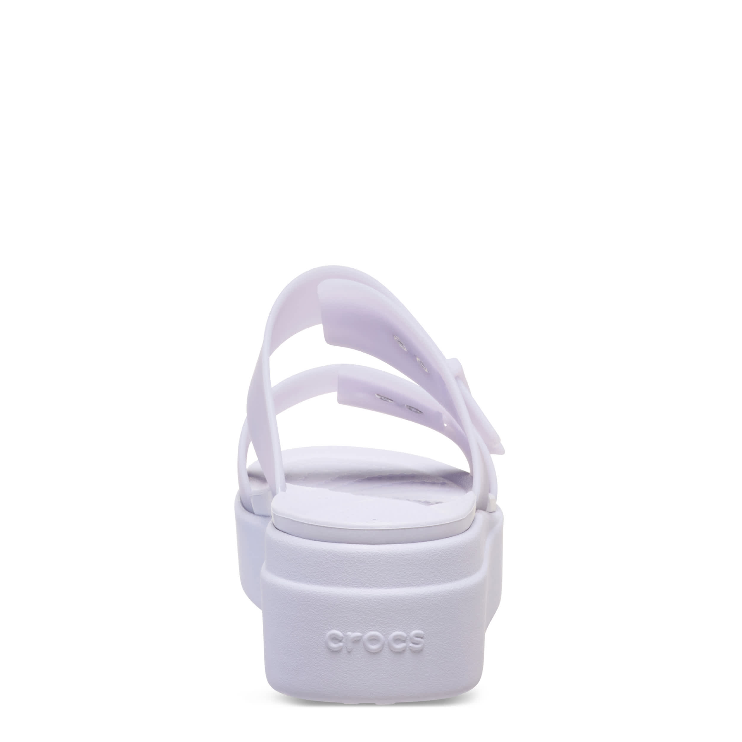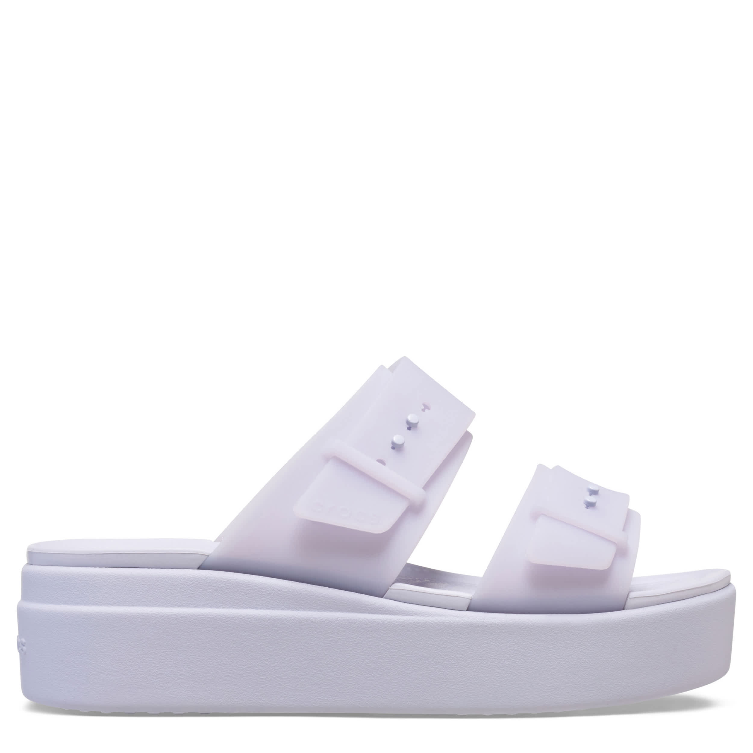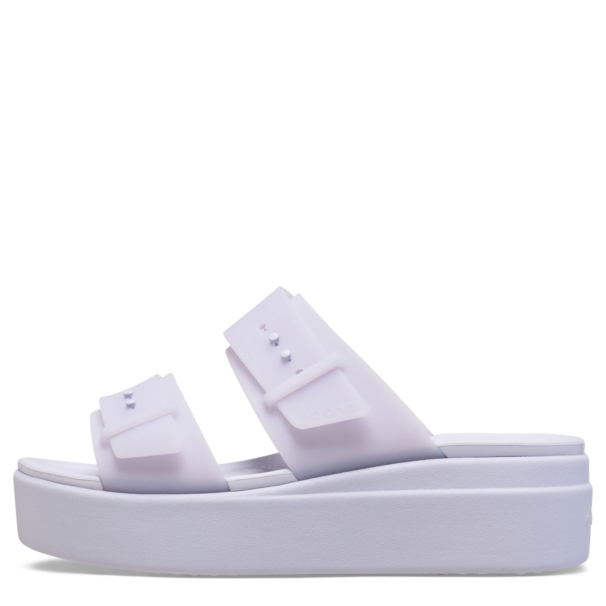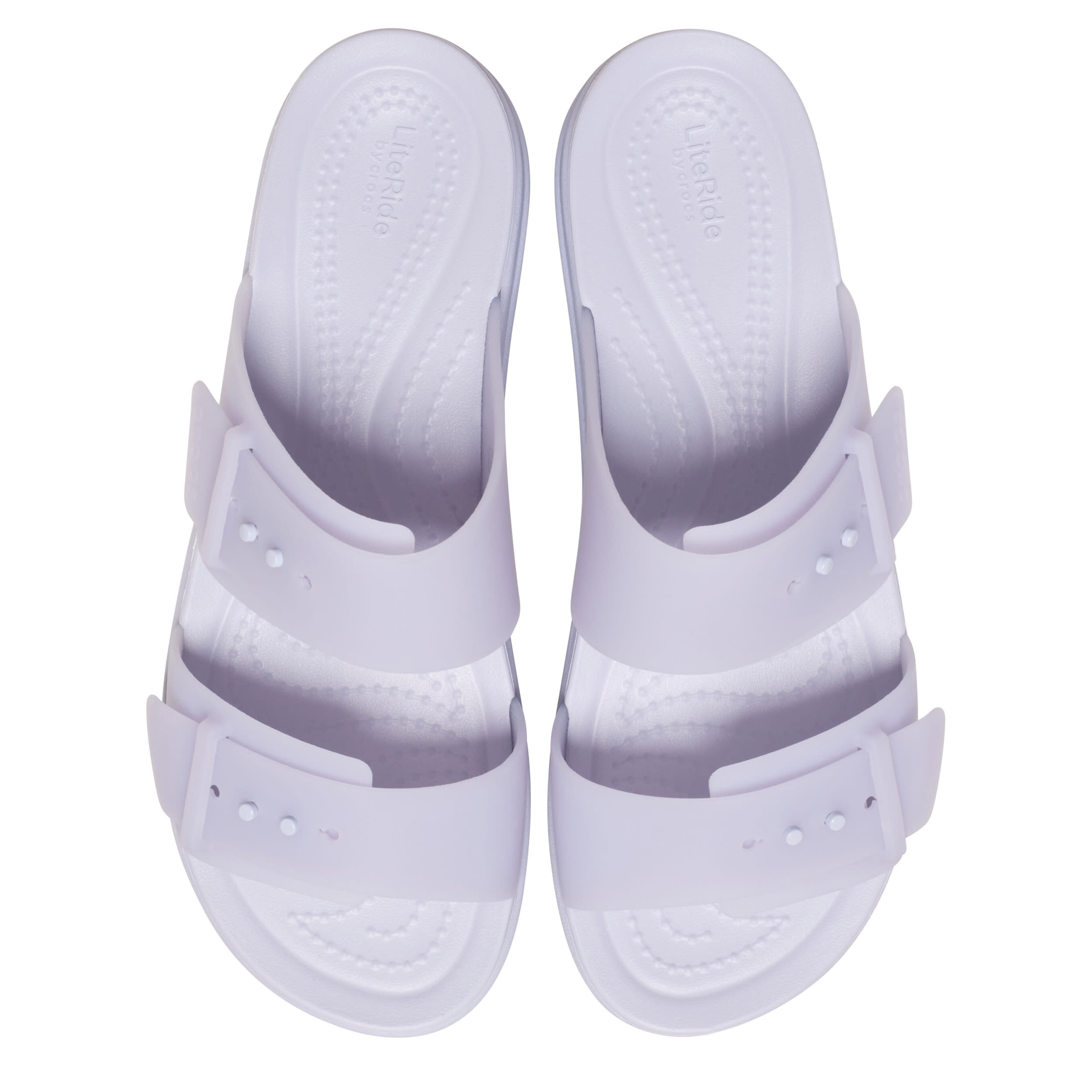 Get fashionably comfortable in the Brooklyn Buckle Frosted women's wedge sandal from Crocs. With a frosted matte upper featuring a two-strap design that's easily adjustable for a great fit, these sandals also have a deep heel cup and raised insole for stabilized support. The LiteRide foam footbed offers innovative comfort, while the low wedge enables versatile styling.