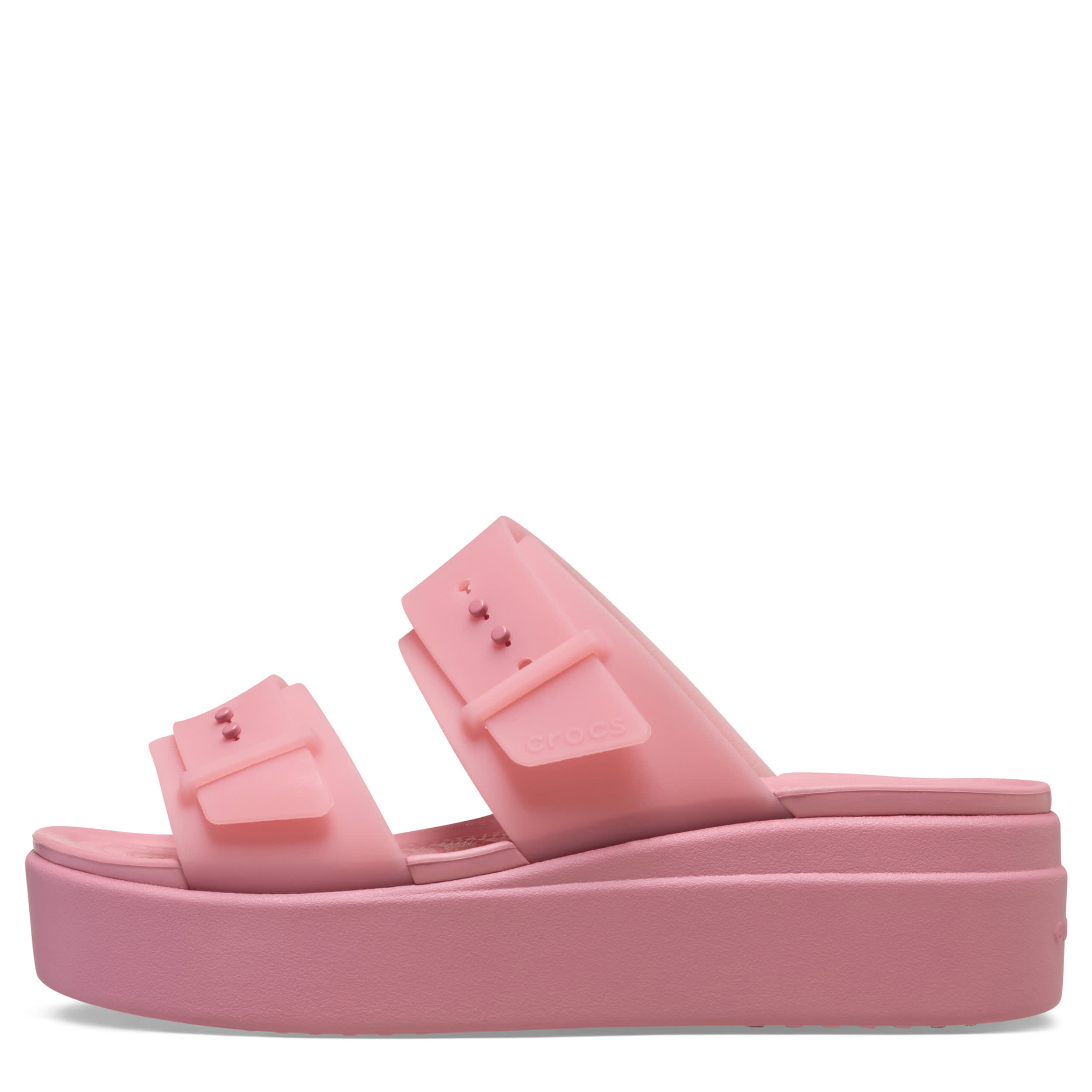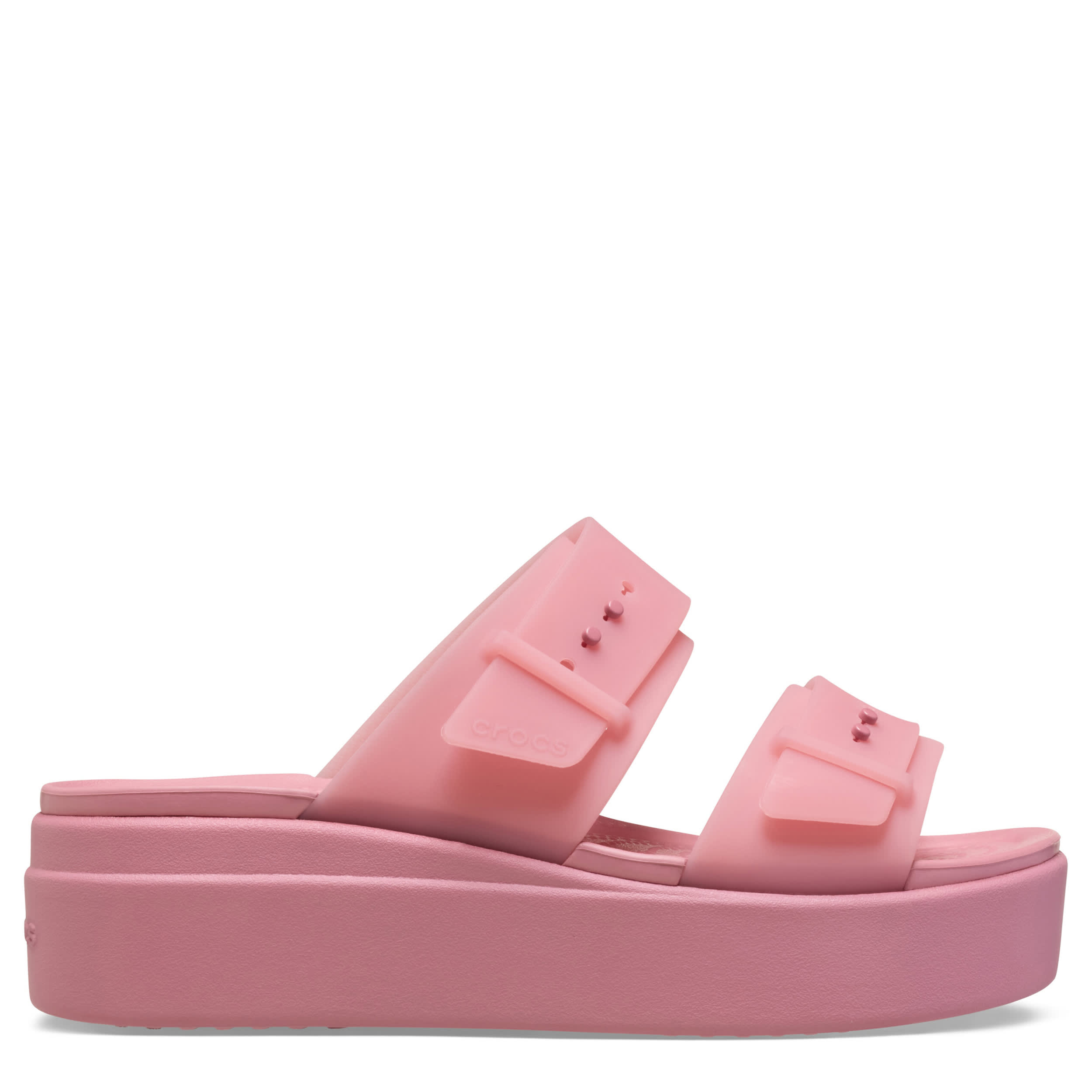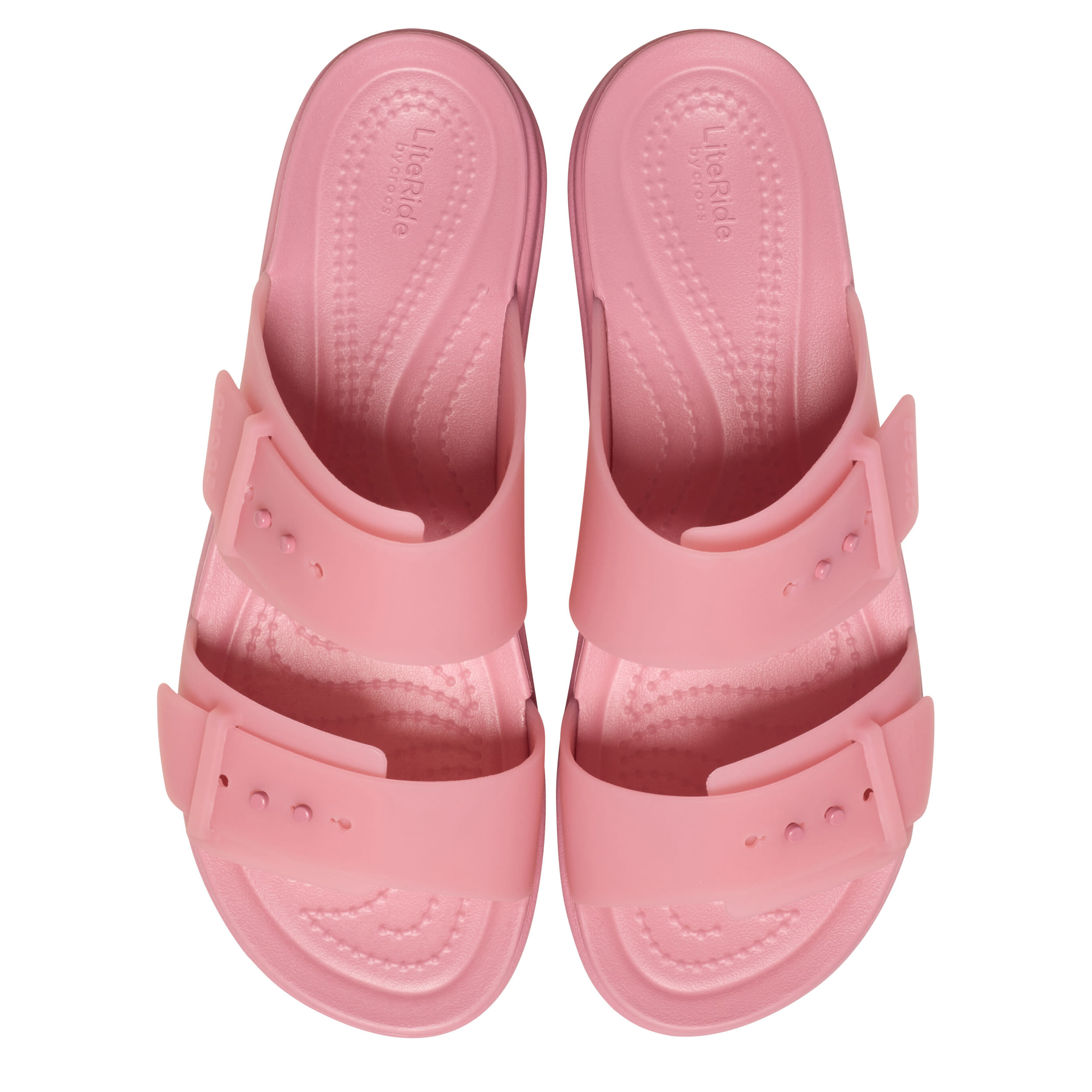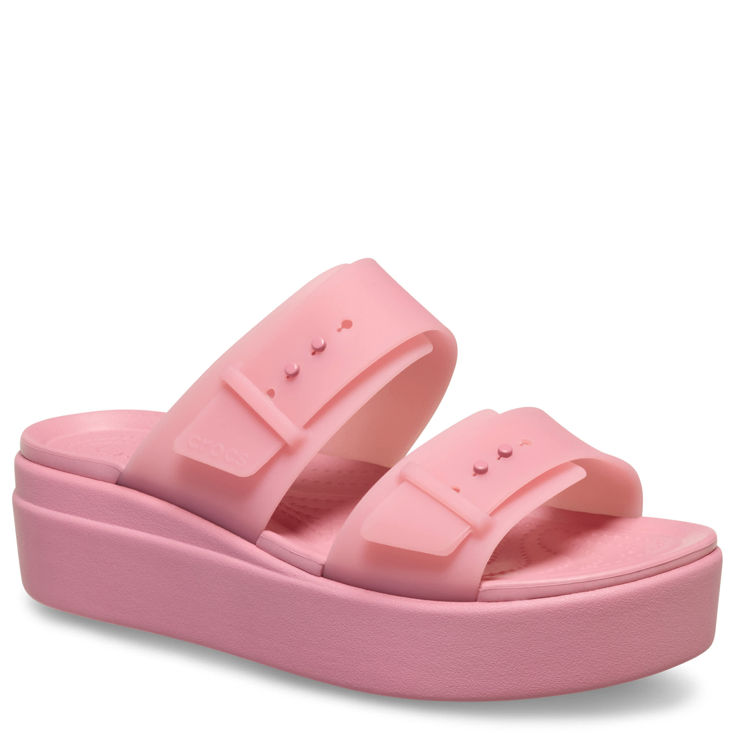 Get fashionably comfortable in the Brooklyn Buckle Frosted women's wedge sandal from Crocs. With a frosted matte upper featuring a two-strap design that's easily adjustable for a great fit, these sandals also have a deep heel cup and raised insole for stabilized support. The LiteRide foam footbed offers innovative comfort, while the low wedge enables versatile styling.