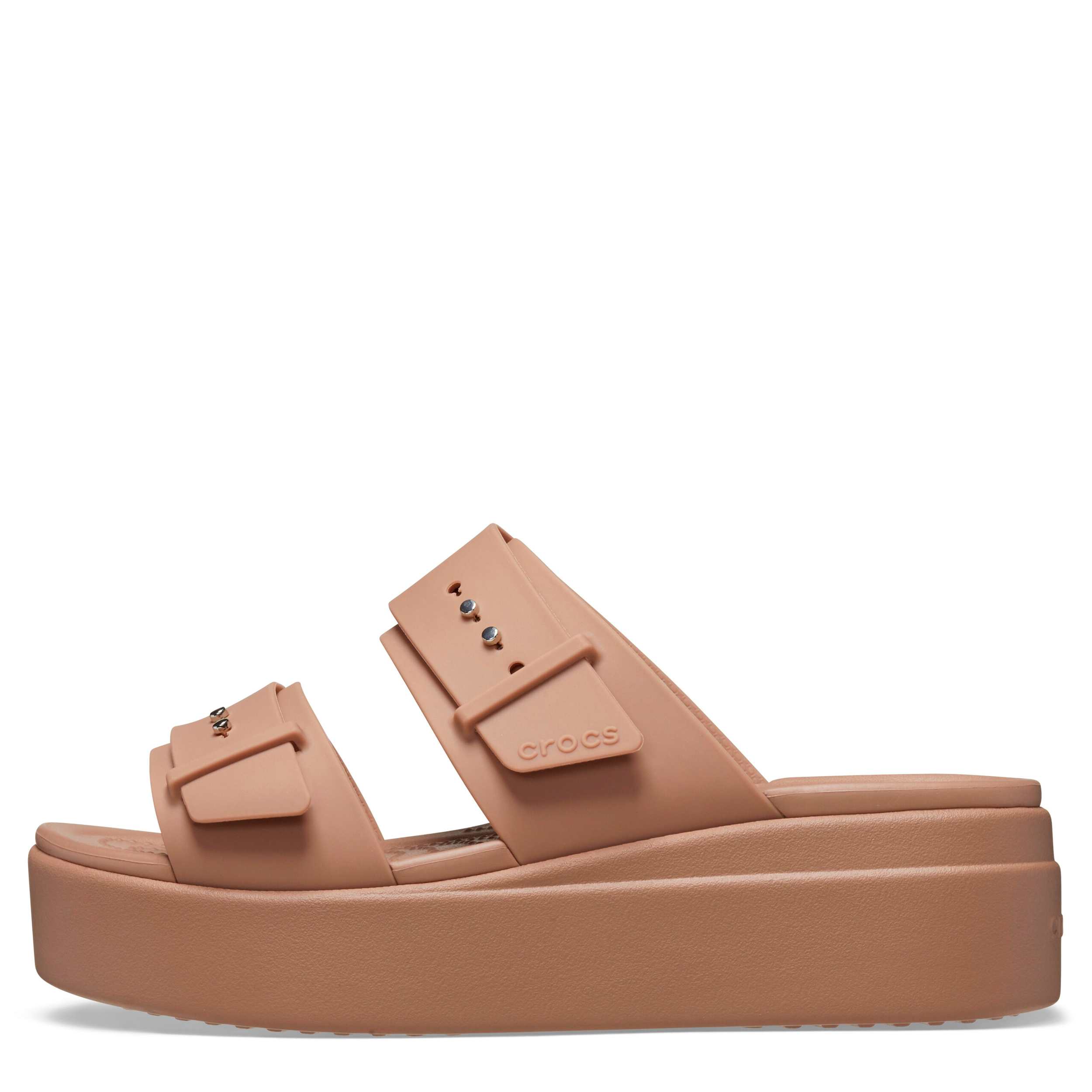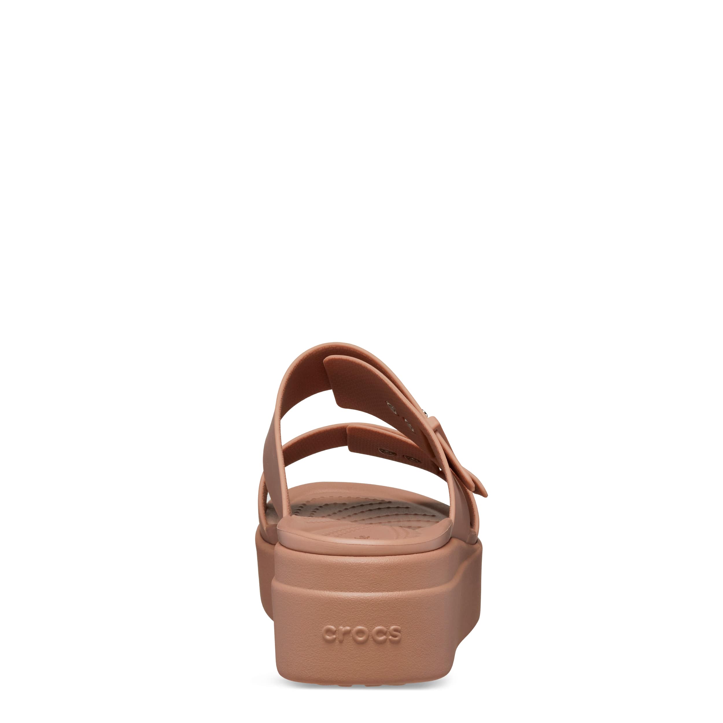Get fashionably comfortable in the Brooklyn Buckle women's wedge sandal from Crocs. With a flexible Matlite upper featuring a two-strap design that's easily adjustable for a great fit, these sandals also have a deep heel cup and raised insole for stabilized support. The LiteRide foam footbed offers innovative comfort, while the low wedge enables versatile styling.