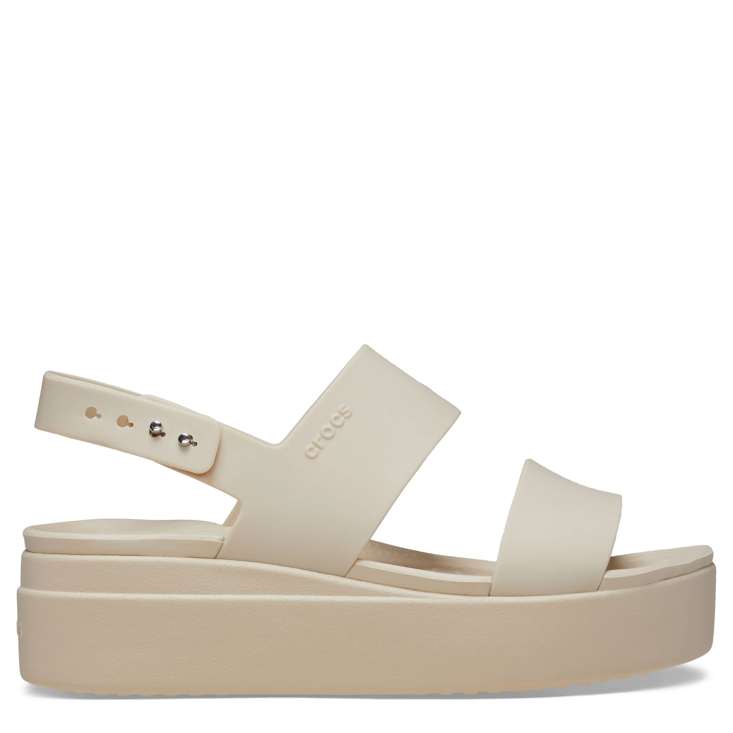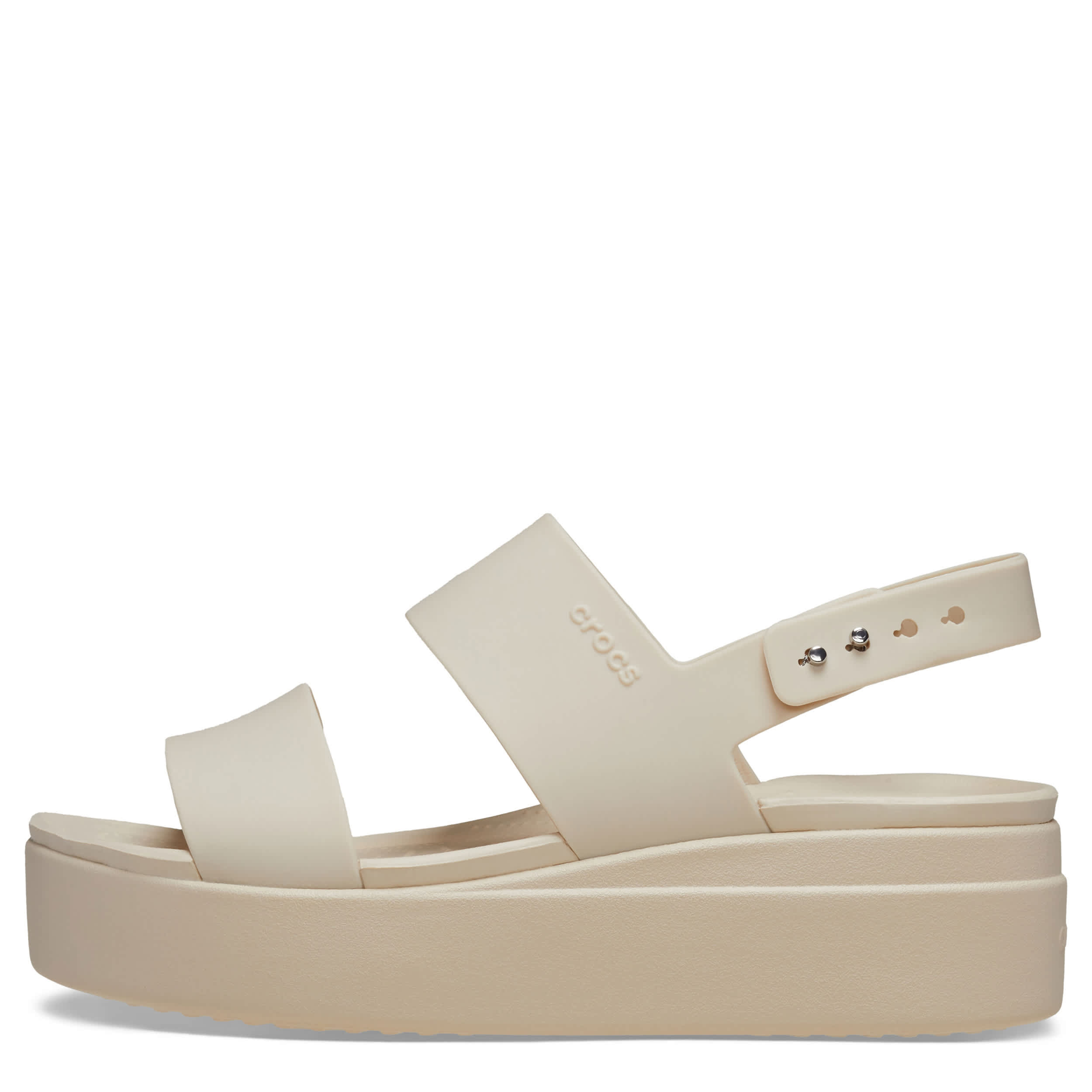 Crocs gives you a fresh style with this fun women's Brooklyn Low Wedge sandal. With a Matlite upper featuring a two-strap silhouette with a Smart Buckle slingback strap closure, this comfortably secure and stylish sandal completes your look. The raised insole and deep heel cups add stability while LiteRide foam cushions your foot for all-day wear.