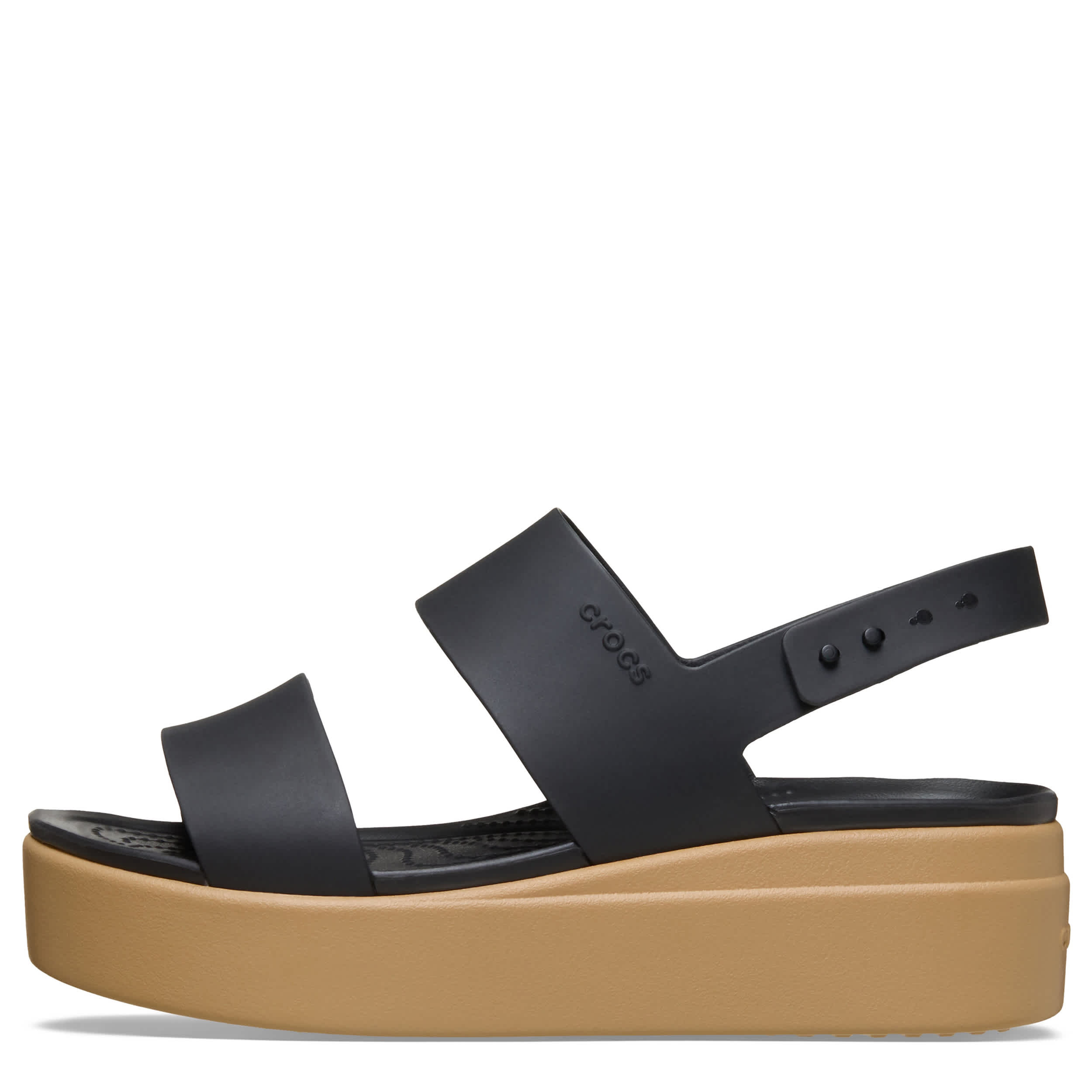 Crocs gives you a fresh style with this fun Brooklyn Low Wedge women's sandal. With a Matlite upper featuring a two-strap silhouette with a Smart Buckle slingback strap closure, this comfortably secure black wedge sandal completes your look. The raised insole and deep heel cups add stability while LiteRide foam cushions your foot for all-day wear.