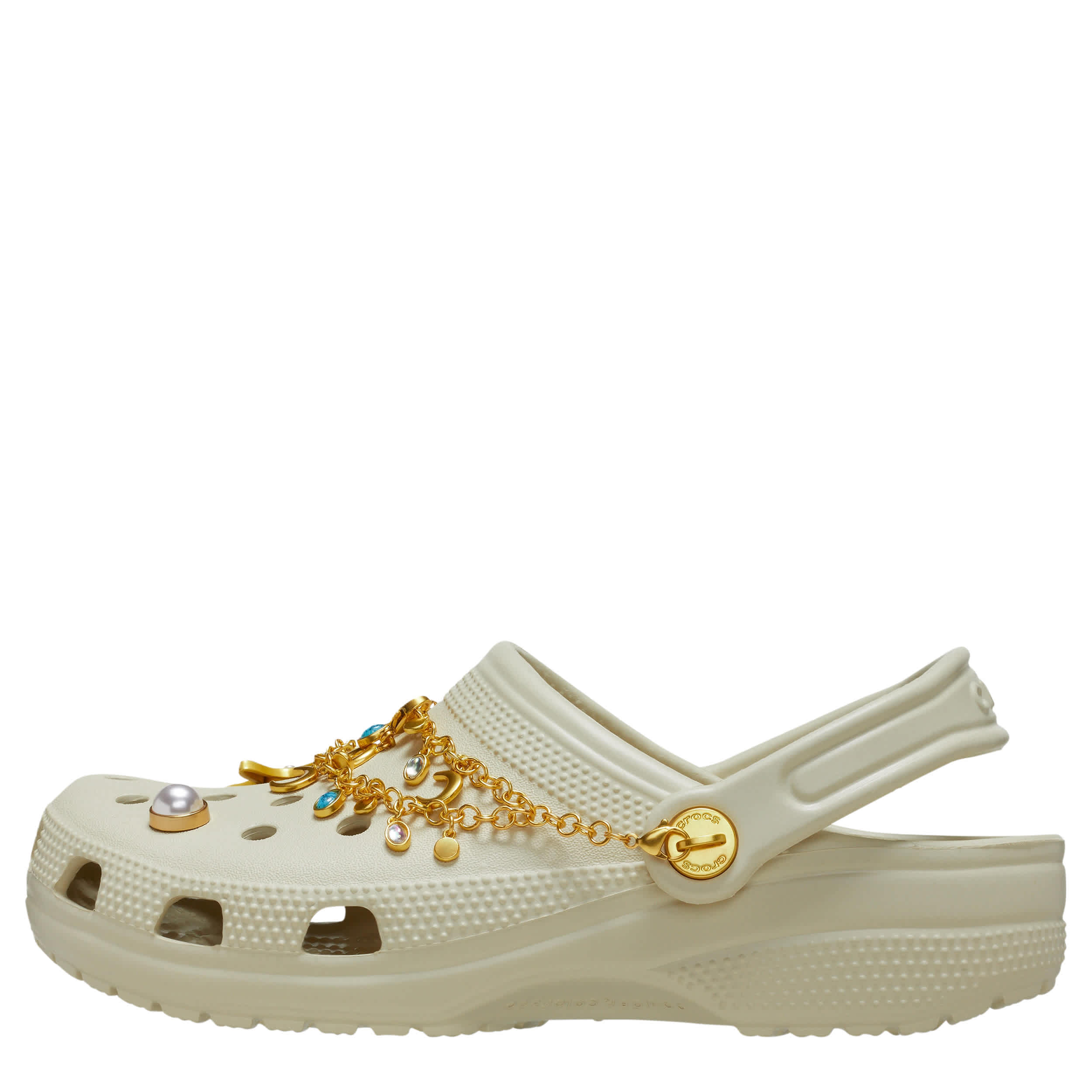 Vegan-friendly and just extra enough, the Classic Boho Babe women's clog by Crocs are a great pick. The Iconic Crocs Comfort material offers lightweight, flexible cushioning, while the boho-chic Jibbitzâ„¢ and chain details along the vamp just amplify your style. When you're feeling the need for understated glam, choose these.
