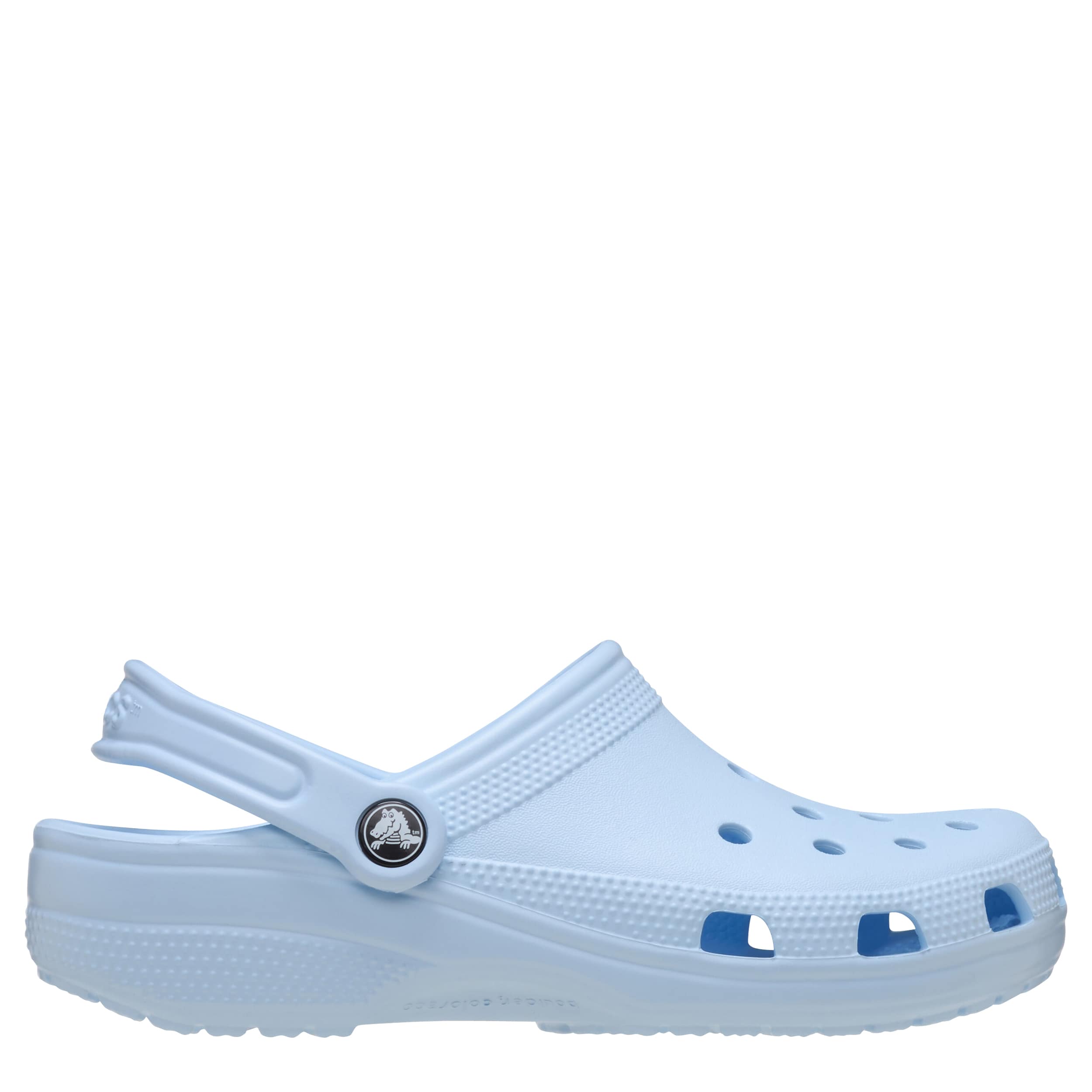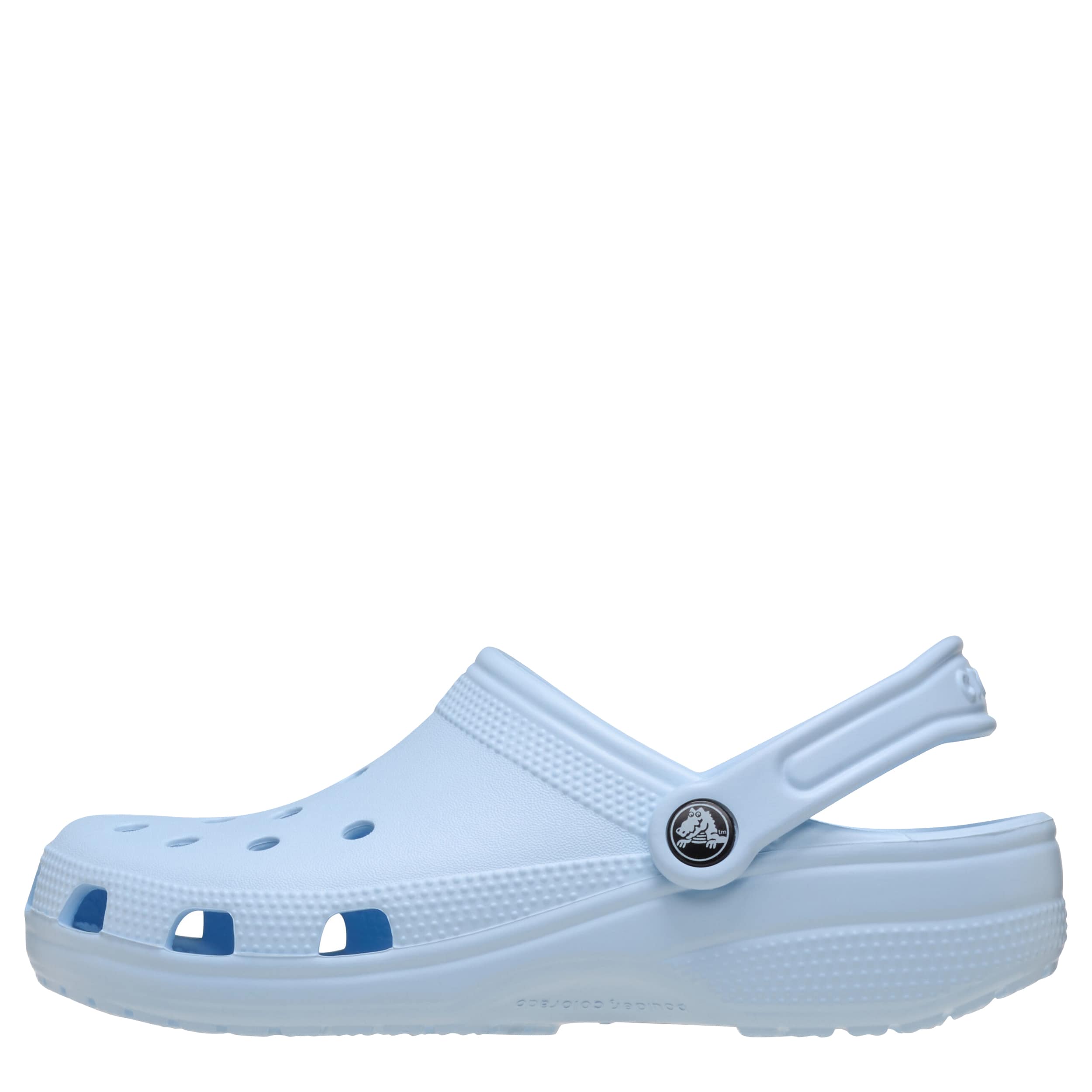 You can't go wrong with the Classic unisex clog by Crocs. The Iconic Crocs Comfort material offers lightweight, flexible cushioning and a gentle massaging sensation, while the well-ventilated upper circulates air for a cool, dry fit in these blue frost Crocs.