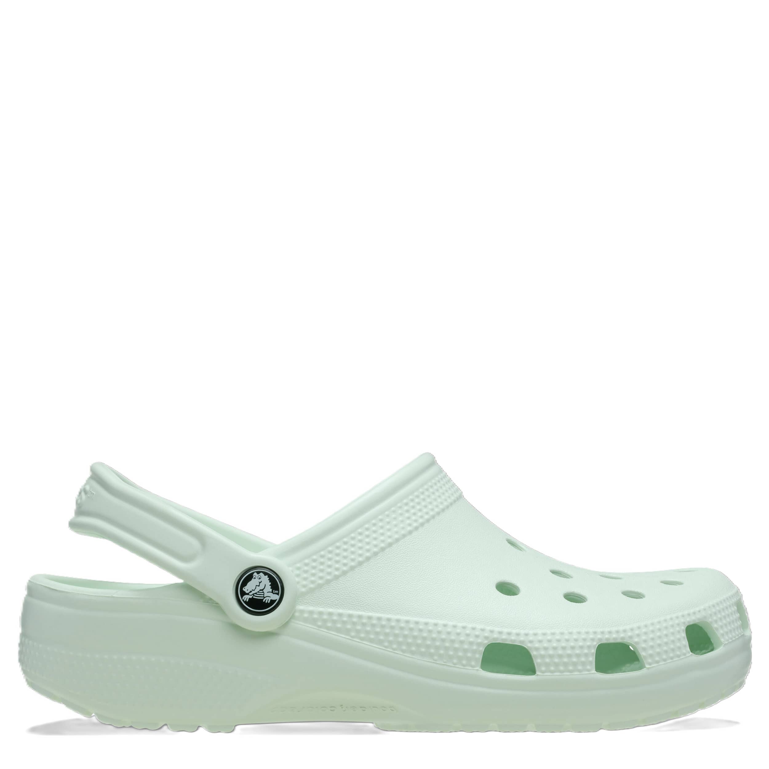 You can't go wrong with the Classic women's clog by Crocs. The Iconic Crocs Comfort material offers lightweight, flexible cushioning and a gentle massaging sensation, while the well-ventilated upper circulates air for a cool, dry fit in these minty Crocs.