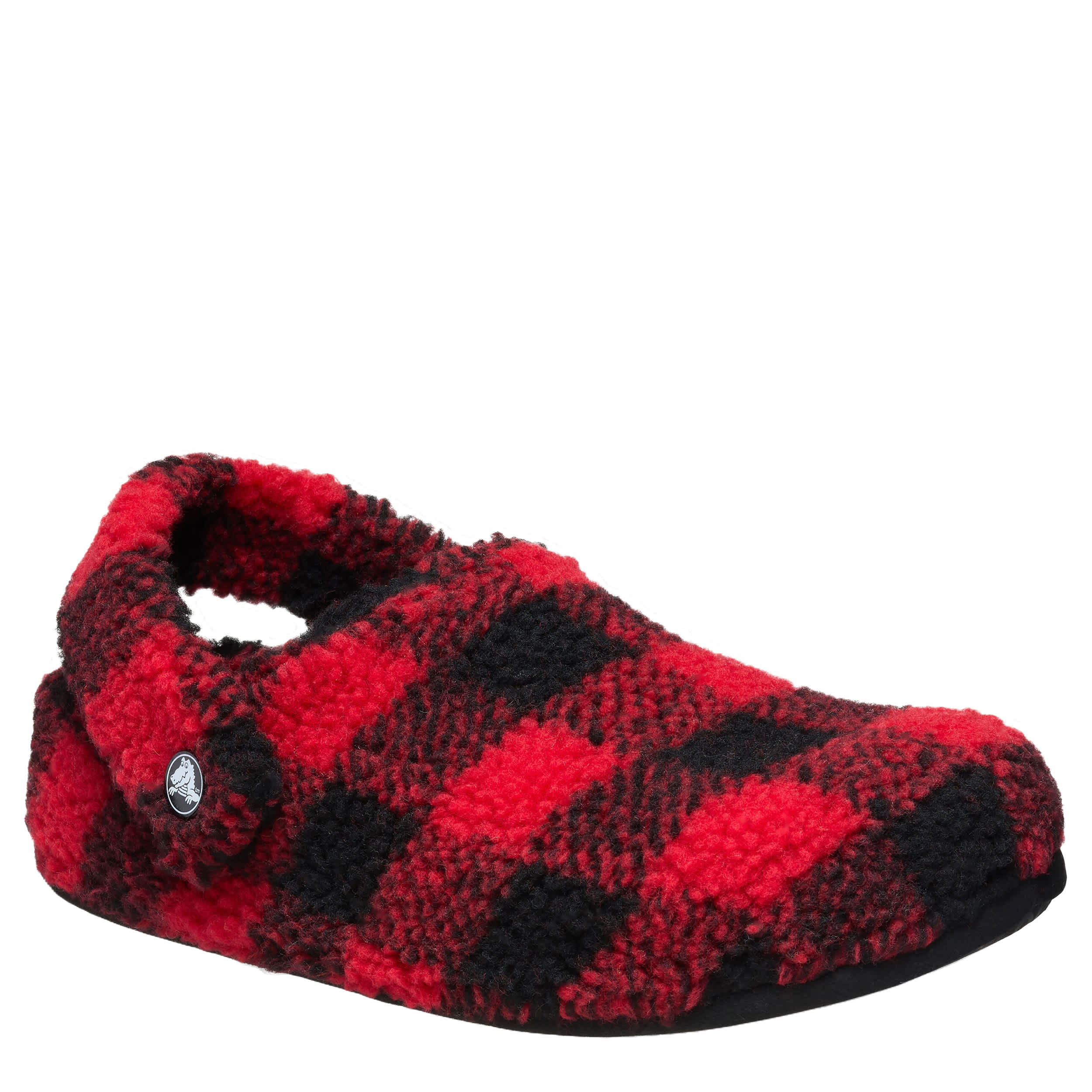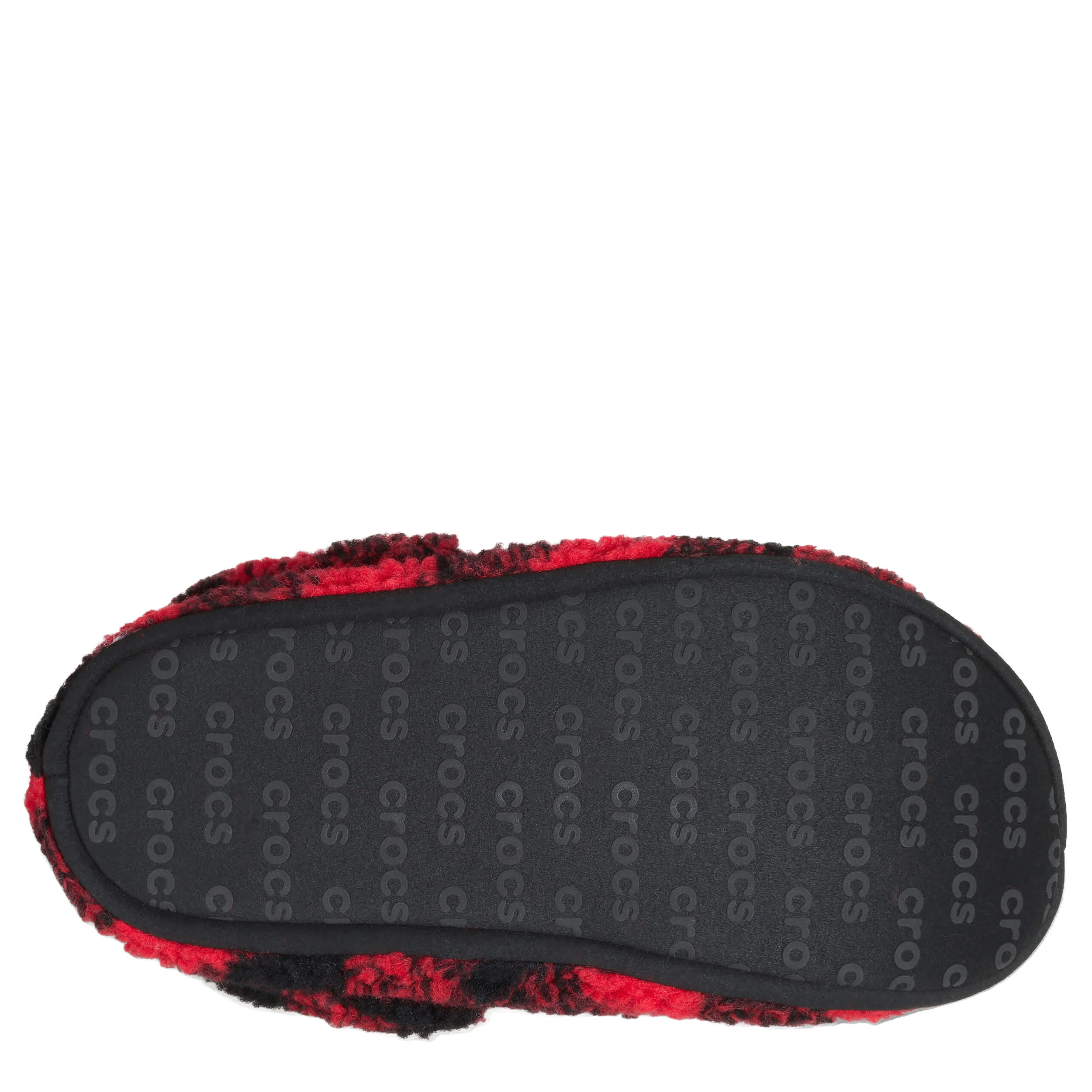 Wrap your foot in 360o of warmth with the buffalo check Classic Cozzzy slipper by Crocs. Fuzzy faux fur covers every bit of this shoe, while the comfy footbed offers that squishy underfoot feel you love. Duke smiles from the backstrap and "crocs"-styled rubber pods add extra grip to the outsole.