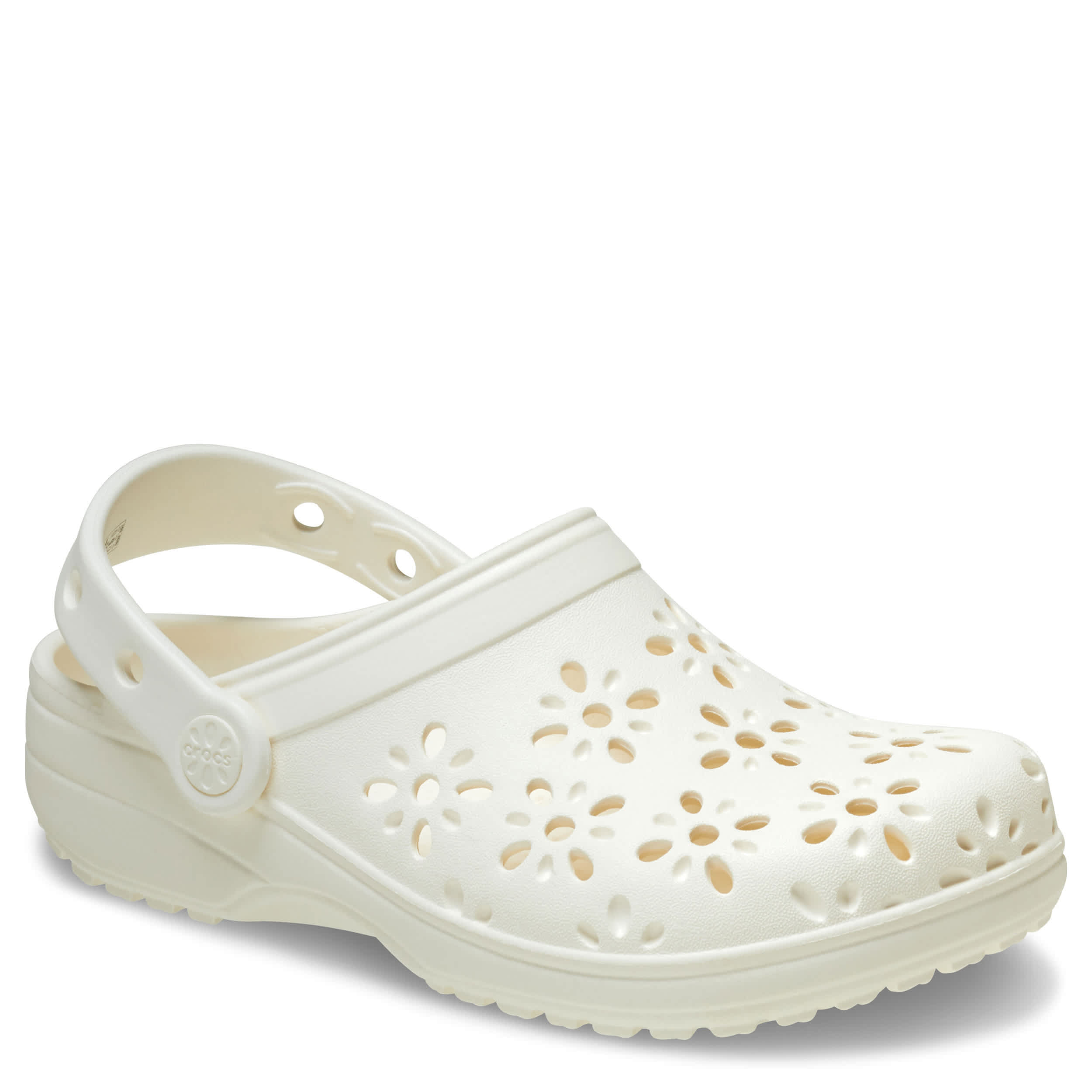 Smile big in the Classic Floral Cut Out clog by Crocs. The Iconic Crocs Comfort material offers lightweight, flexible cushioning and a fun wearability, while the floral cutout upper circulates air for a breathable fit in these cute Crocs.