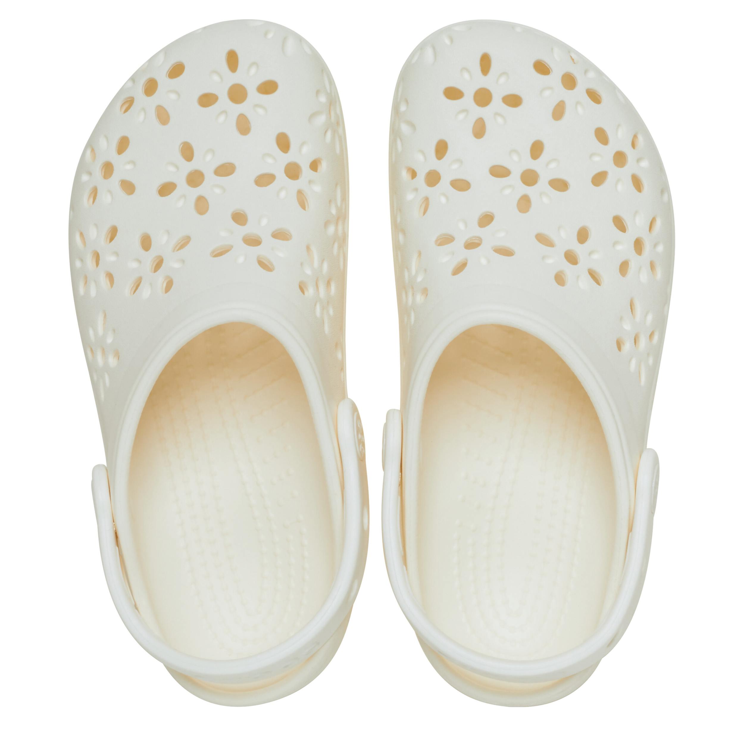 Crocs Classic Floral Cut Out Womens' Clog - Off White