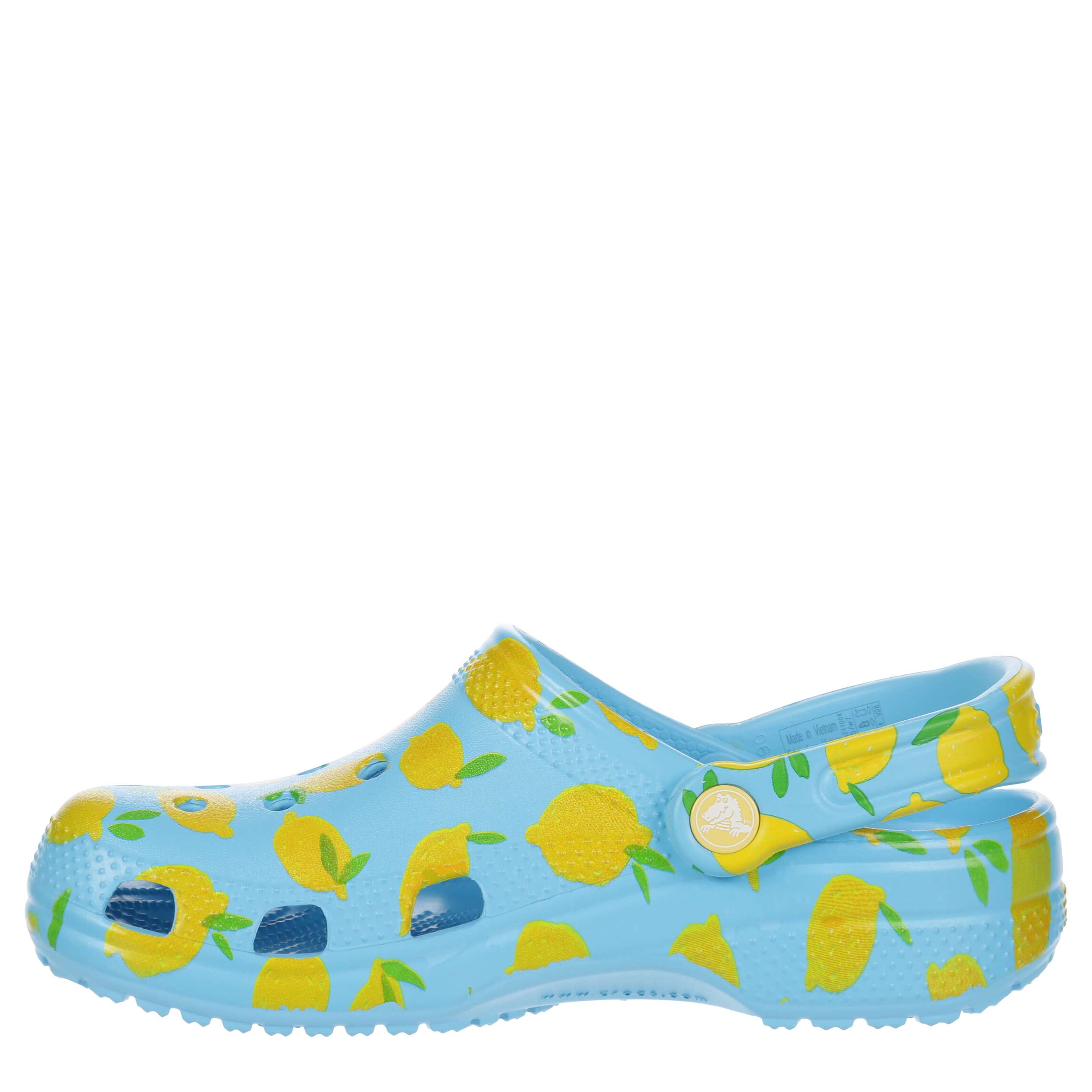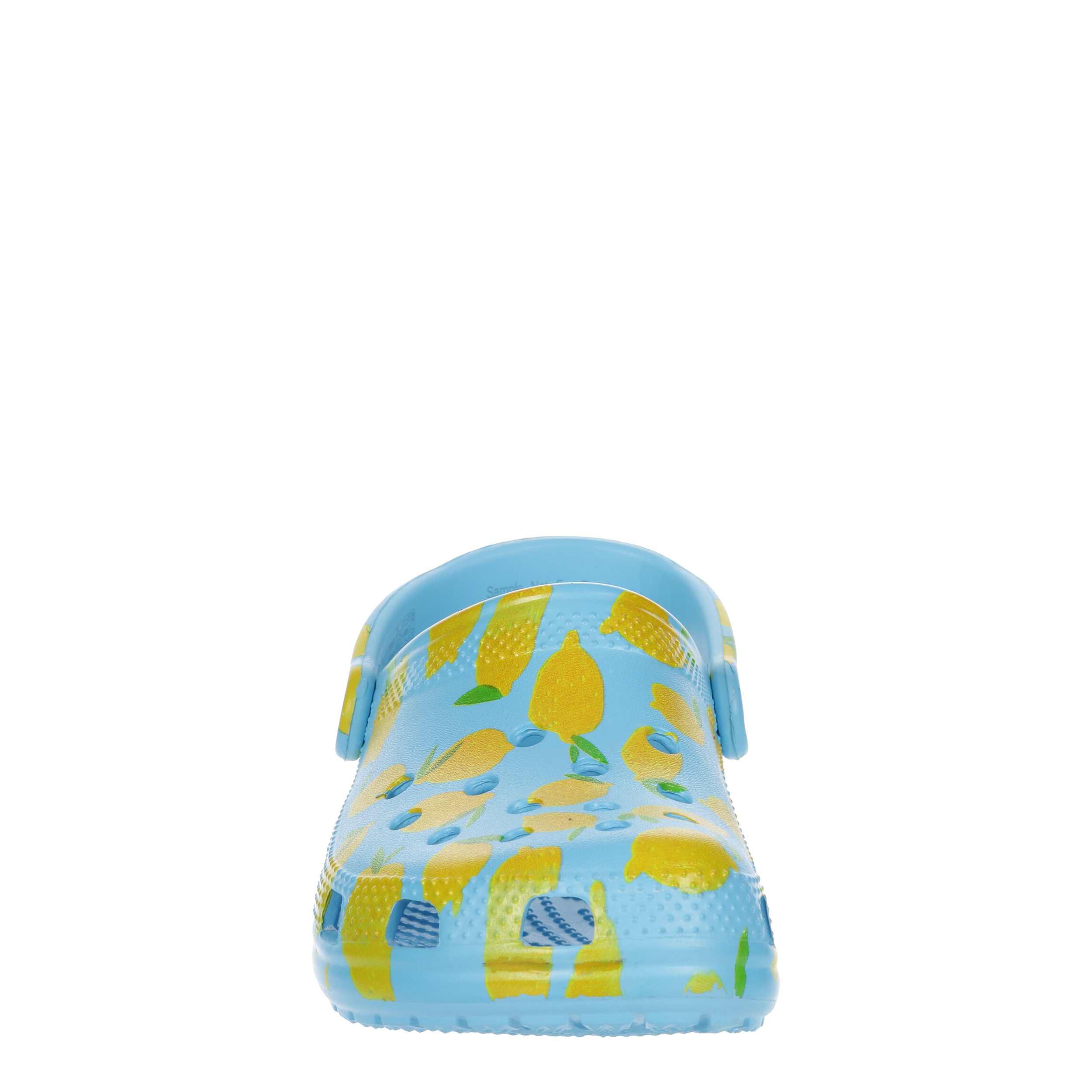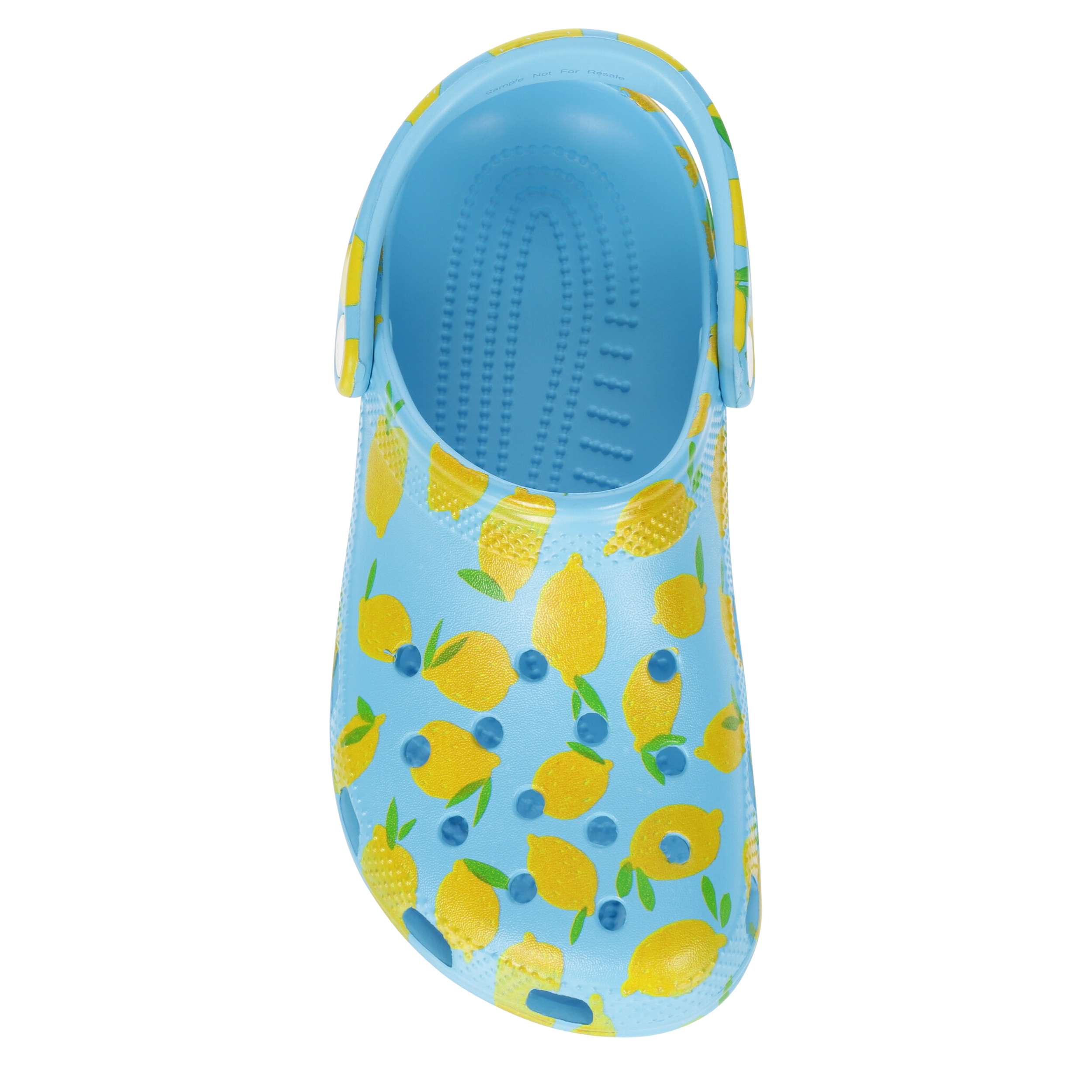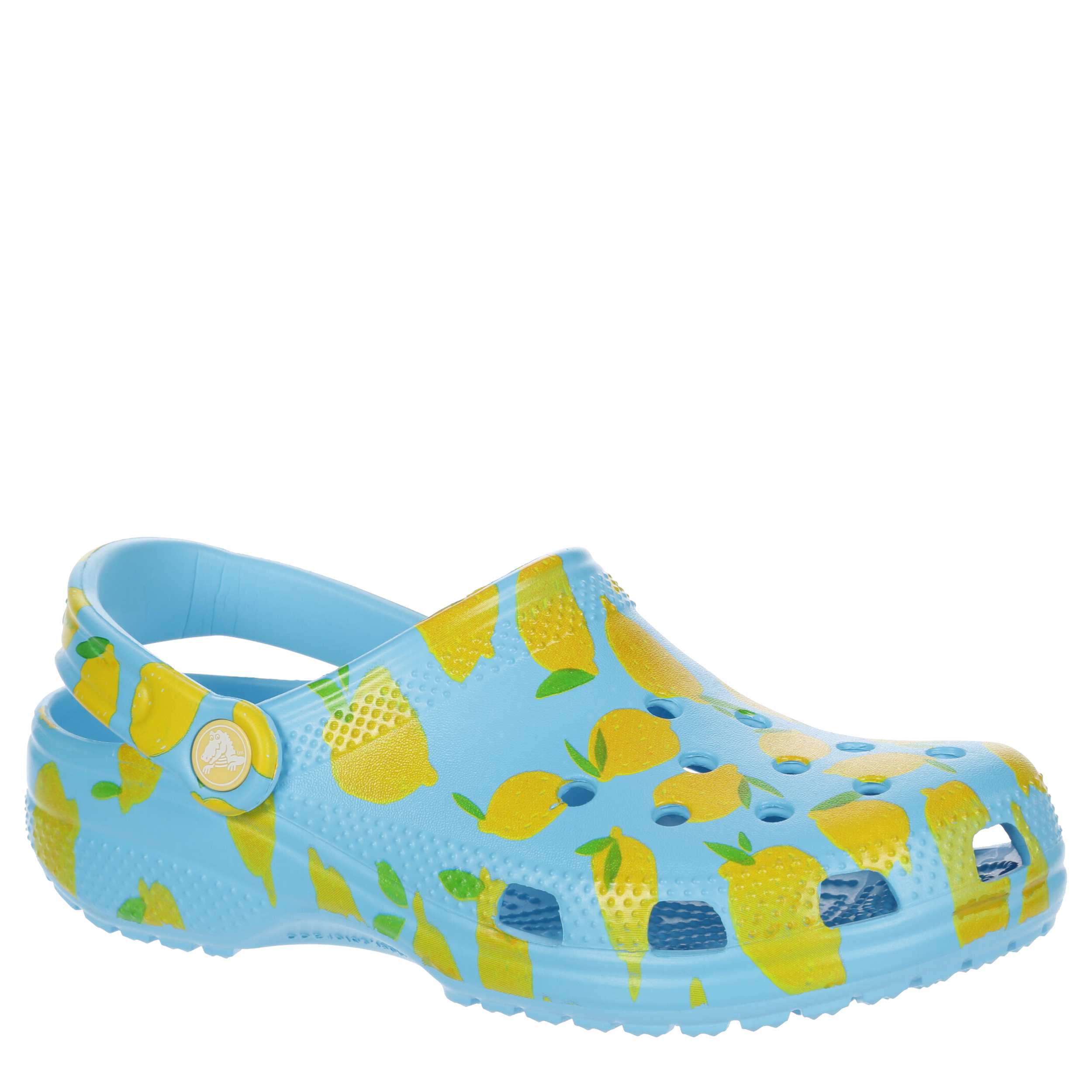 Enjoy a fresh new print with the Classic Fresh Fruits clog by Crocs. The Iconic Crocs Comfort material offers lightweight, flexible cushioning, while the lemon design adds fun as air circulates for a cool, dry fit. Add Jibbitzâ„¢ charms to spike the personality.
