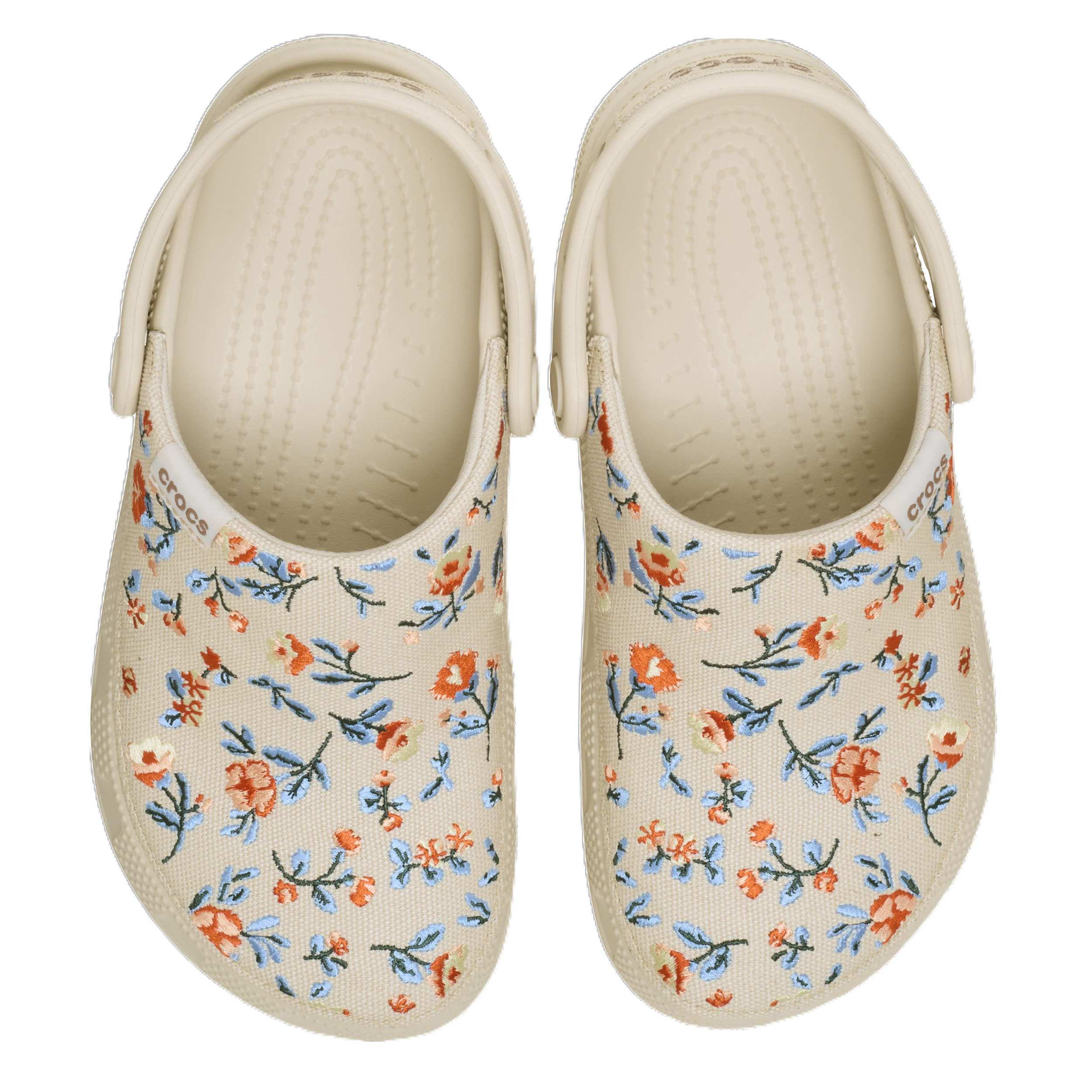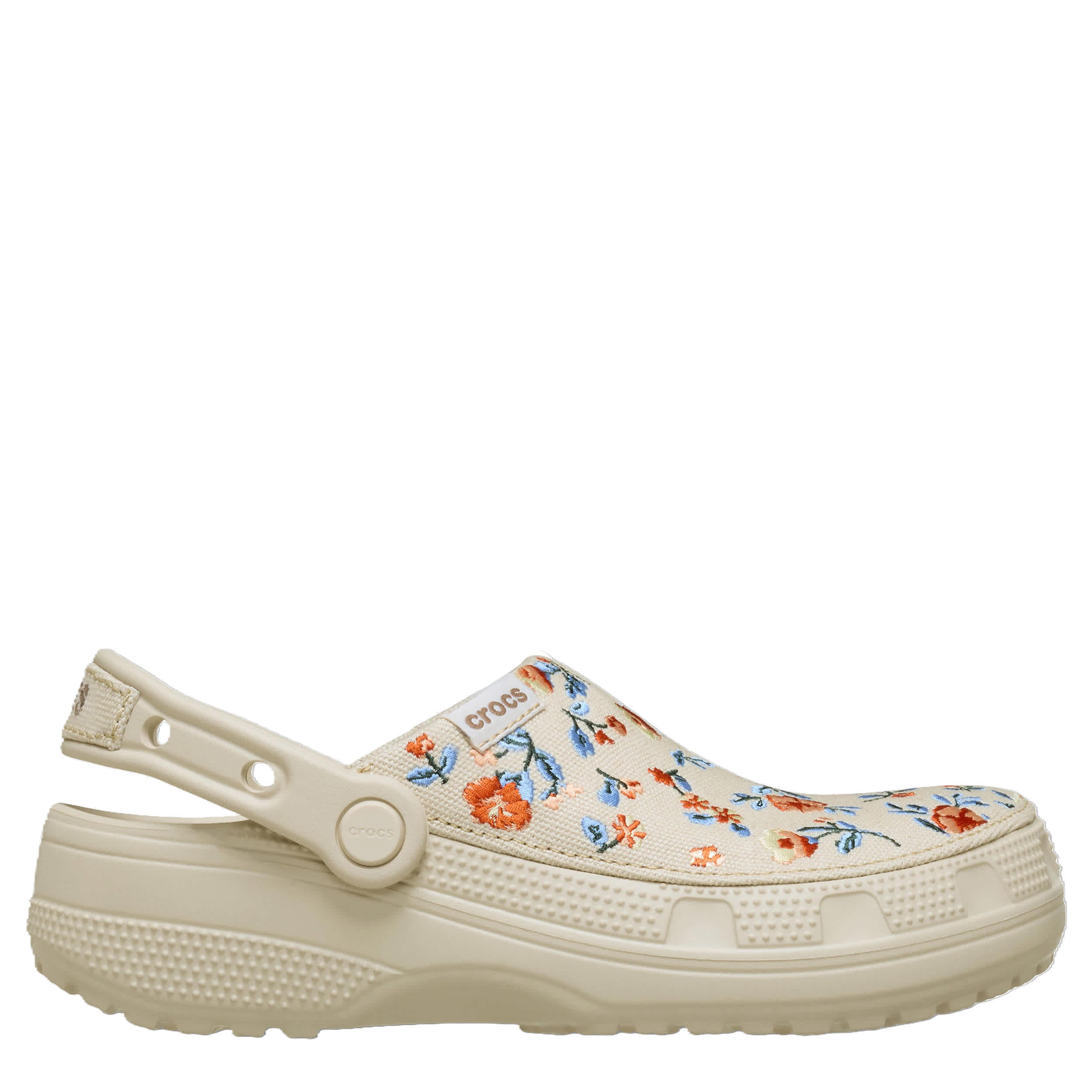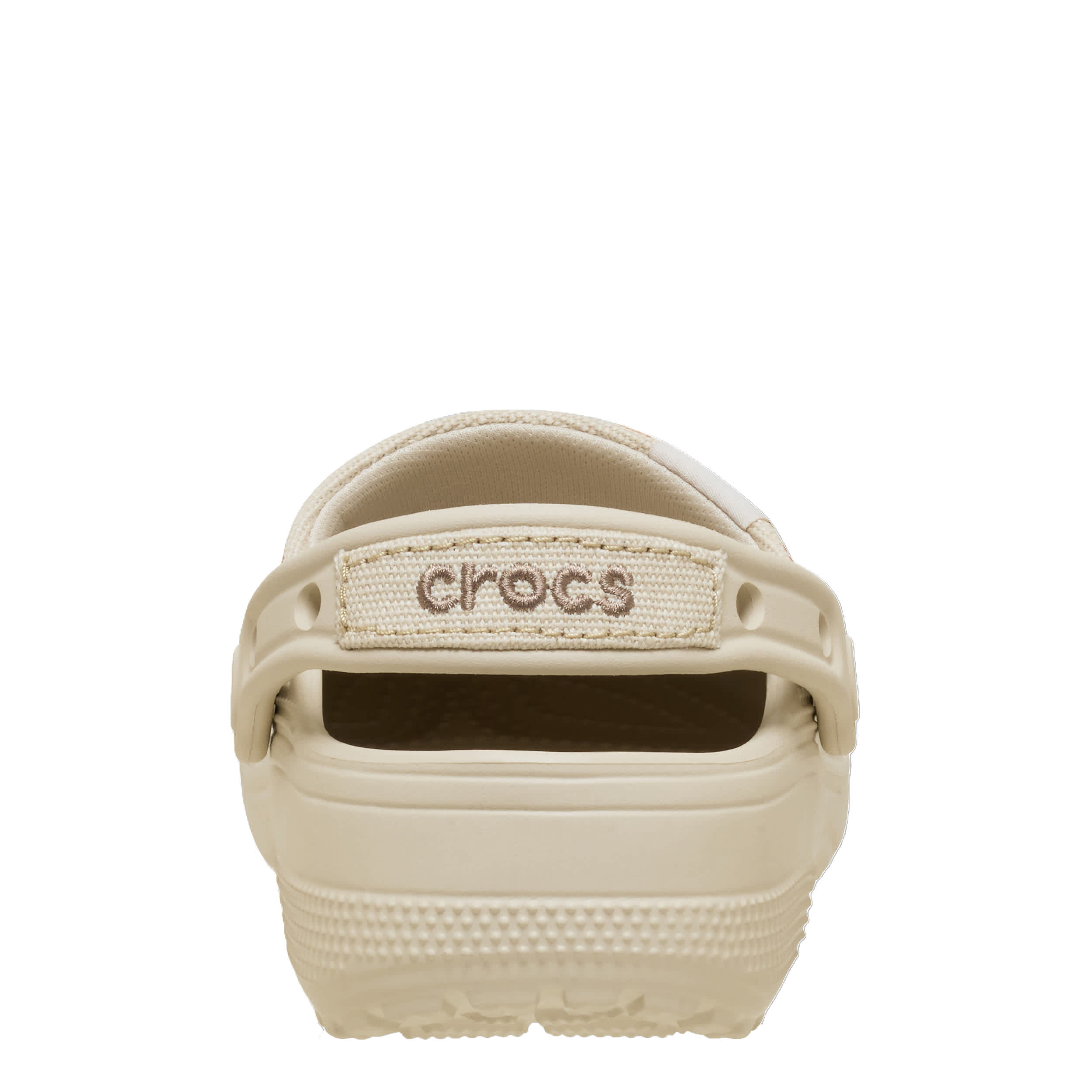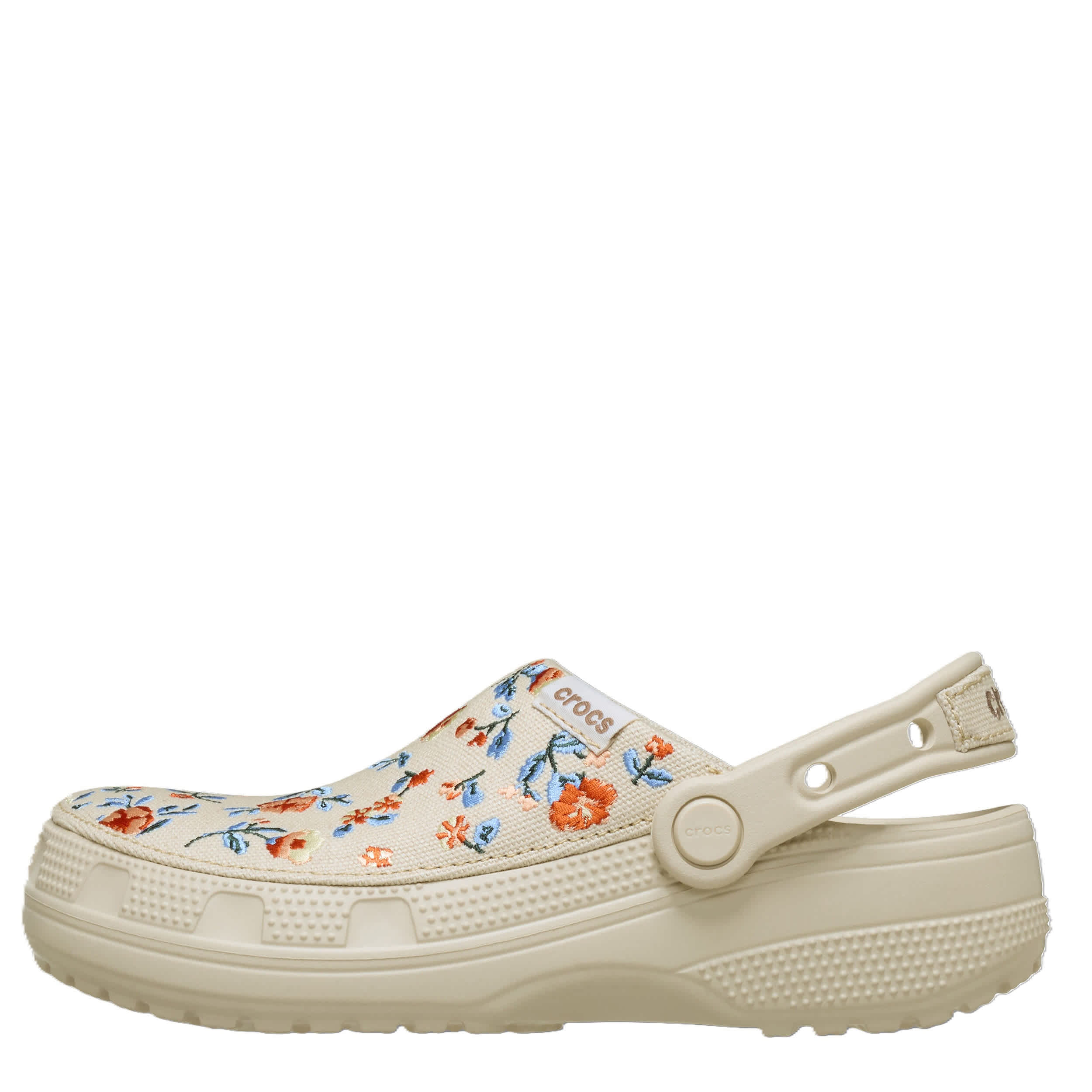 Your beloved Crocs details are still in the Crafted Classic clog, but softer. Featuring a stylish printed canvas upper with holes on the heel strap to personalize with Jibbitzâ„¢, this shoe is a fresh take on a fave classic. You still get that Iconic Crocs Comfortâ„¢ with a durable Crosliteâ„¢ outsole for support.