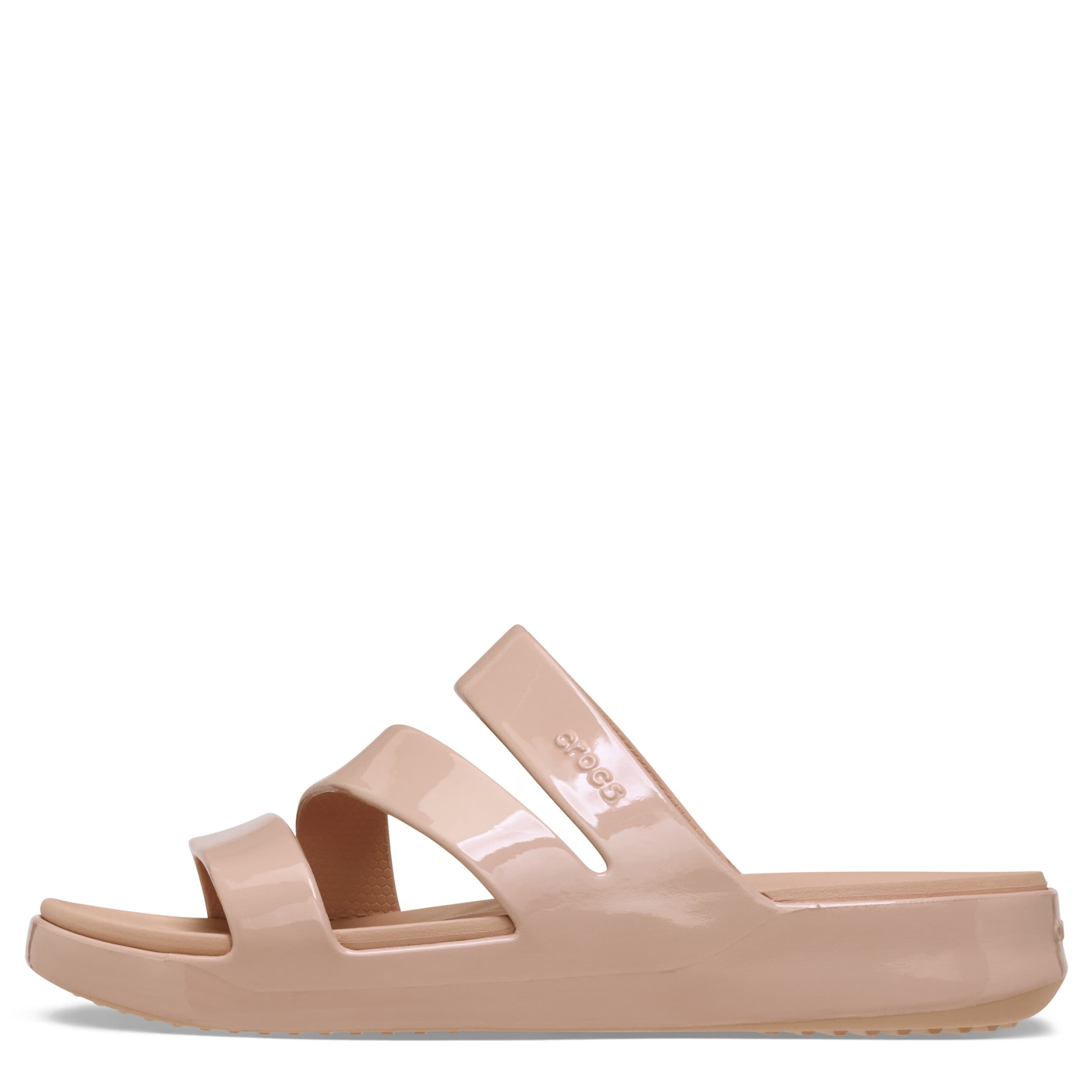 Transport yourself instantly in the Getaway Patent Strappy women's sandal from Crocs. With a lightweight Crosliteâ„¢ upper featuring a glossy patent finish and seamless comfort innovation in the Free Feel Technologyâ„¢, this sandal moves with you for a floating feeling. The platform adds nice lift that will make these a must-have for any trip.