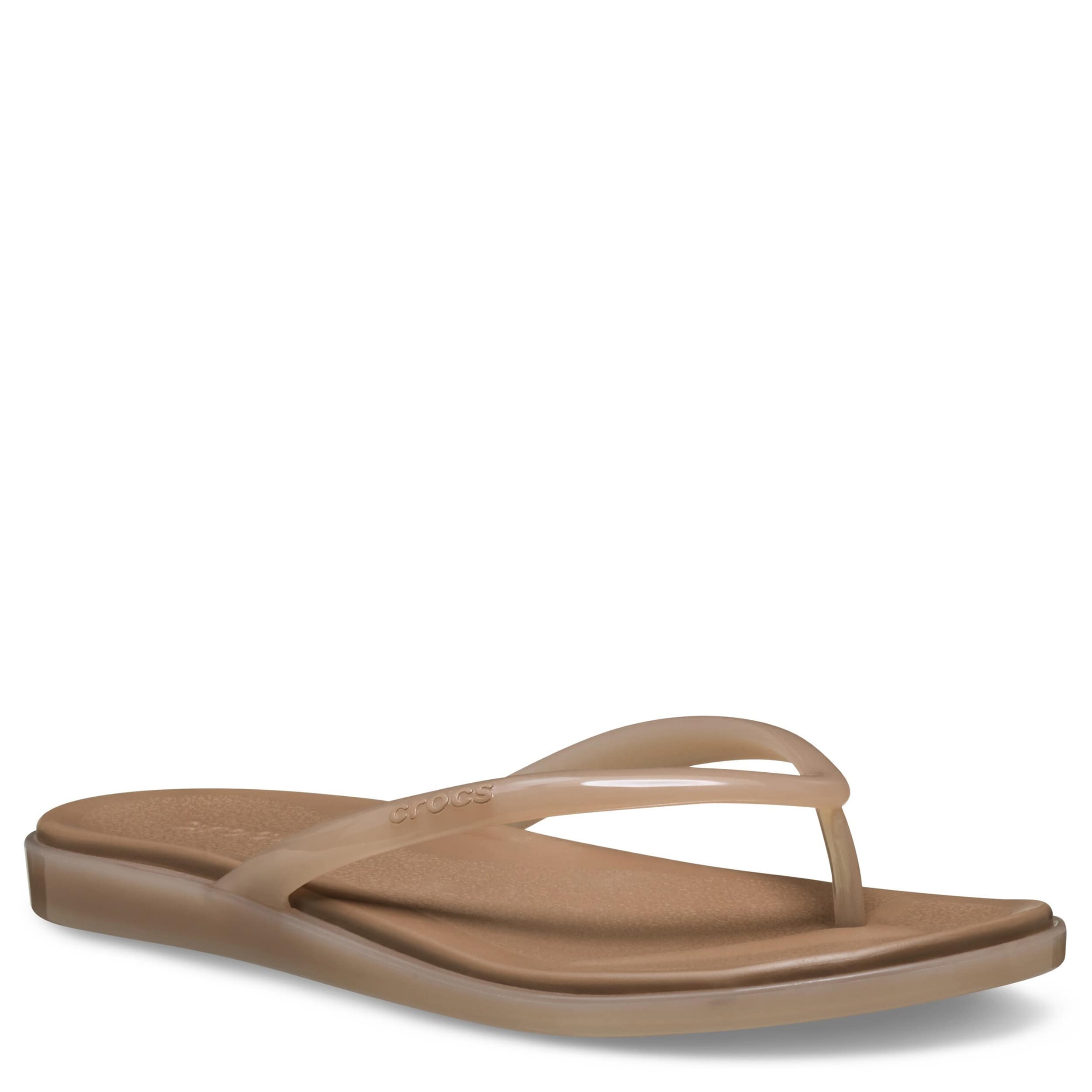 Delight your inner child in the Crocs Miami Jelly Round Toe women's sandal. With a flexible synthetic upper featuring a round toe for classic style, this simple sandal has that jelly gleam. The contoured, drop-in Crosliteâ„¢ footbed cradles your foot while the low platform offers just enough lift to keep you grounded in summer cool.