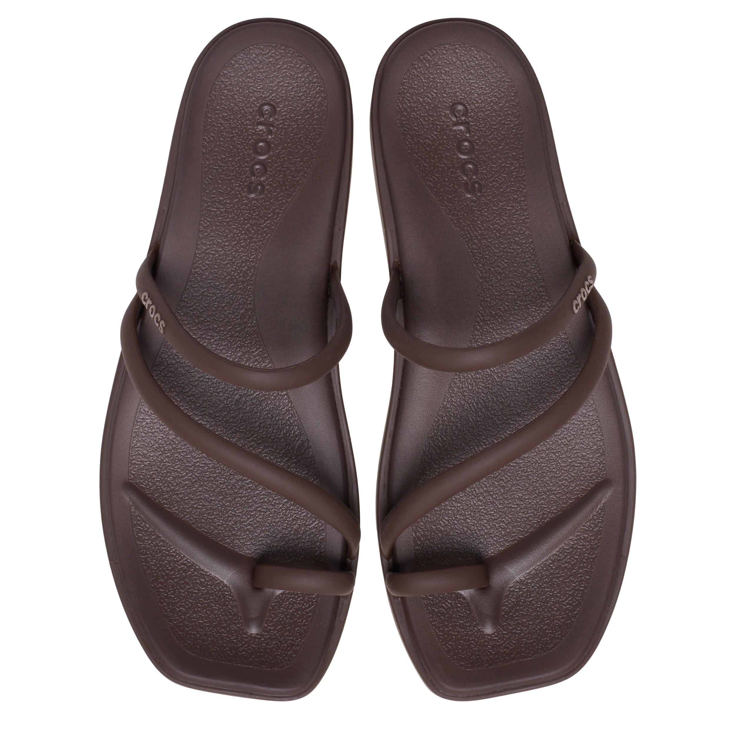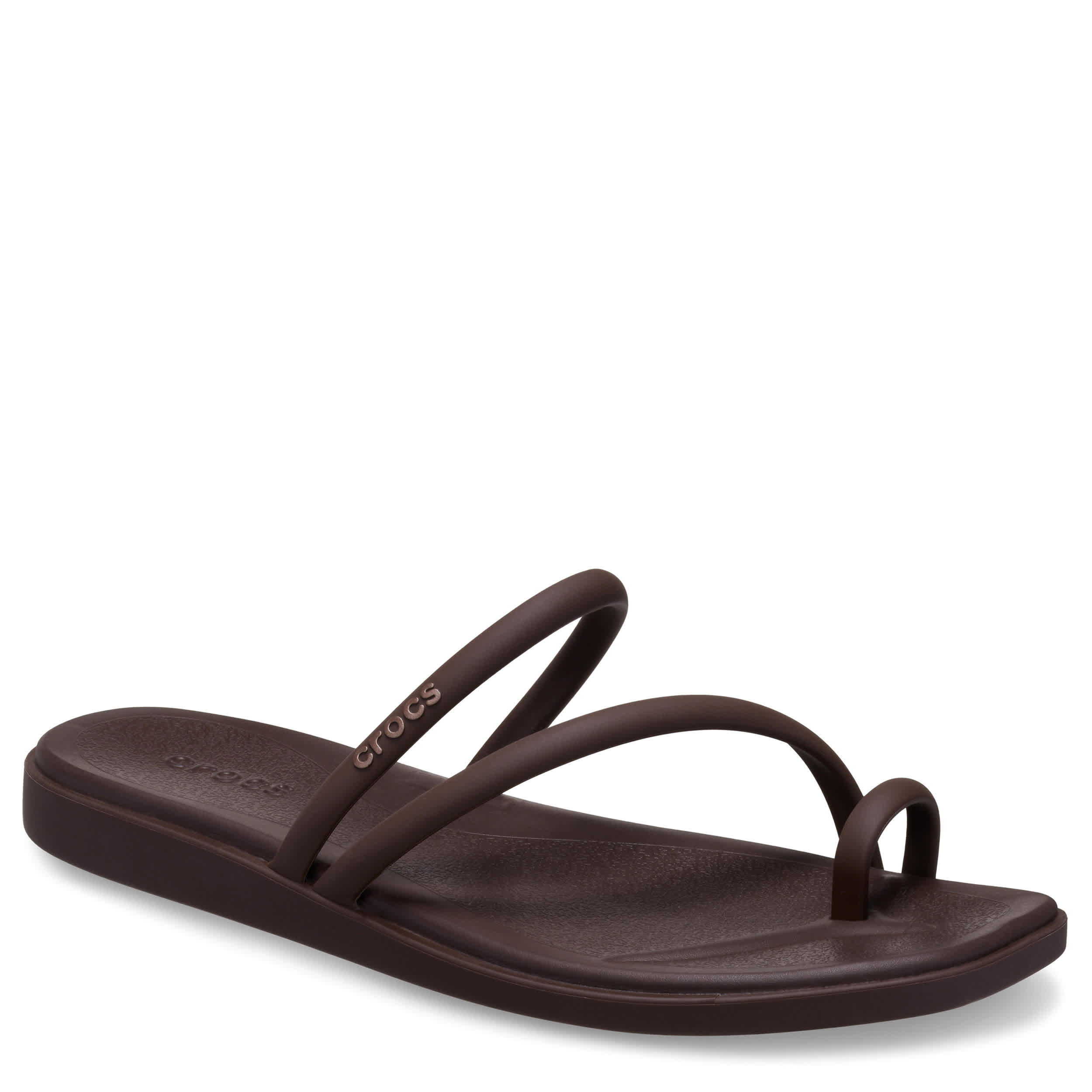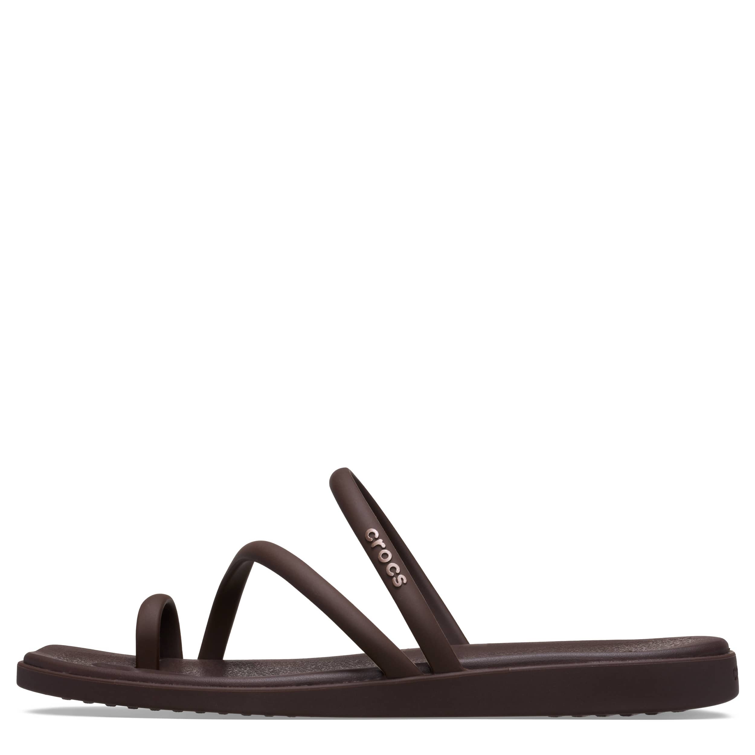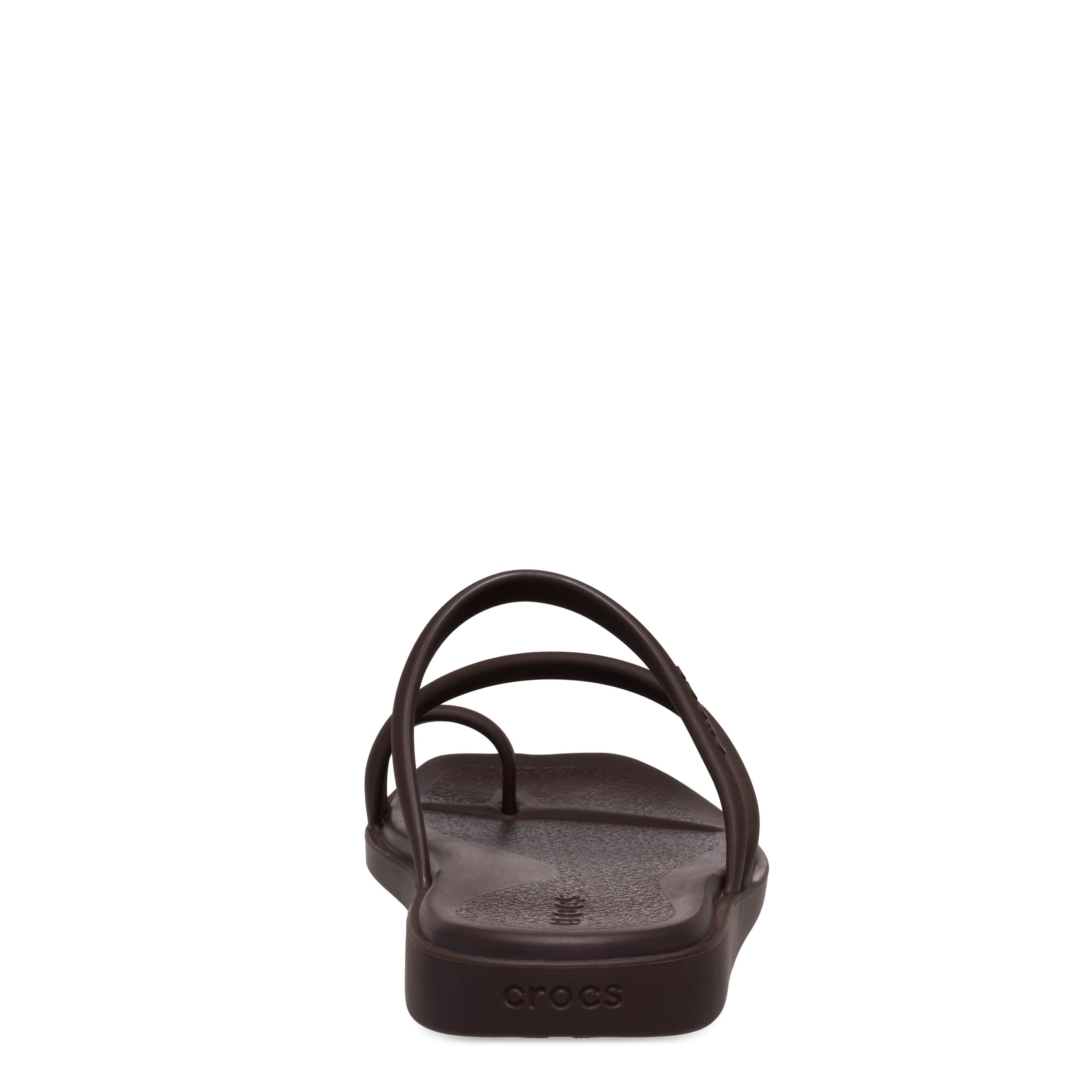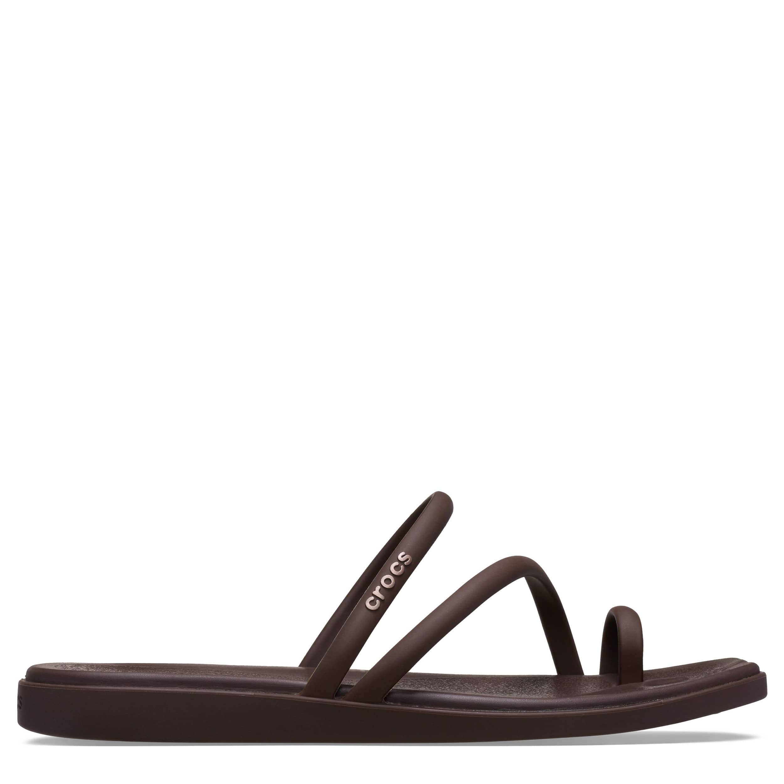Maybe less is more in the Crocs Miami Toe Loop women's sandal. With a flexible synthetic upper featuring a square toe for trendy style, this strappy sandal is perfect for a beach getaway. The contoured, drop-in Crosliteâ„¢ footbed cradles your foot while the low platform offers just enough lift to keep you grounded in summer cool.