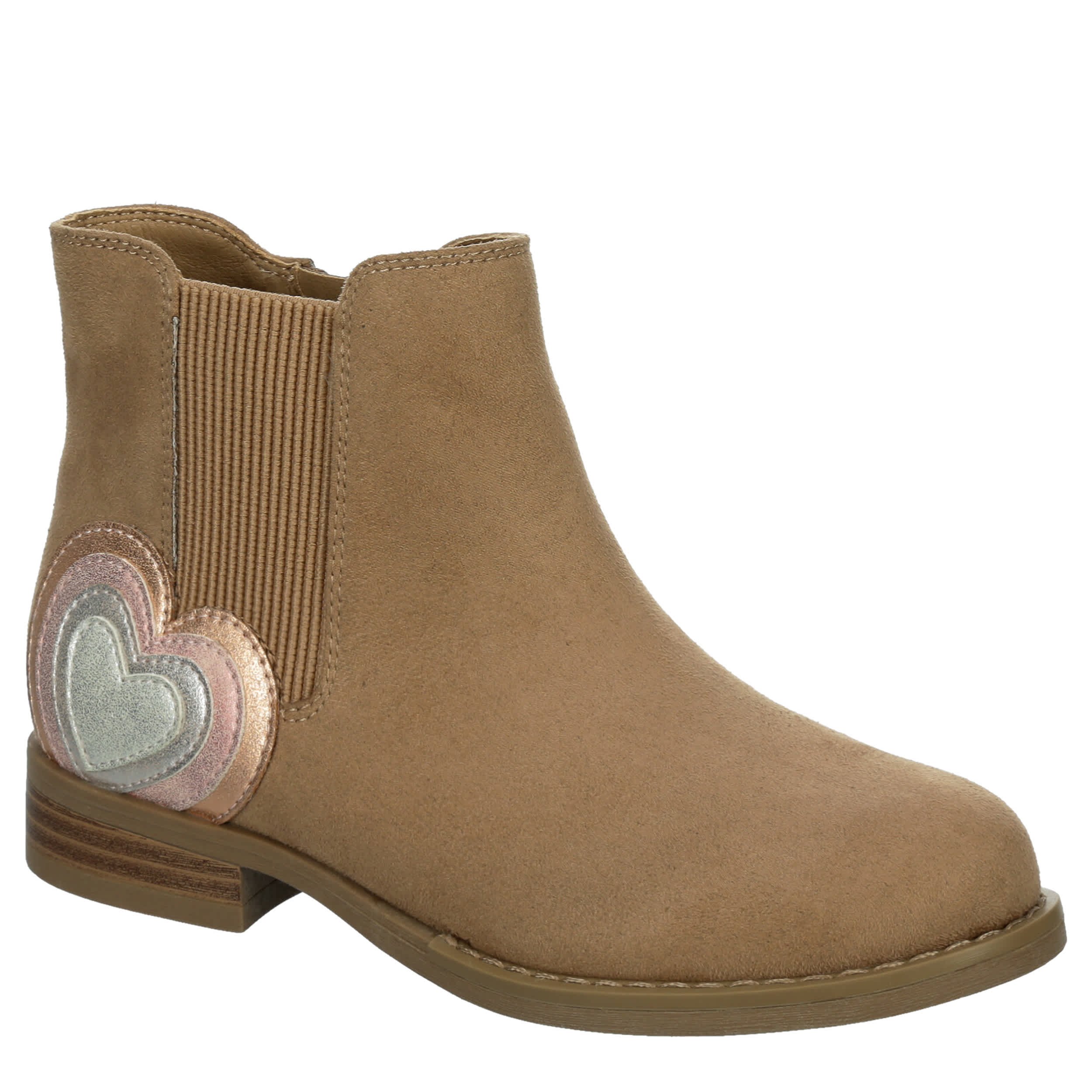 Dress up your little cutie for fall with the Cupcake Couture Elisia girls' bootie. Featuring a faux suede upper with an elastic panel and a large heart accent for extra flair, these booties look great with all her outfits. The footbed and synthetic outsole make sure she's comfortable and covered while enjoying the weather.
