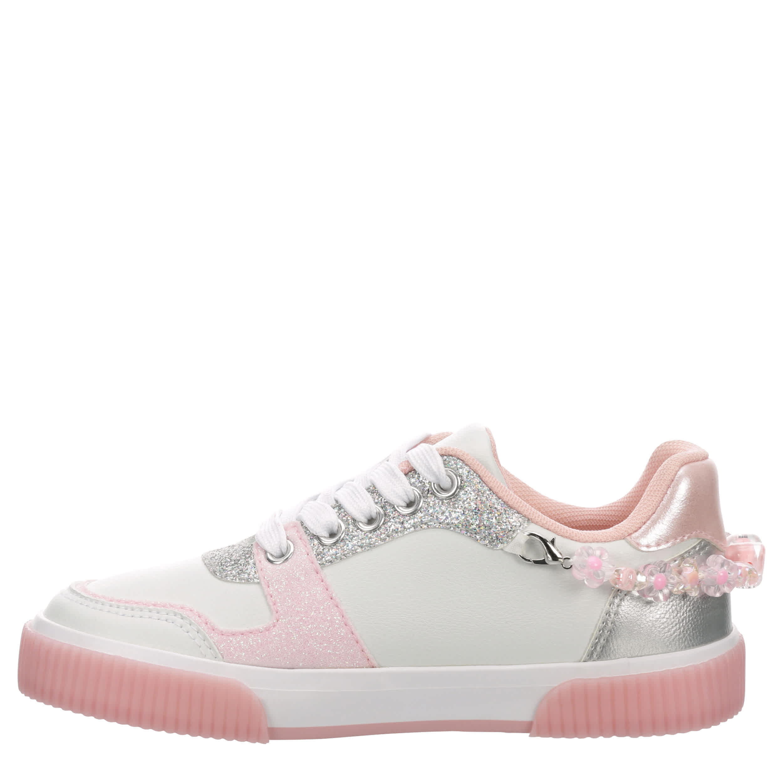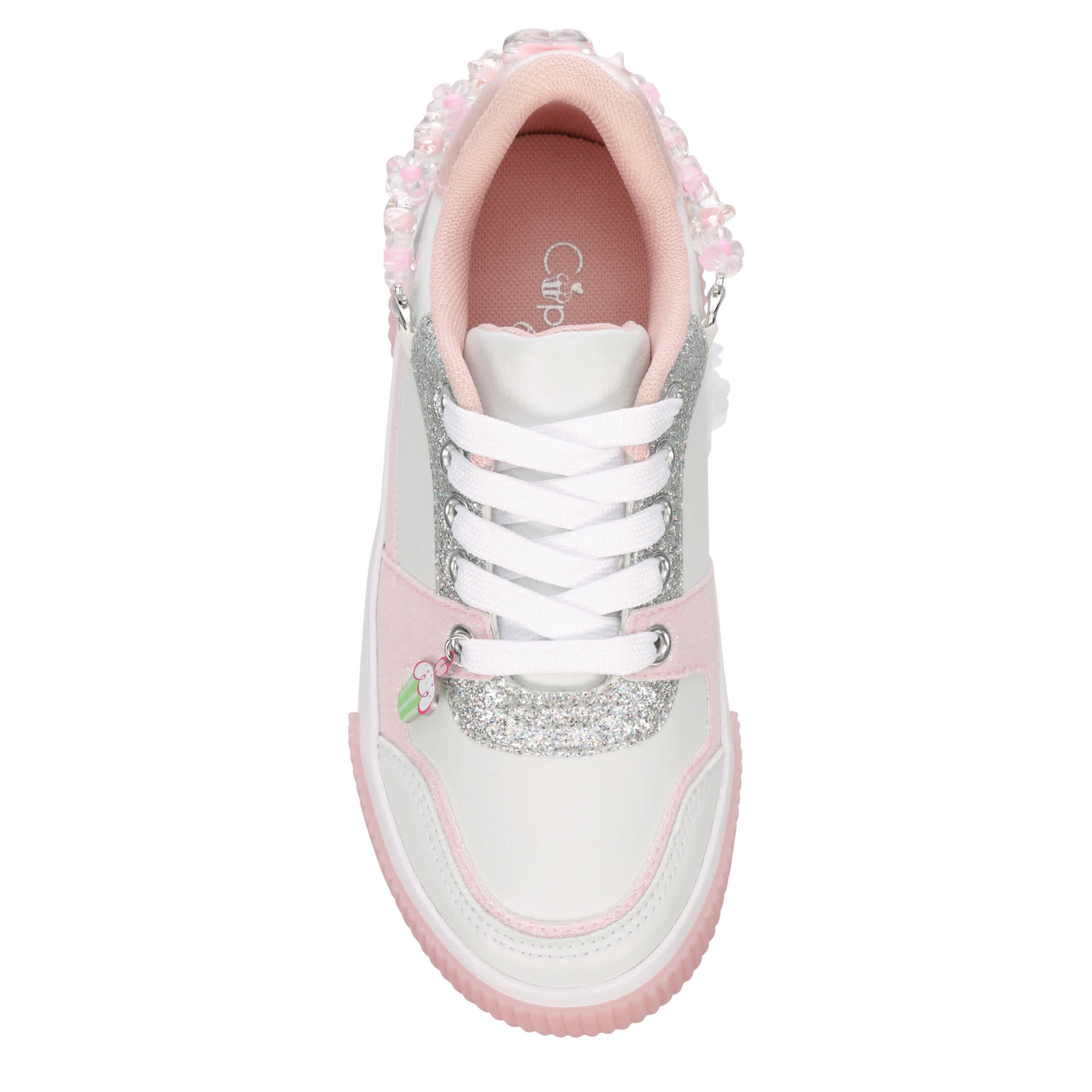 Let her show off her personality in the Cupcake Couture Katie little/big kid girls' sneaker. Featuring a faux leather upper with glitter accents and cute charms, this shoe will add a fun touch to her outfits. The padded footbed and synthetic outsole ensure supported steps for playtime.