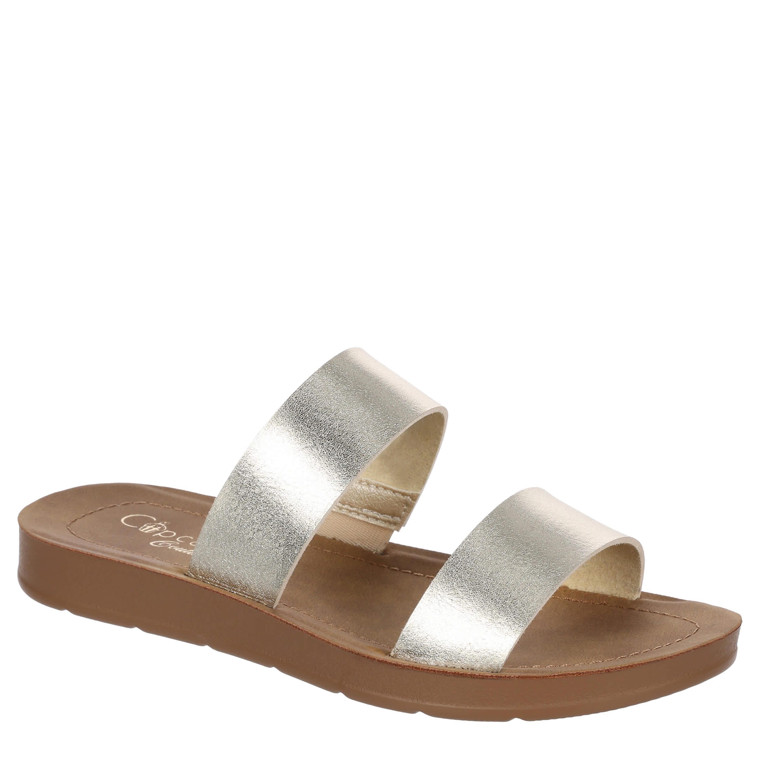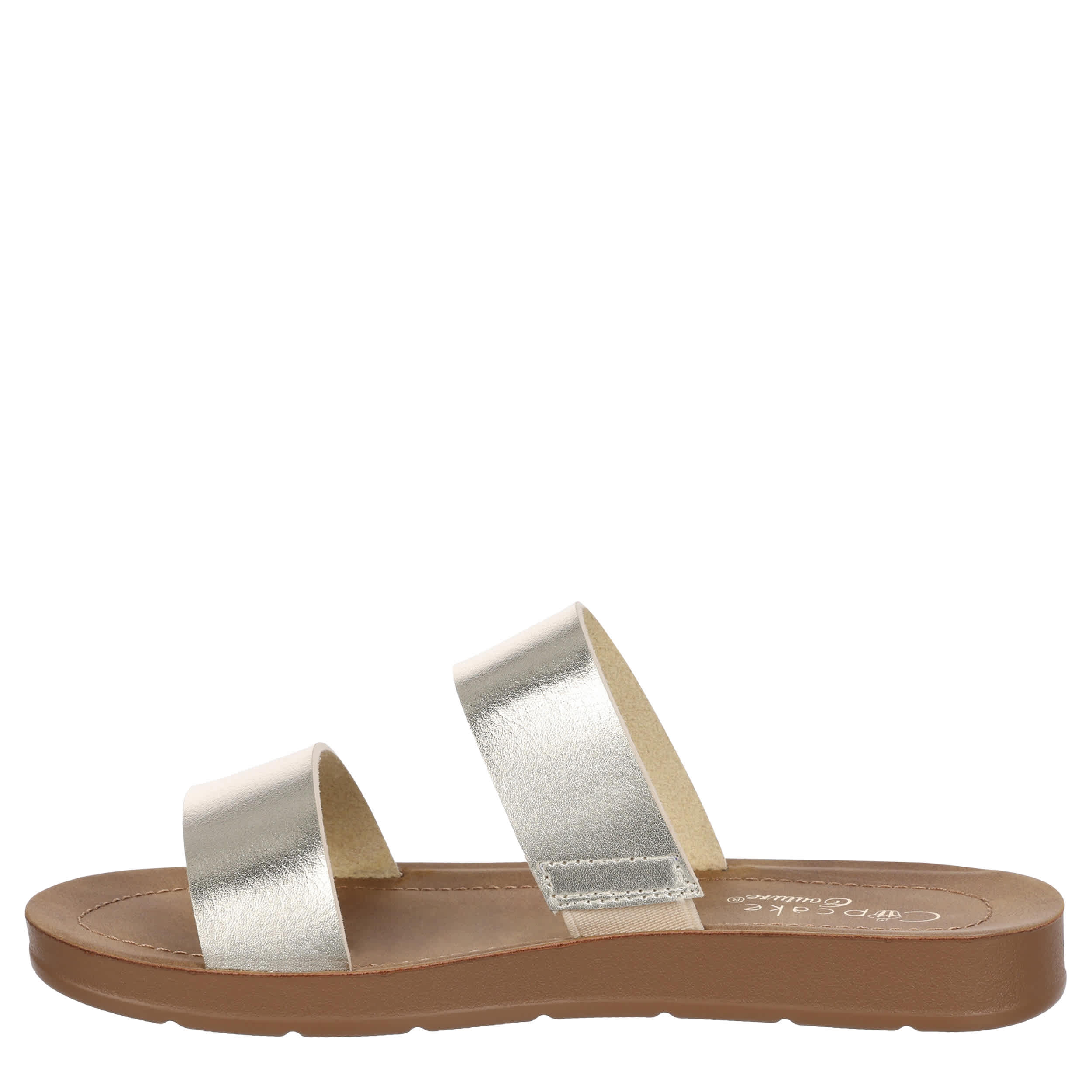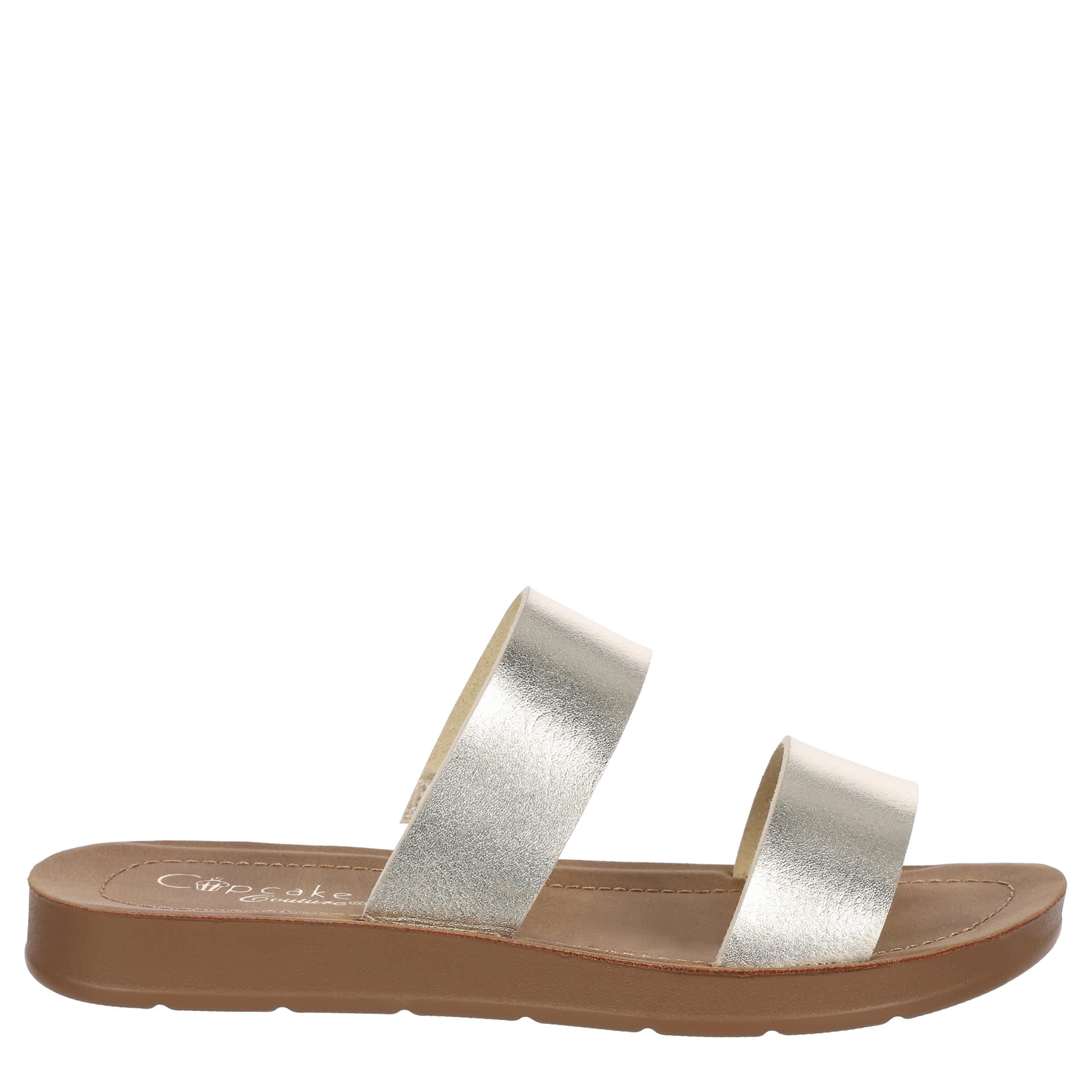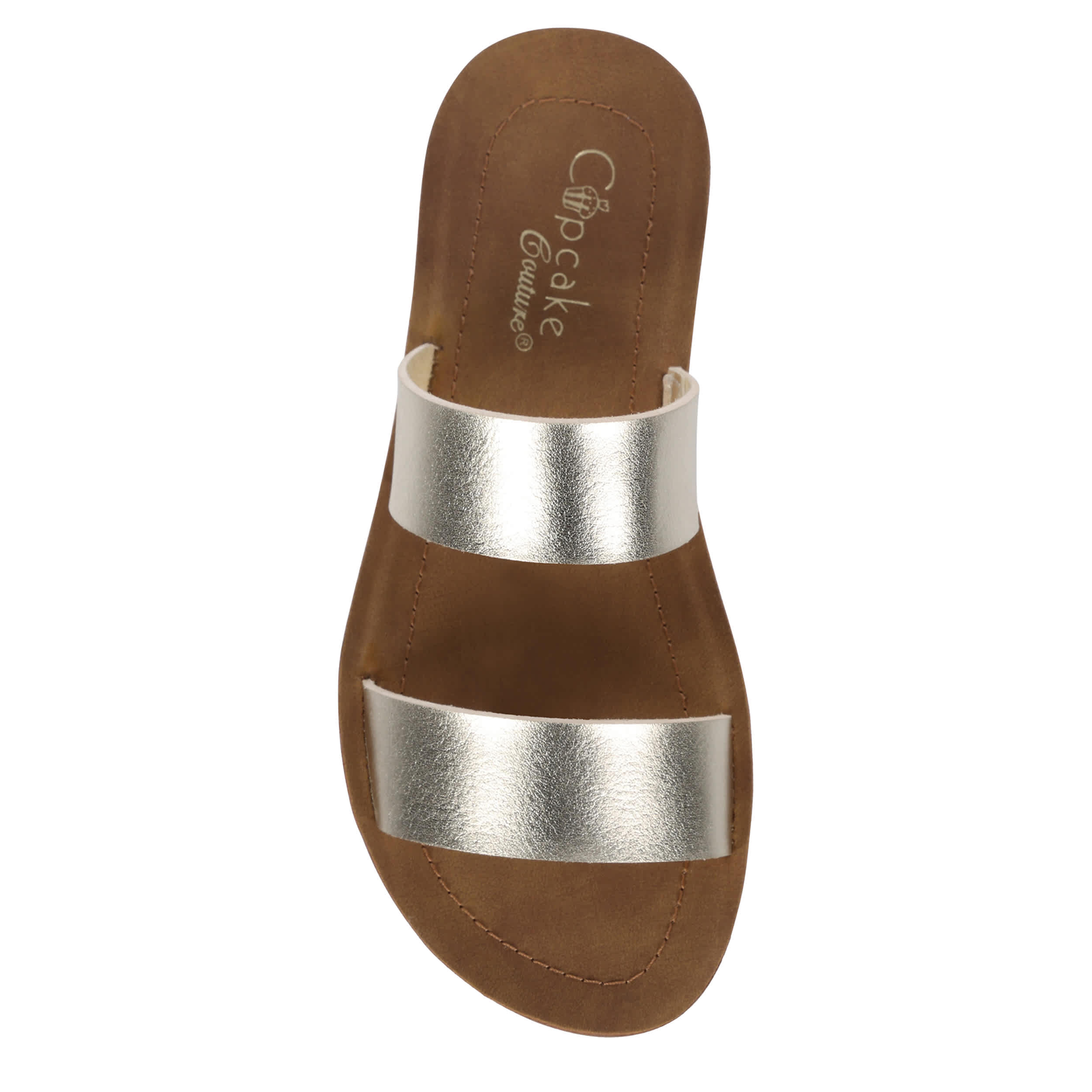 Let her style shine bright with this Cupcake Couture Kylie girls' sandal. Featuring a metallic faux leather upper featuring an elastic insert for a secure fit, this sandal is summer-ready. The footbed cradles her foot, while the contrasting outsole gives her a trendy look.