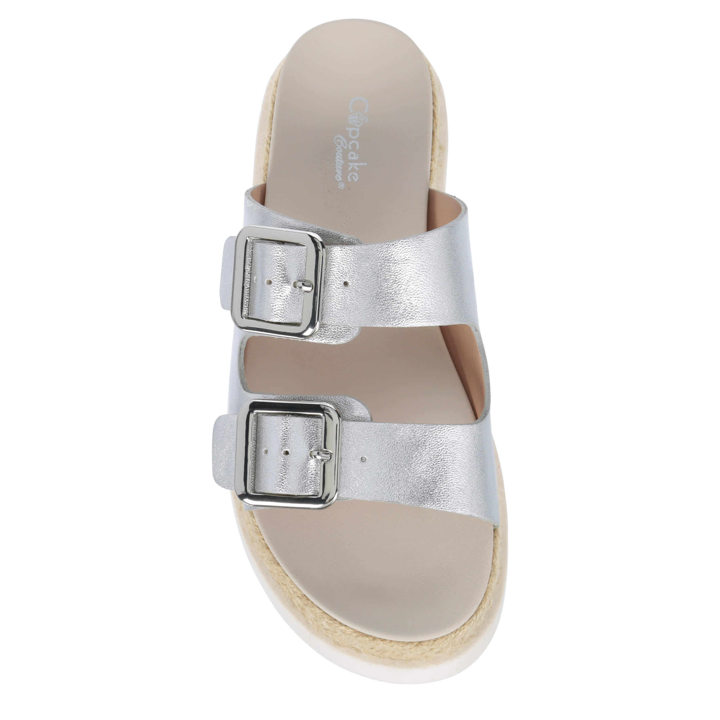 She'll be cute all summer long in the Cupcake Couture Page girls’ footbed sandal. Featuring faux leather dual buckle straps, this shoe is easy for her to slip on when she’s on the move. The cushioned footbed comforts her steps, while the platform midsole gives a little lift, and the lug traction outsole offers good traction.