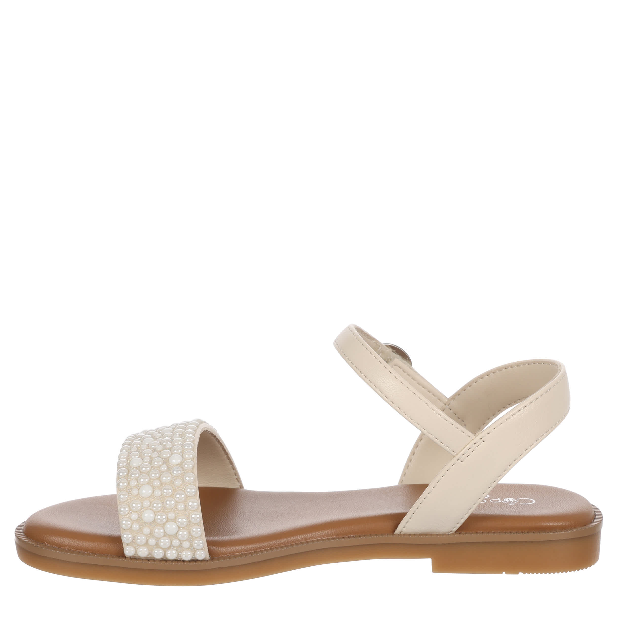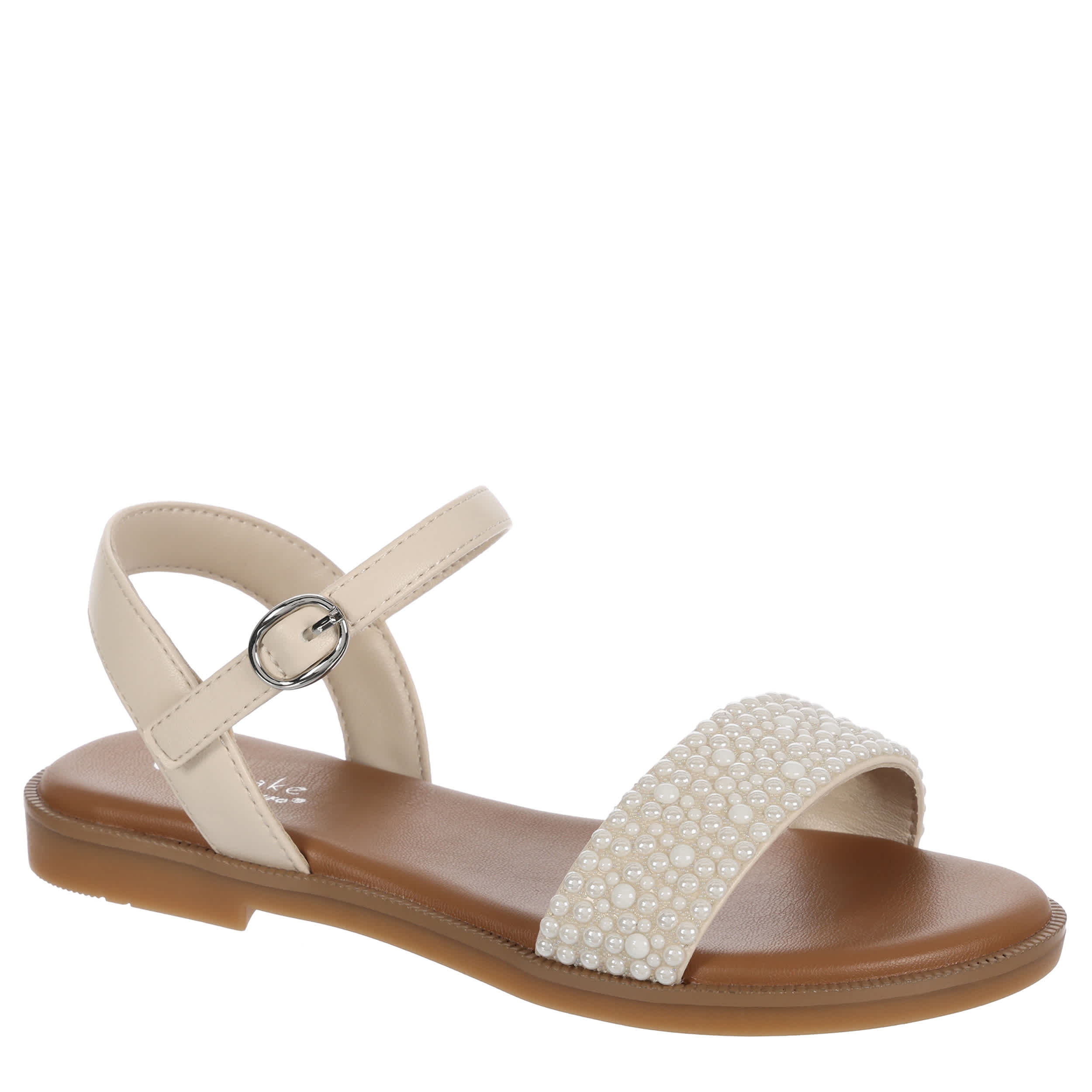 Keep your little lady sharp with the Pearline girls' sandal from Cupcake Couture. Featuring a faux leather upper with a two bands, this easy-on, pearly sandal dresses up Sunday outfits or special occasions. The insole cushions her foot while the durable outsole keeps her grounded in style.