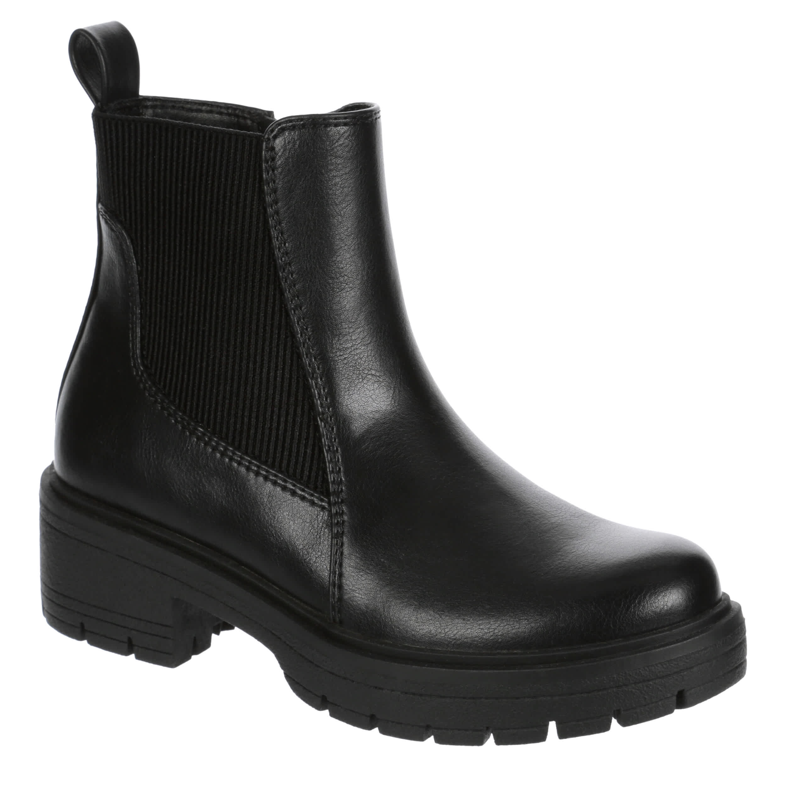 Everyday is stylish in the Stellar Chelsea boot from Cupcake Couture. With a faux leather upper featuring an elastic side panel for a secure fit, this inside zip boot offers a rugged look that pairs well with jeans, leggings, dresses, and skirts. The insole soothes her foot, while the durable lug outsole provides stability.