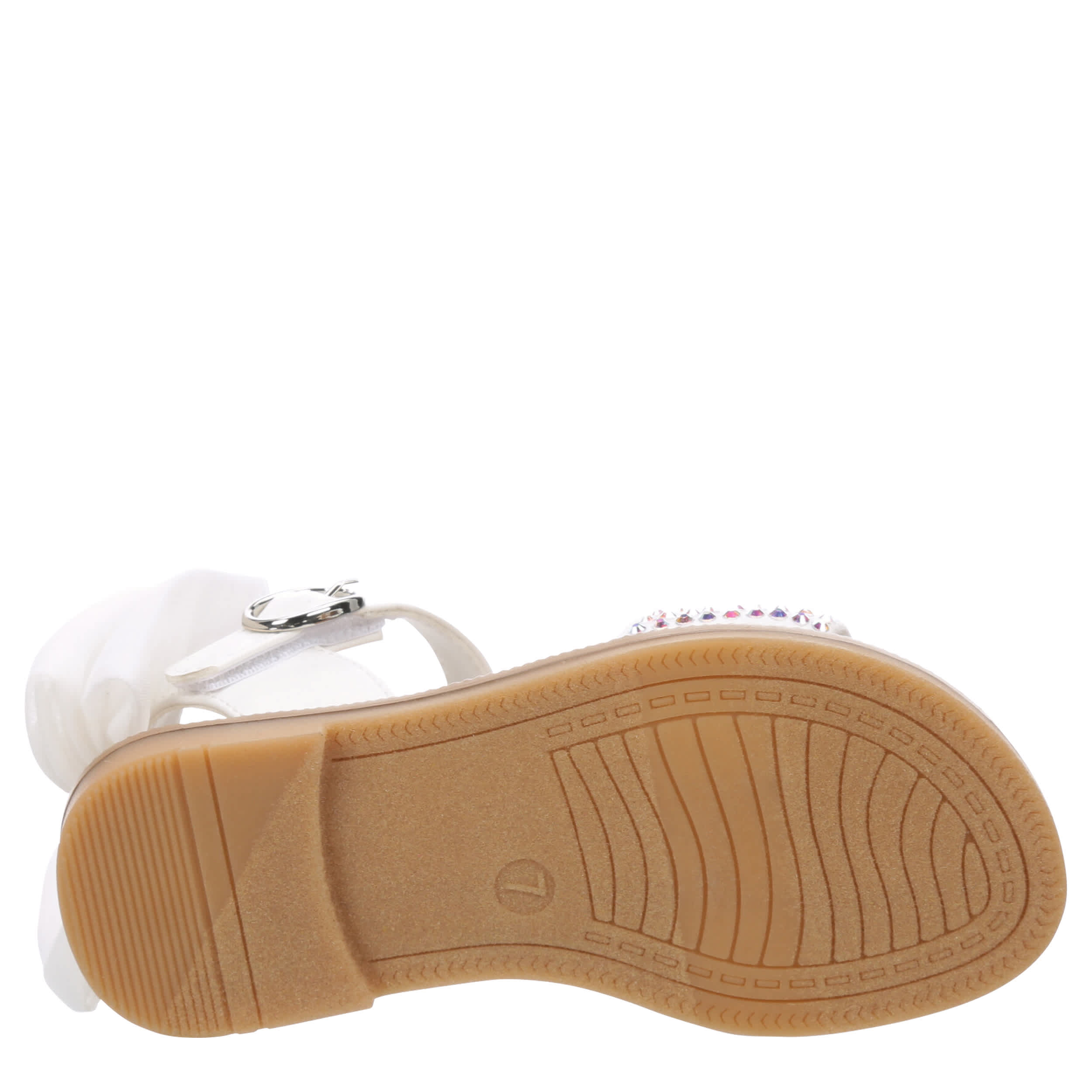 She'll be all things chic in the Cupcake Couture Bunny girls’ sandal. Featuring a faux leather upper decorated with rhinestones for a sparkly touch, this shoe has a large bow detail in the back for extra style. The lightly padded insole provides all-day comfort.