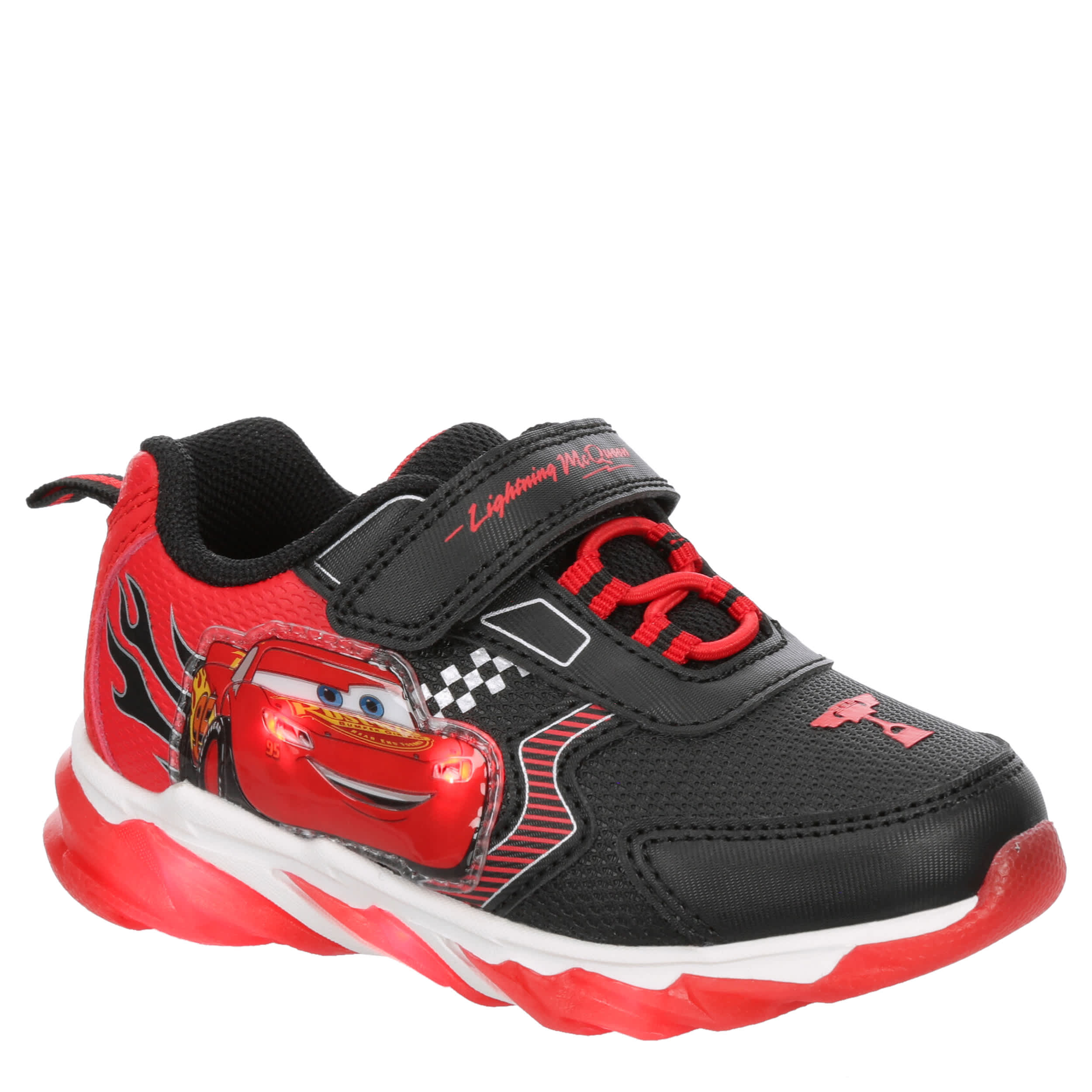 Join Lightning McQueen in fast lane with the Disney Cars infant boys' light up sneaker. Featuring a flame-accented upper with a secure ankle strap, this sneaker also has a light-up graphic as well as sole lights for a cute finish. The insole cushions his foot, while the traction outsole provides a durable grip.
