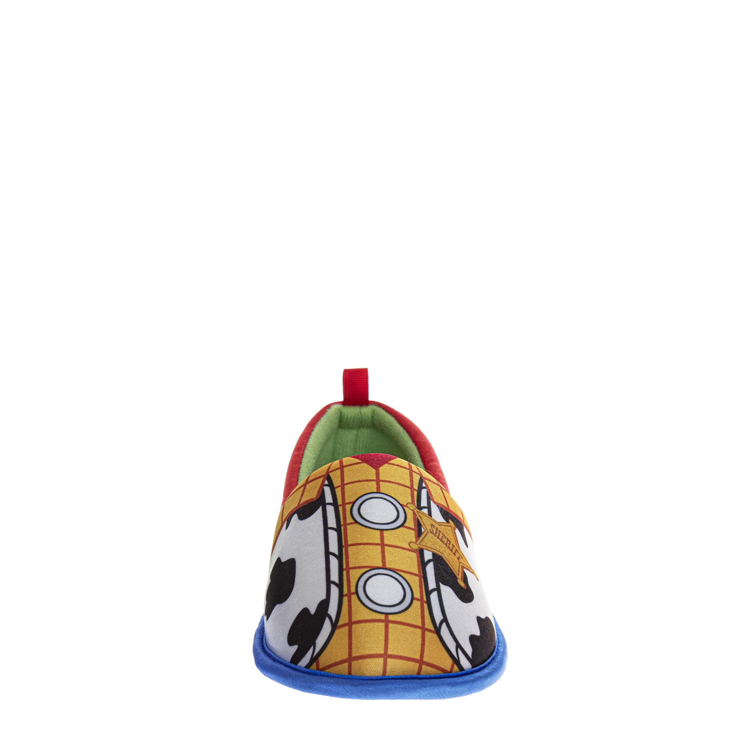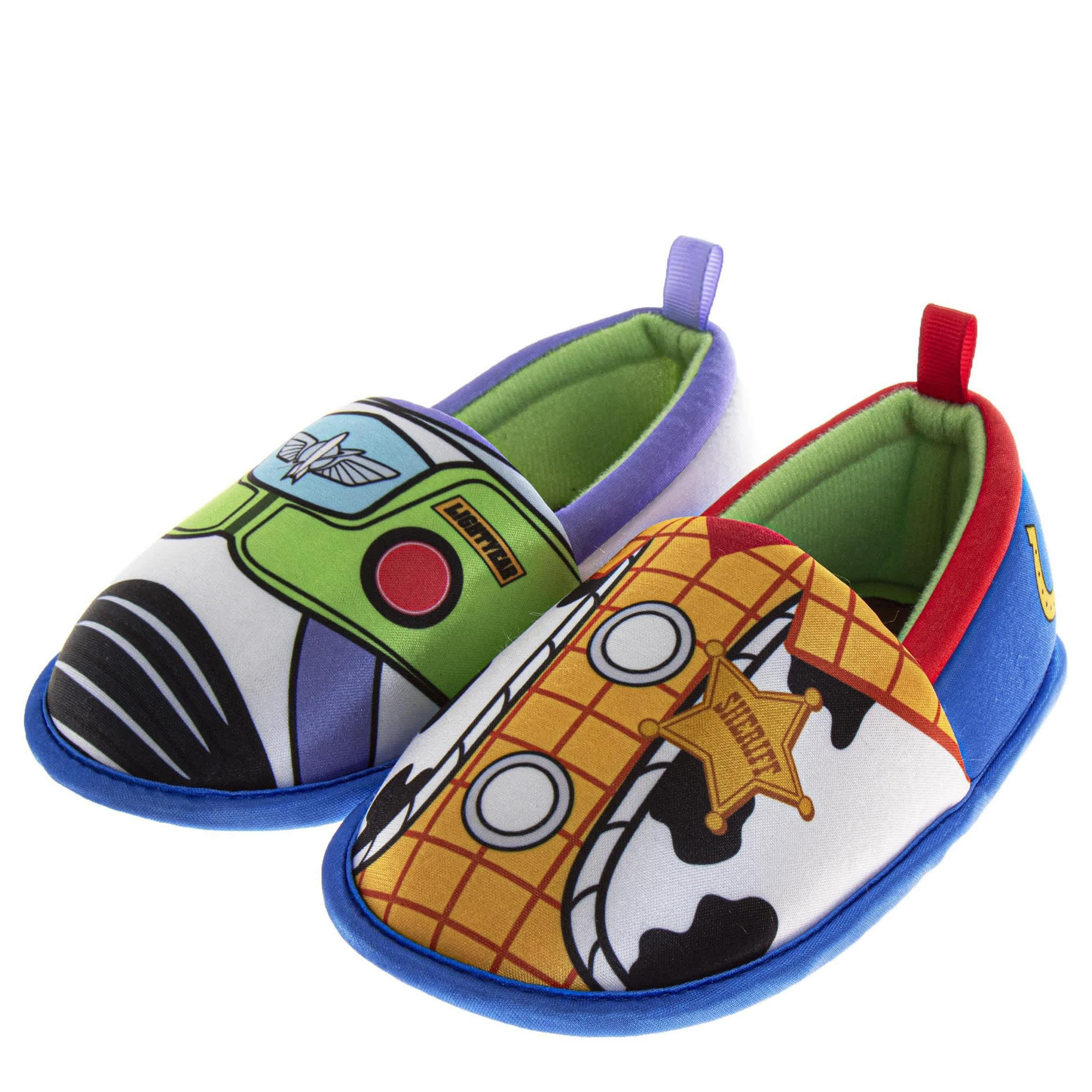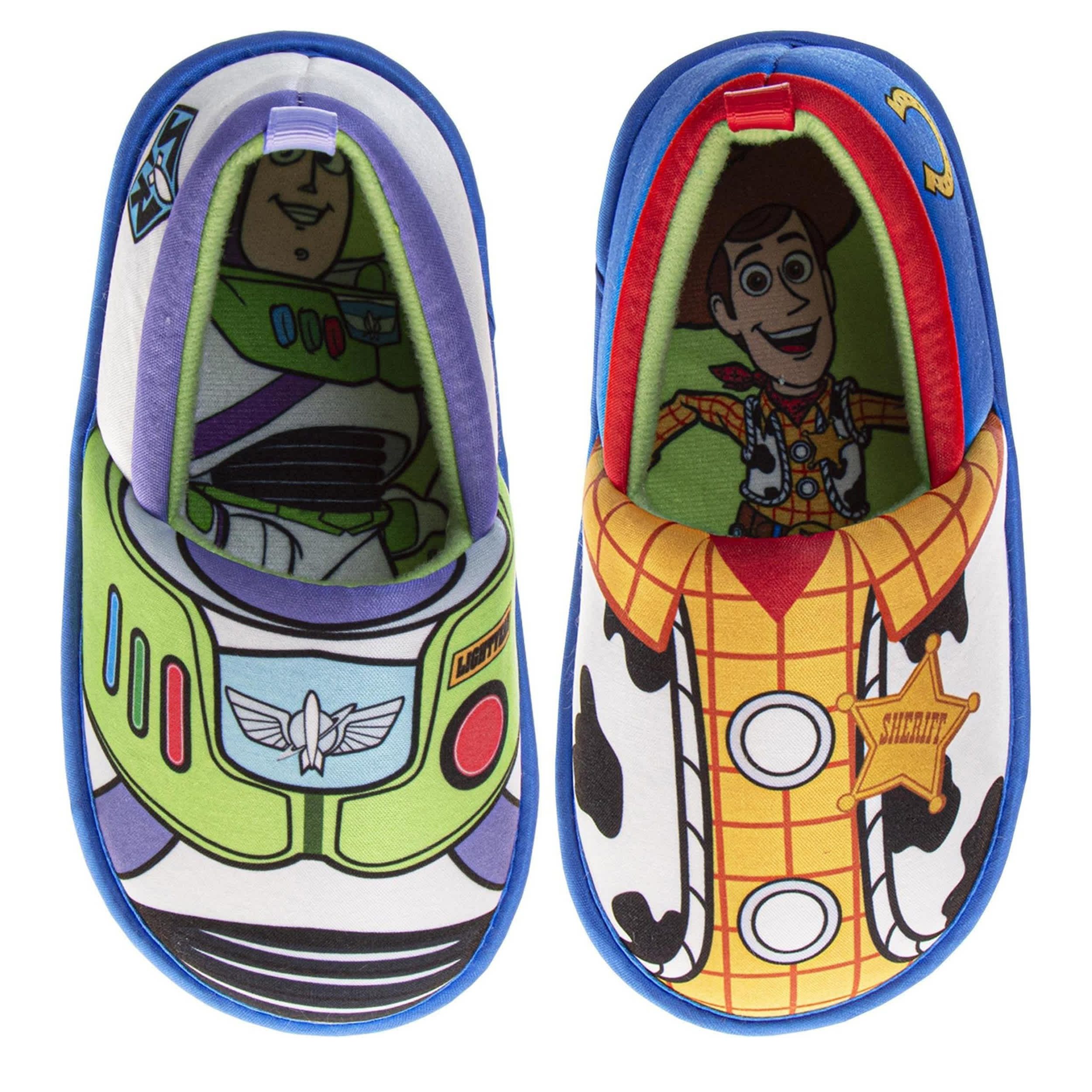 He'll stay cozy with his favorite characters in the Disney Toy Story toddler boys’ slipper. Made with a soft fabric upper and plush lining, this slipper features the iconic characters Buzz Lightyear and Sheriff Woody. The padded footbed and non-slip outsole keep him supported for all-day play.