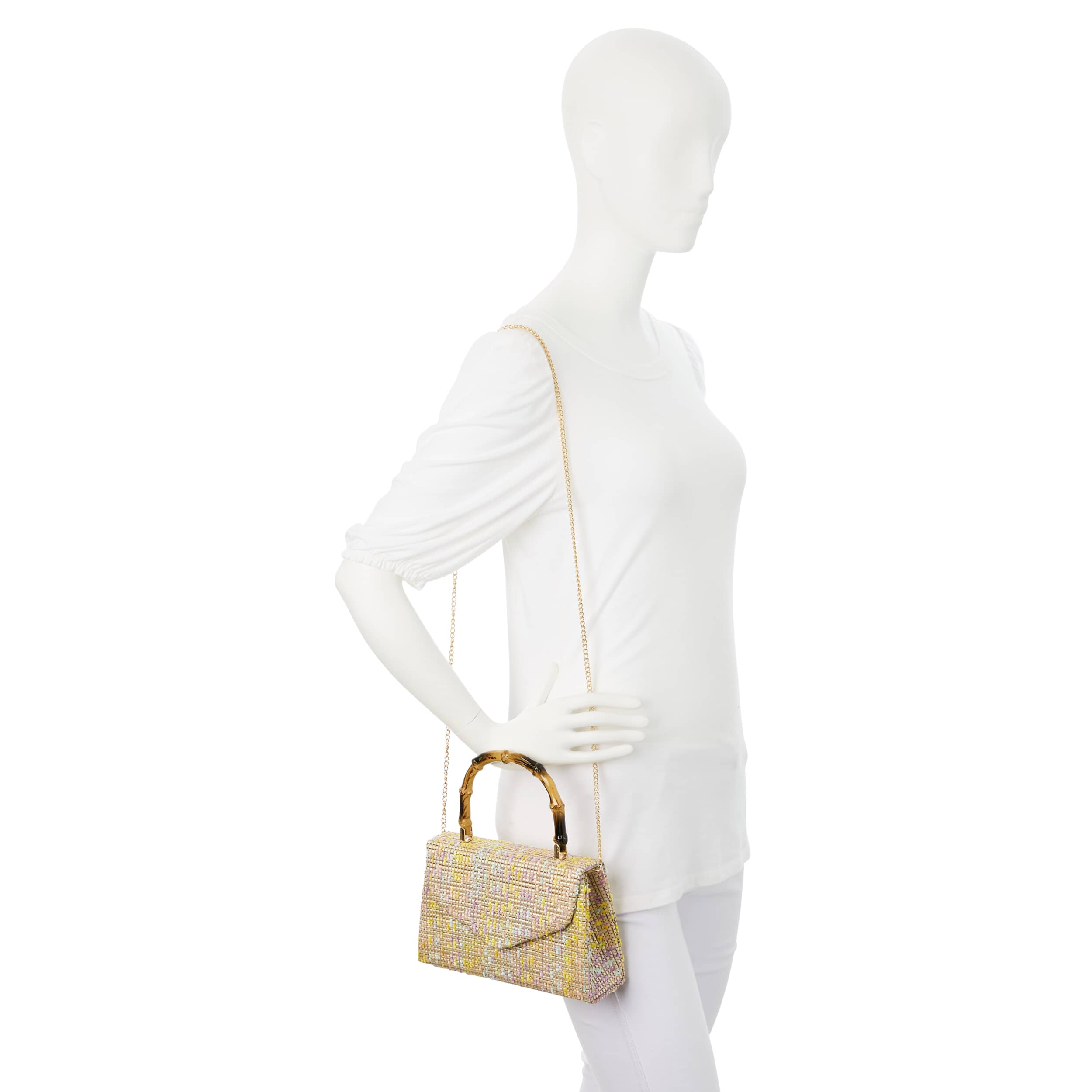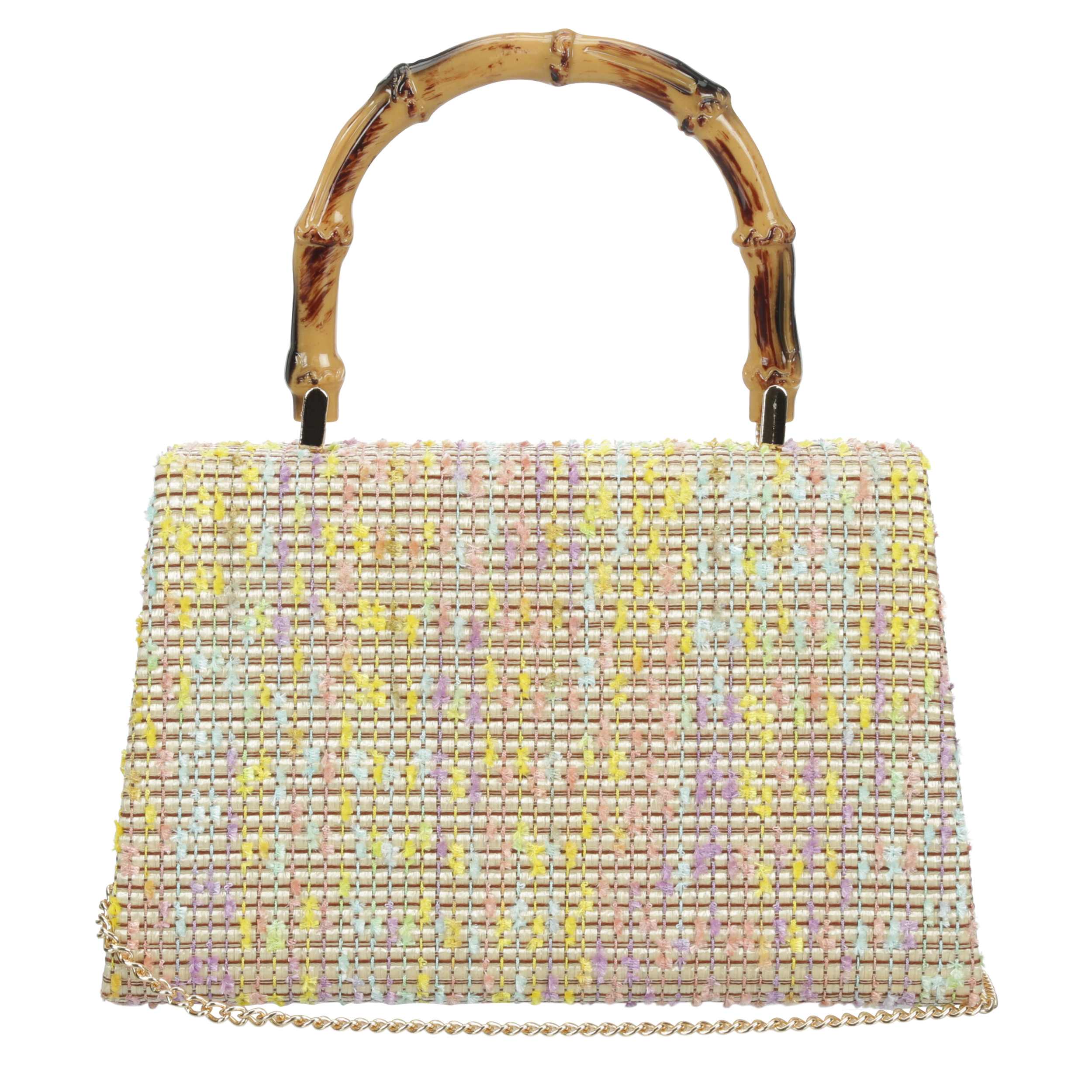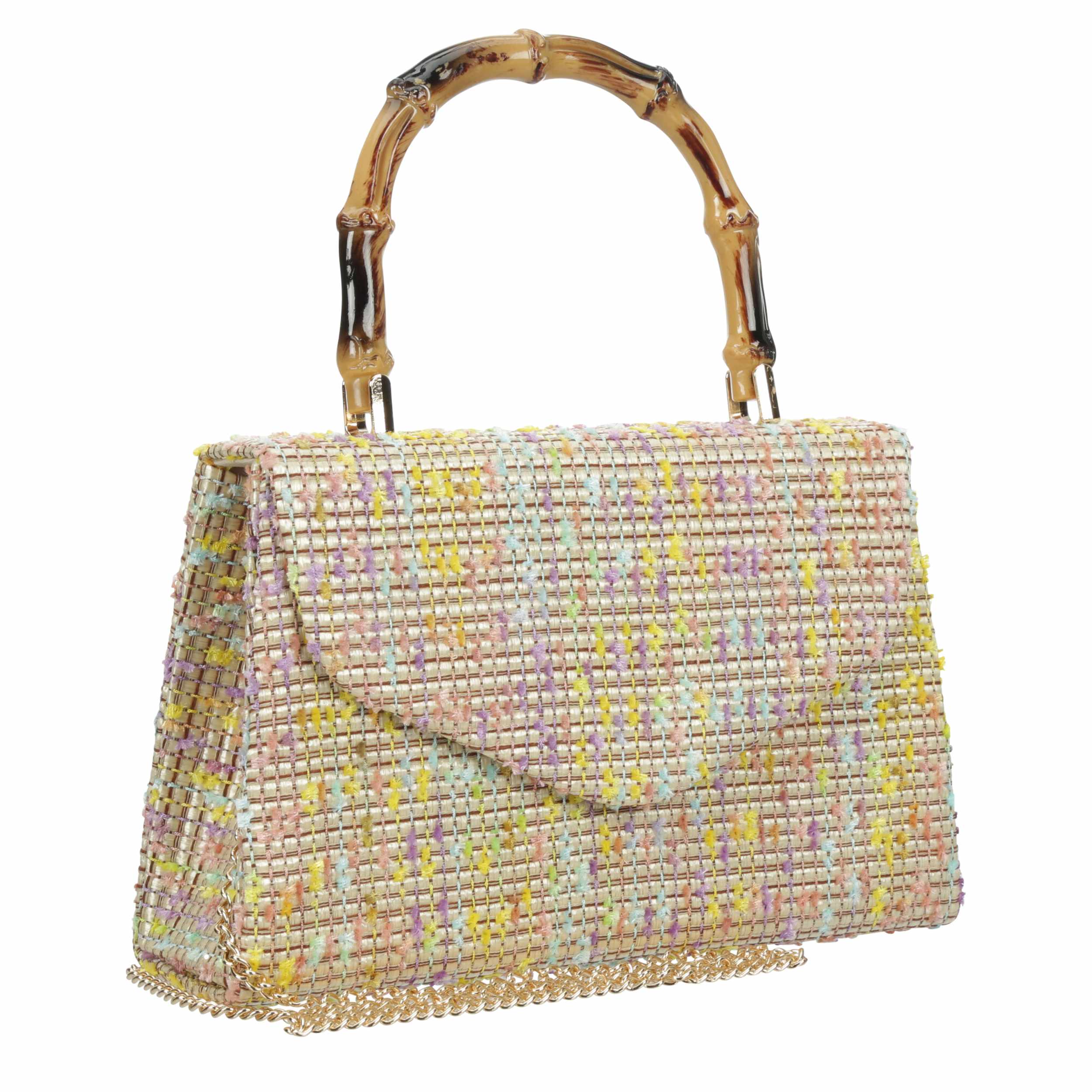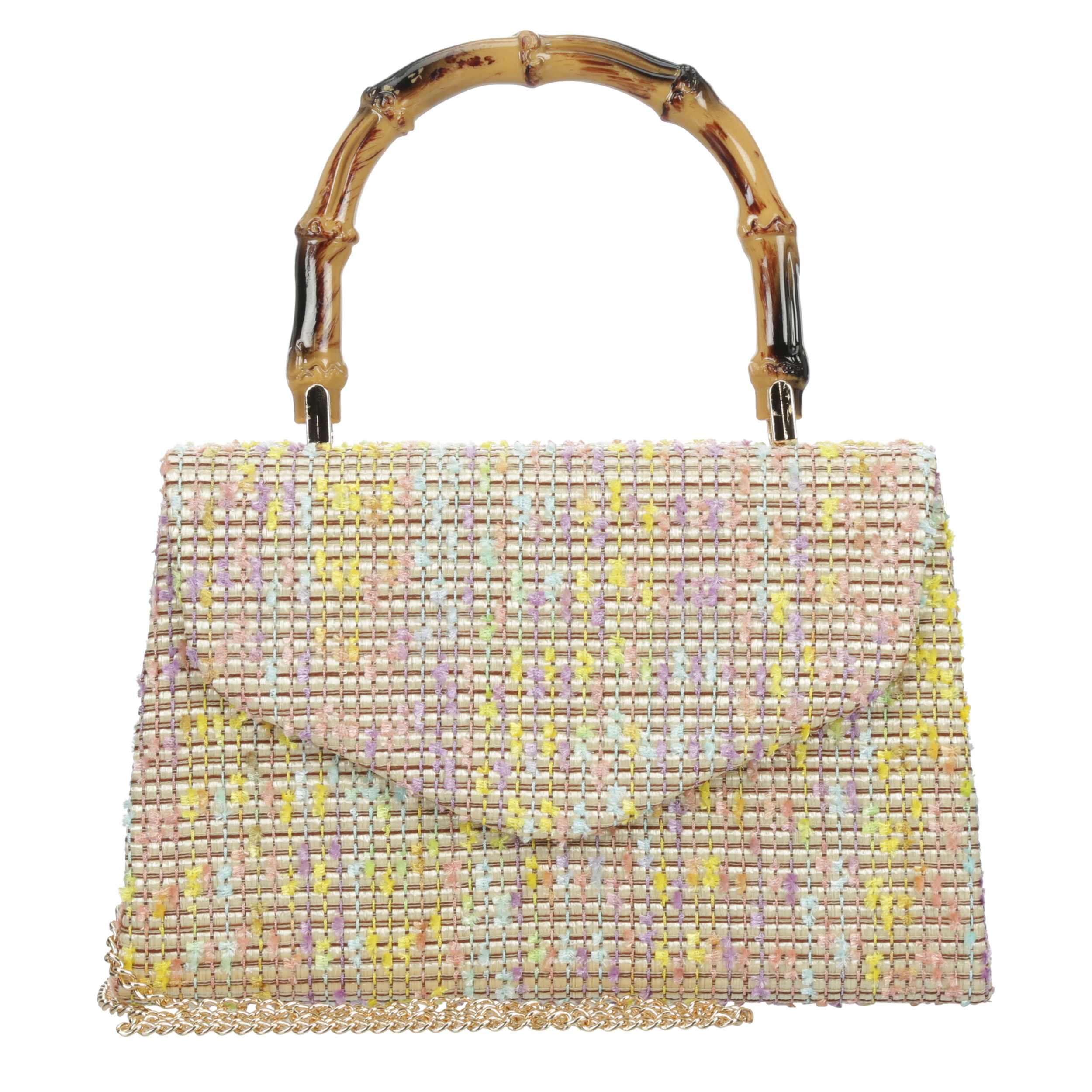 UNISEX STRAW CLUTCH WITH BEAD HANDLE