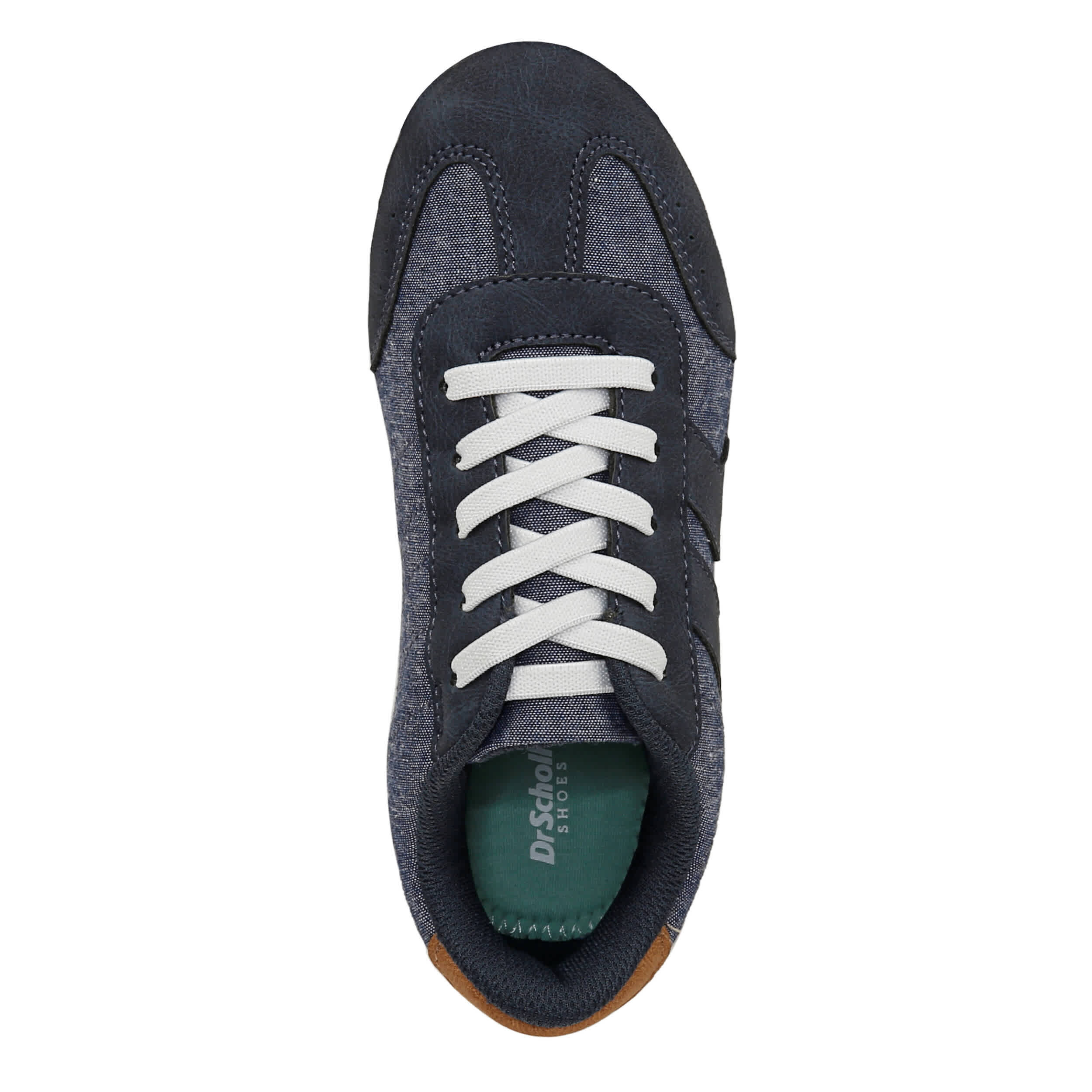 Back-to-school adventures begin in the Madison Play sneaker from Dr. Scholl's Kids'. With a denim & faux leather upper featuring chevron details and Easy Clean Repellant sidewall pre-treatment, this shoe also has a padded collar to protect his ankles. The Comfort Insole Technology offers cushioning & arch support, while the outsole adds a little traction.