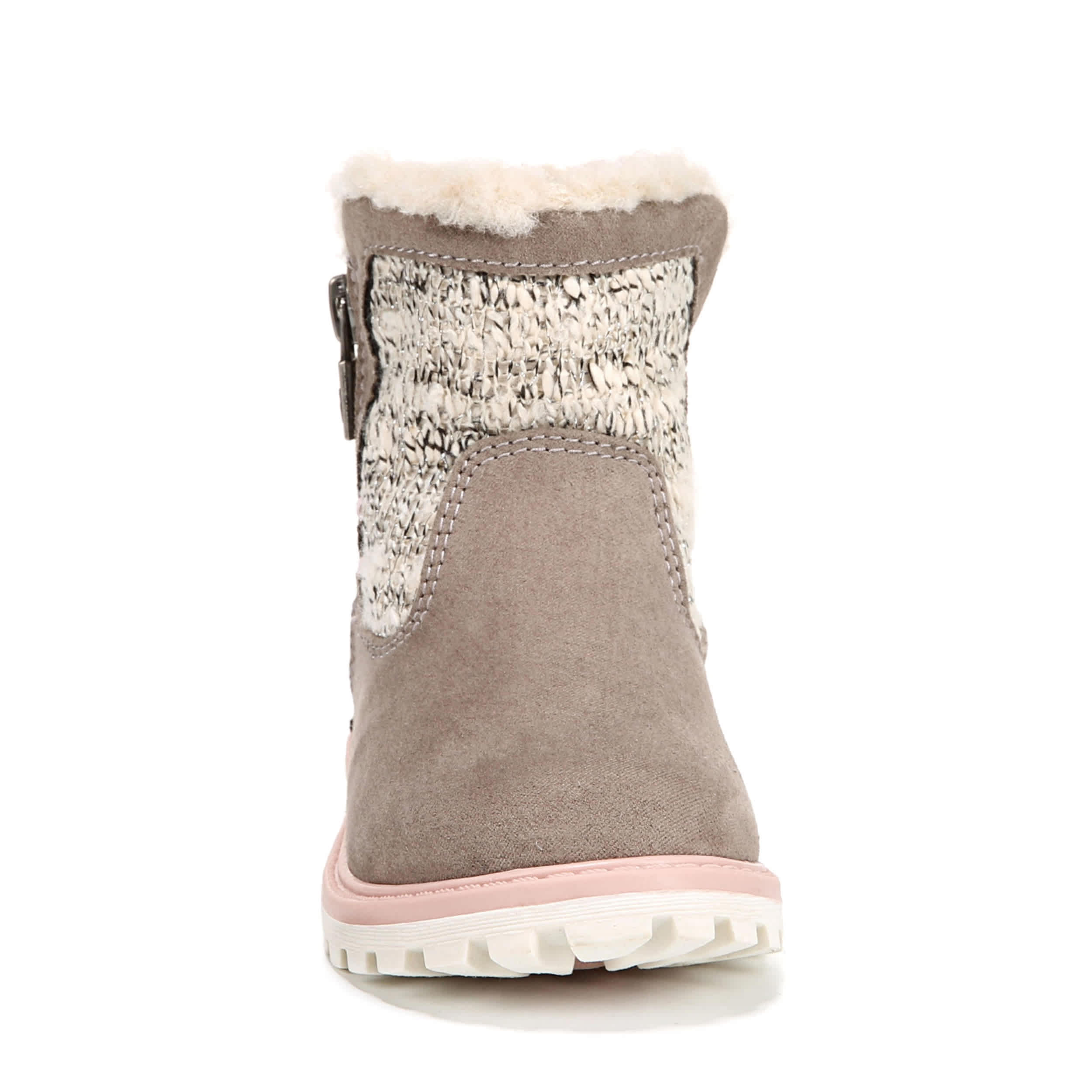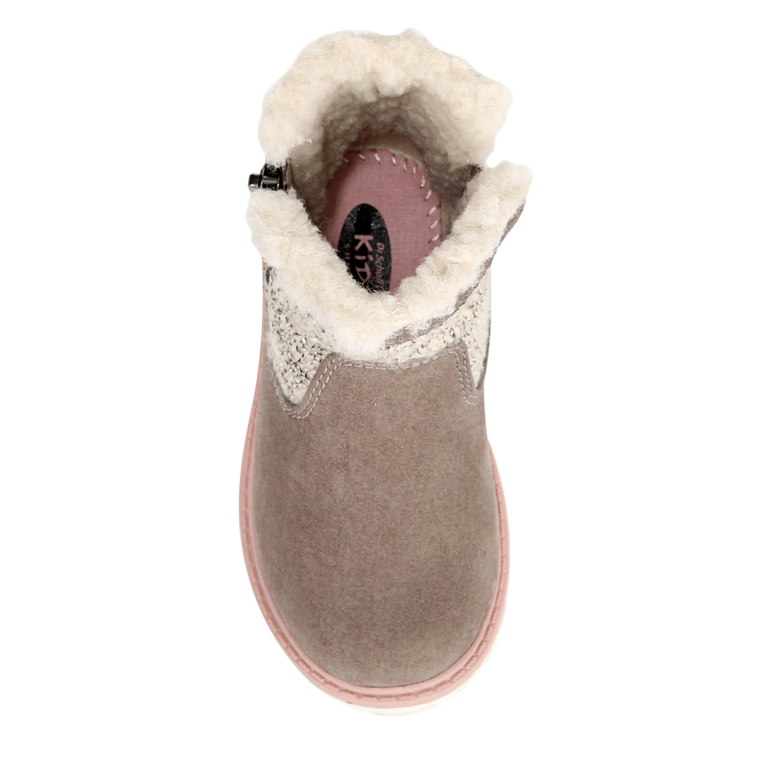 The epitome of cozy-chic, the Kendal infant girls' fur boot from Dr Scholls is a first-round pick for the season. She'll stay warm and cute in this microsuede upper with sherpa lining and knit accents. Its Memory Foam Cool Fit insole adds another layer of comfy as she steps out in this adorable look.