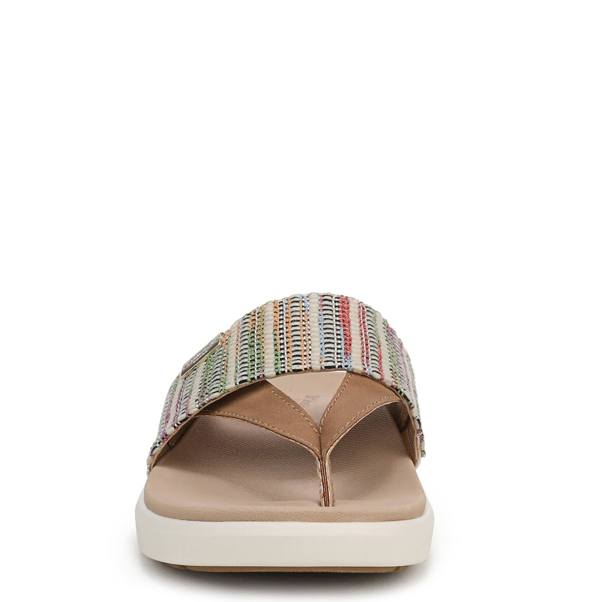 Stylish, yet sporty in the All Day Platform flip flop sandal from Dr. Scholl's wherever you go. Featuring a faux leather upper with sidewalls pretreated with Easy Clean Repellant to keep them bright, this banded thong sandal is comfy and adjustable. The textured footbed with Insole Technology adds anatomical cushioning, while the low heel offers subtle lift.
