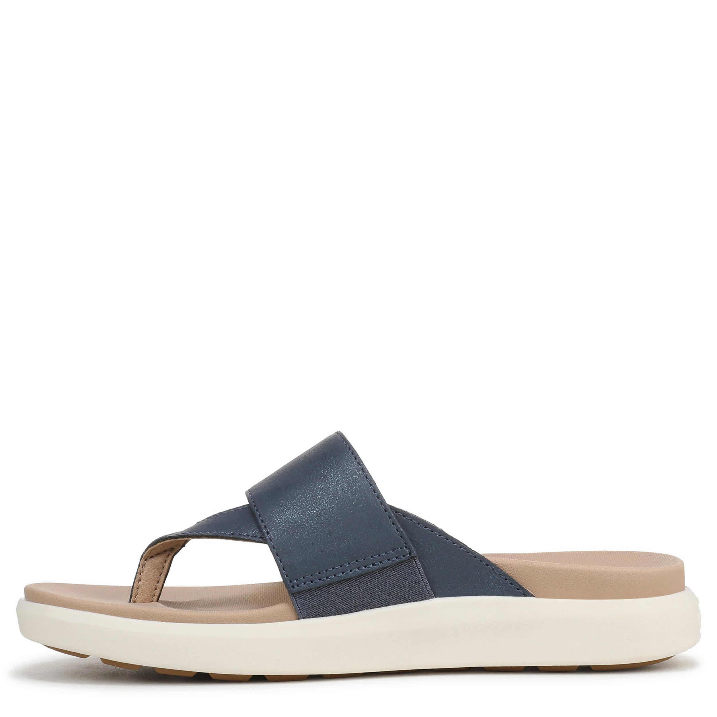 Stylish, yet sporty in the All Day Platform flip flop sandal from Dr. Scholl's wherever you go. Featuring a faux leather upper with sidewalls pretreated with Easy Clean Repellant to keep them bright, this banded thong sandal is comfy and adjustable. The textured footbed with Insole Technology adds anatomical cushioning, while the low heel offers subtle lift.