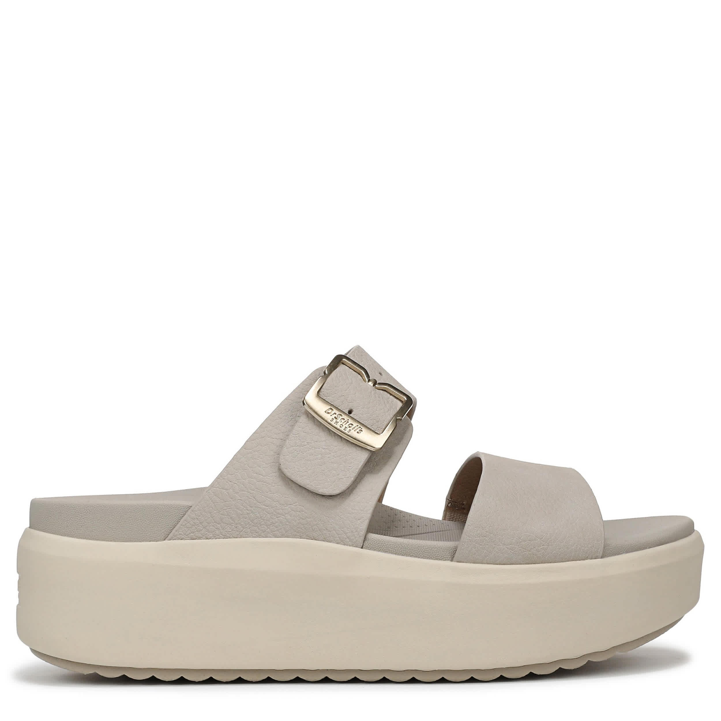 Trend sky-high in the All Time Max slide sandal from Dr. Scholl's wherever you go. Featuring a faux leather upper with seamless dual straps, this platform sandal is comfy and adjustable. The cradling footbed with Insole Technology adds anatomical cushioning, while the thick sole offers stable lift.