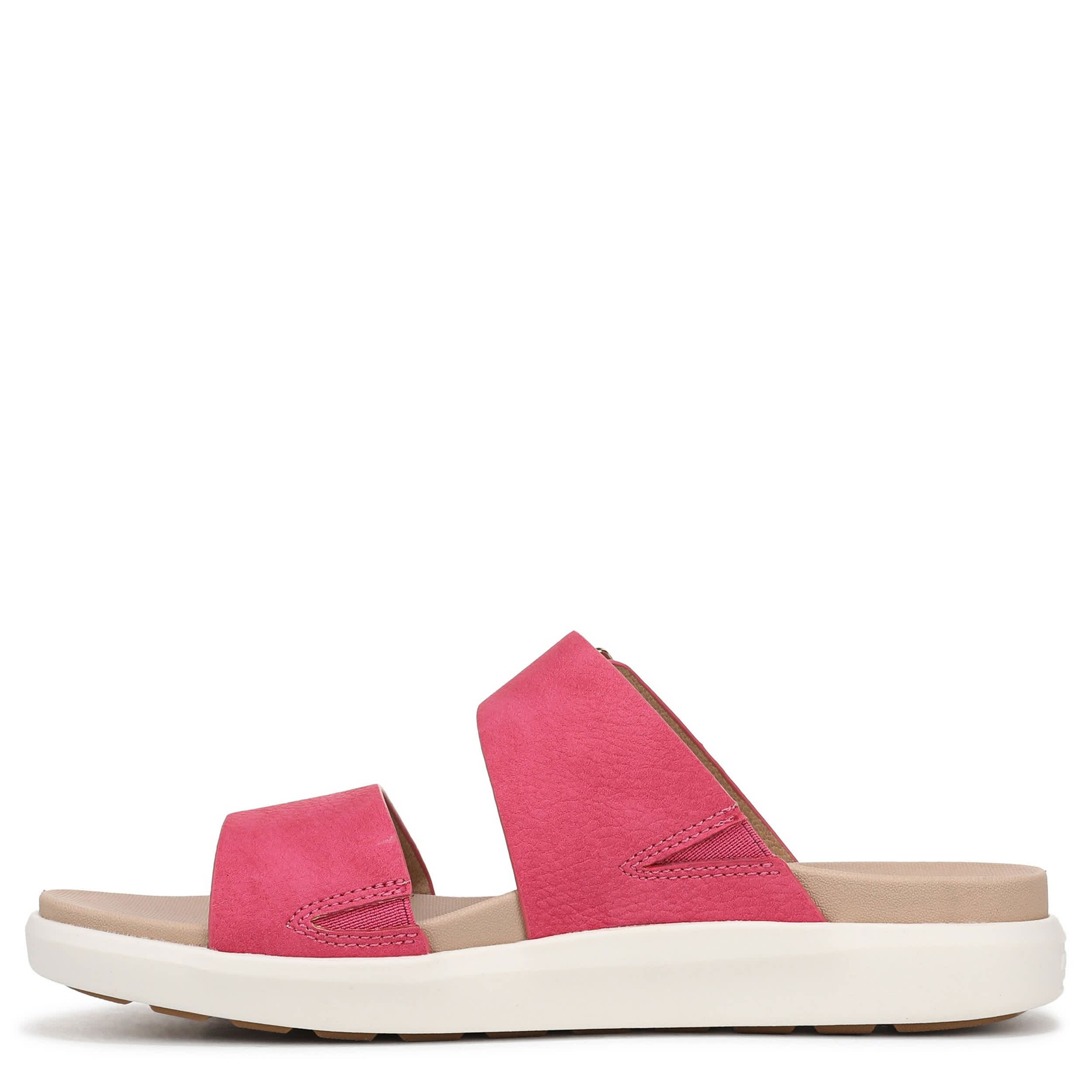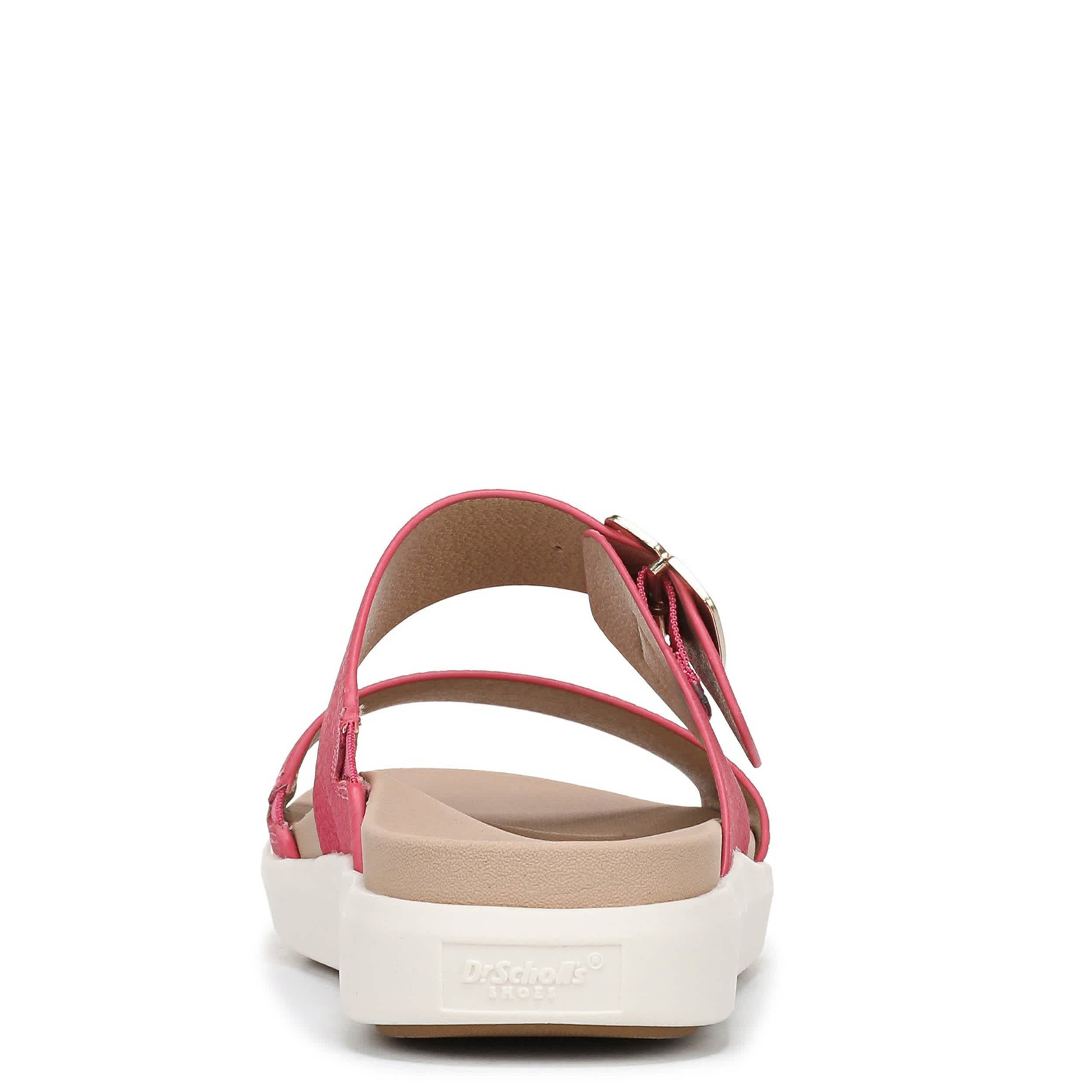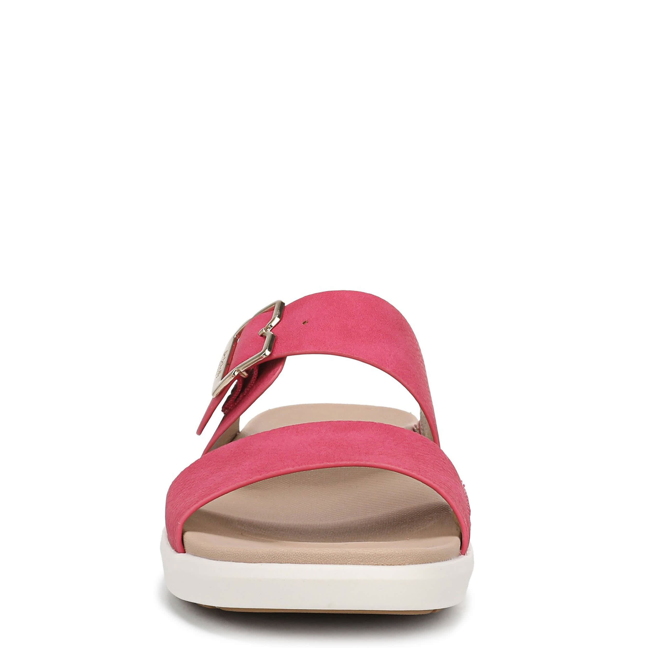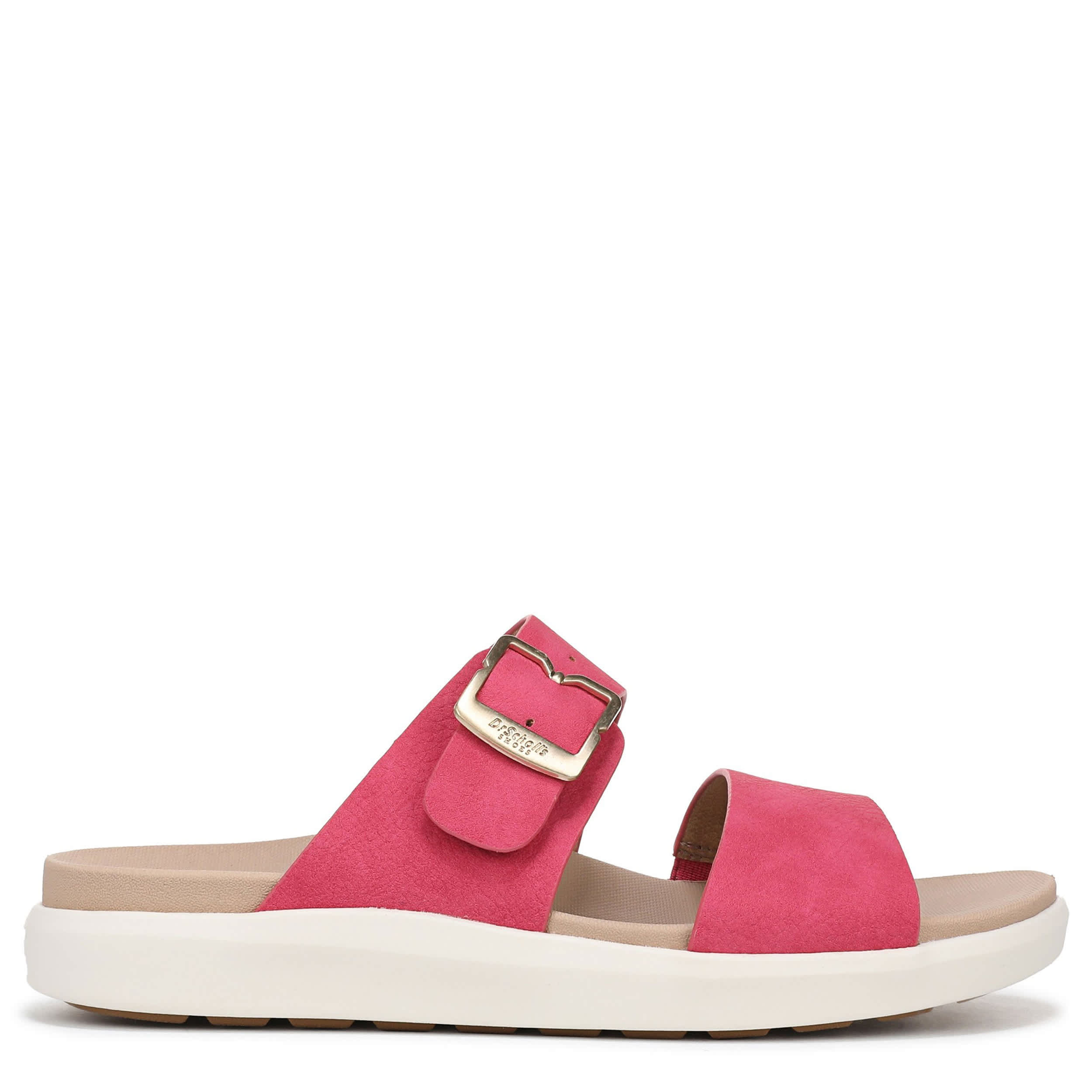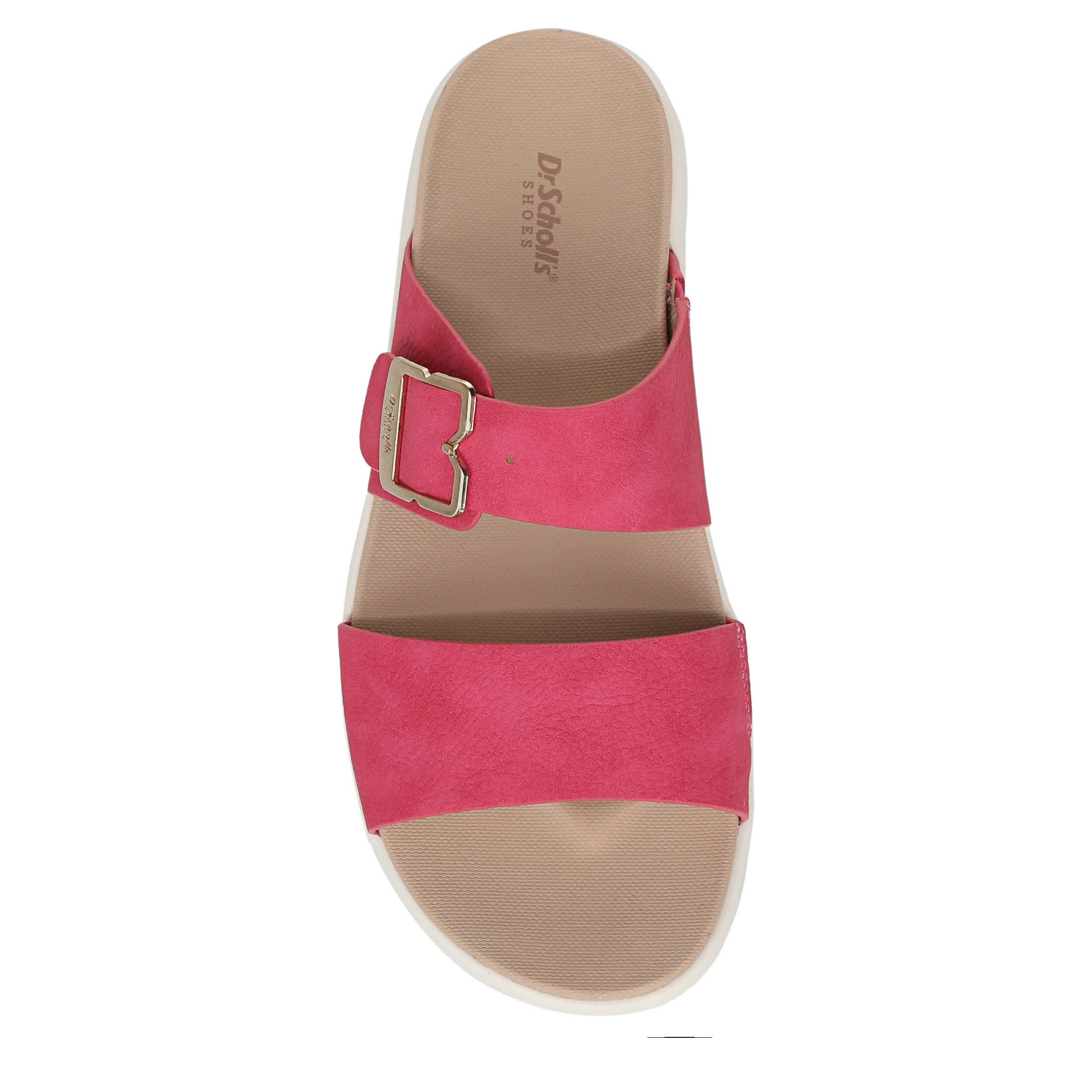 Feel great in the All Time slide sandal from Dr. Scholl's wherever you go. Featuring a faux leather with sidewalls pretreated with Easy Clean Repellant to keep them bright, this dual banded slip-on is comfy and adjustable. The Insole Technology adds anatomical cushioning, while the hybrid sport sole make your feet happy.