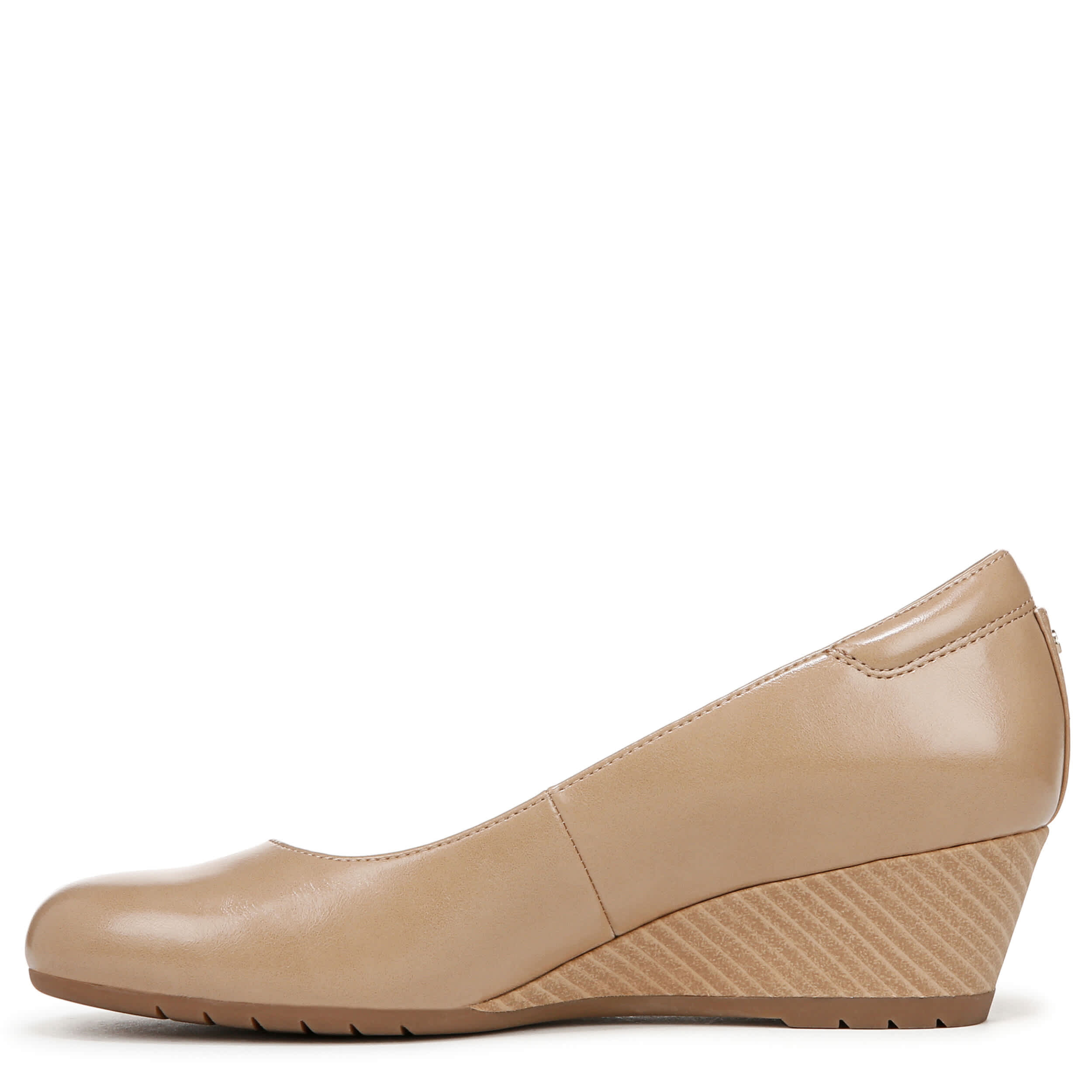 Stay stylish with the Be Flex pump from Dr. Scholl’s. With a faux leather upper, this shoe offers all-day comfort with a padded collar and anti-odor insole technology with anatomical cushioning and support. The stacked wedge heel lifts your everyday look.