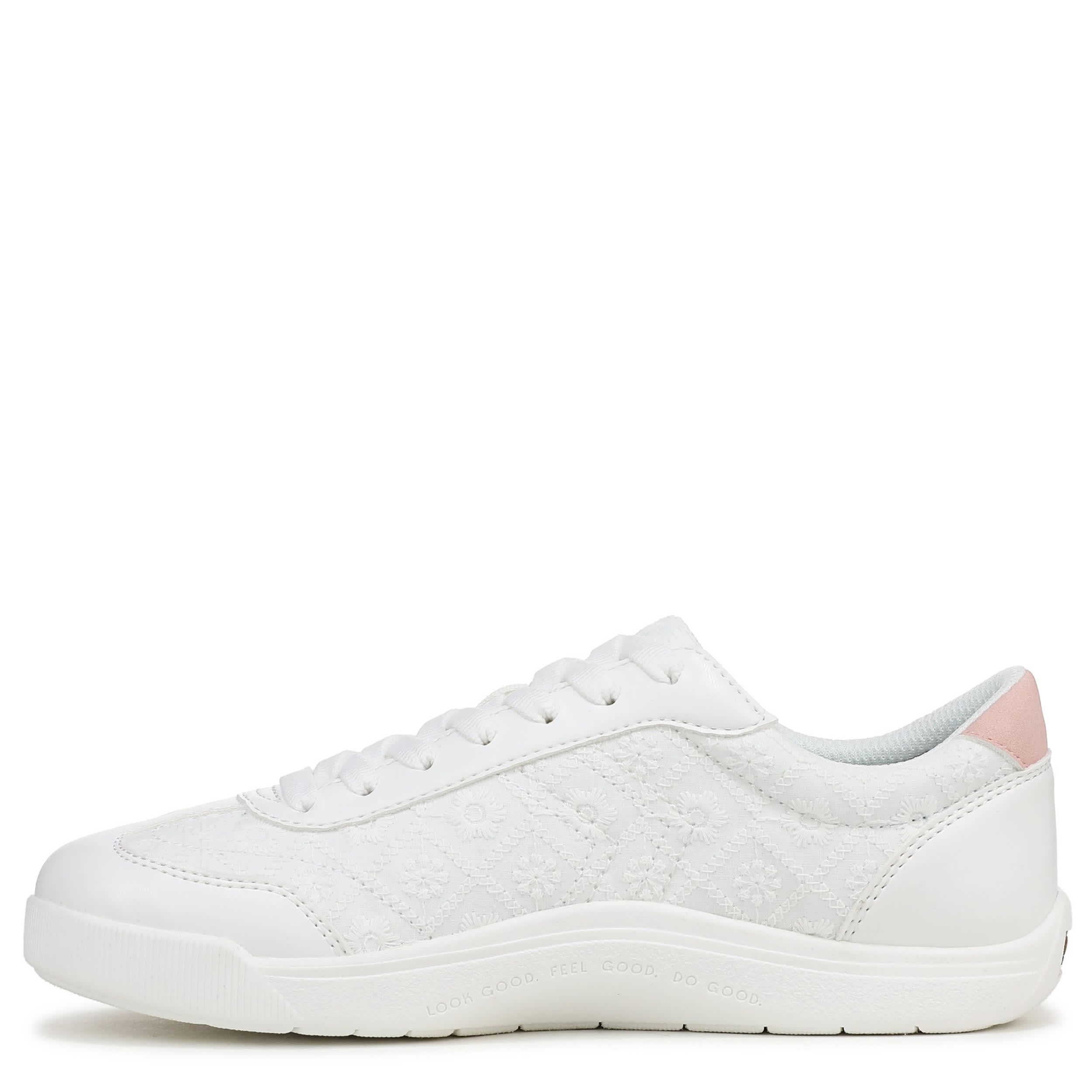 Pair your everyday style with the Be True sneaker from Dr. Scholl’s. Featuring a floral-embroidered fabric upper complemented by a chevron stitch detailing, this sneaker has a wider toe box to mimic walking barefoot. Made of 15% algae-infused BLOOM® foam, the Insole Technology provides fresh comfort and arch support, while the flexible outsole is lightweight.
