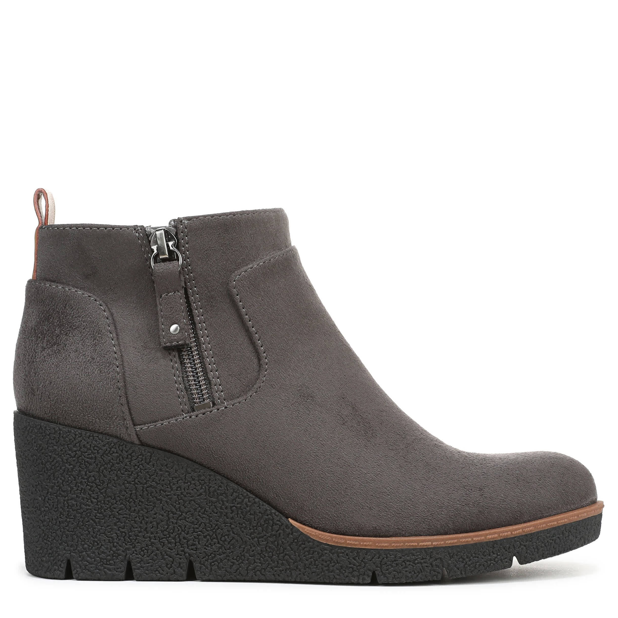 Make a statement in the stylish Bianca women's bootie from Dr. Scholl's. With a microfiber upper featuring an outside zipper and back pull tab for easy slip-on, this almond-toed boot, with its wedge heel, is the perfect choice to amp up any outfit. An anatomical insole cushions and supports your feet, while the durable outsole provides excellent grip and stability.