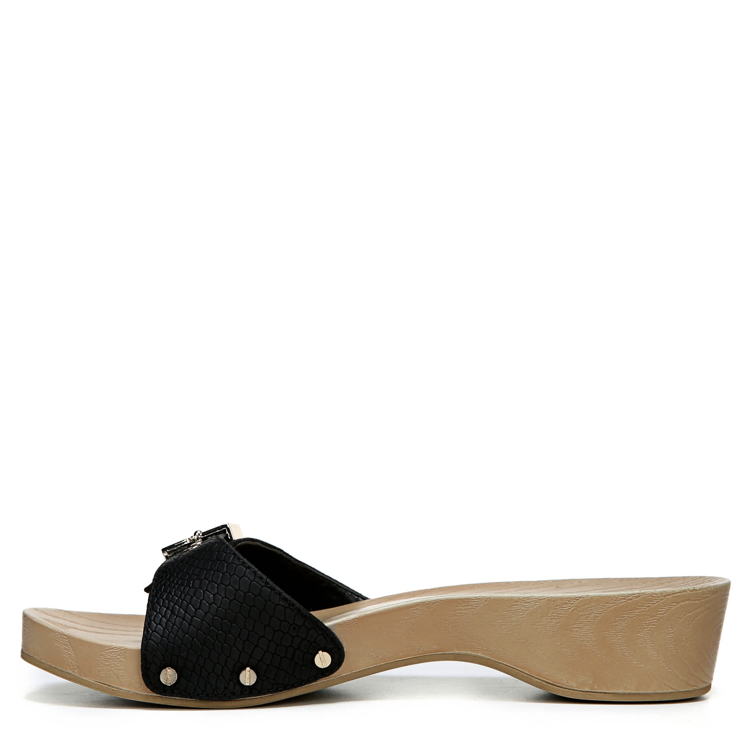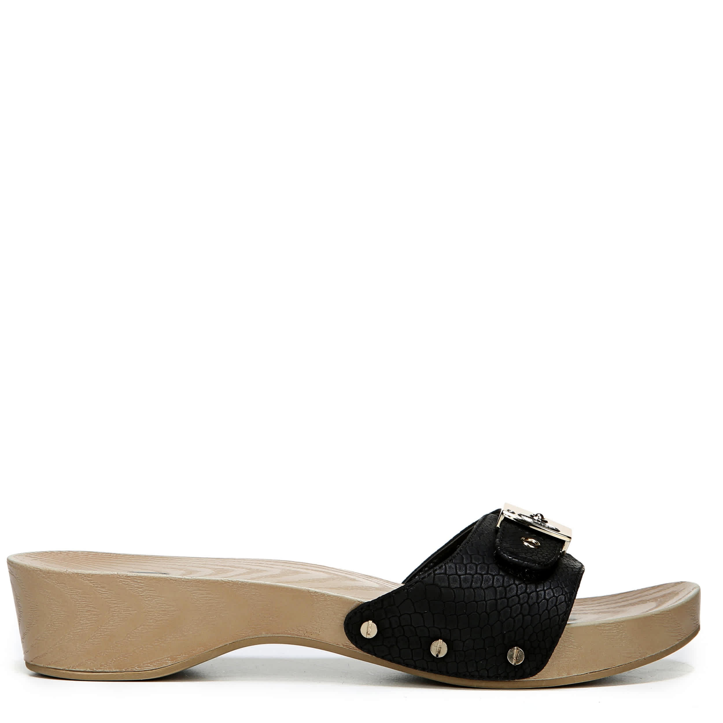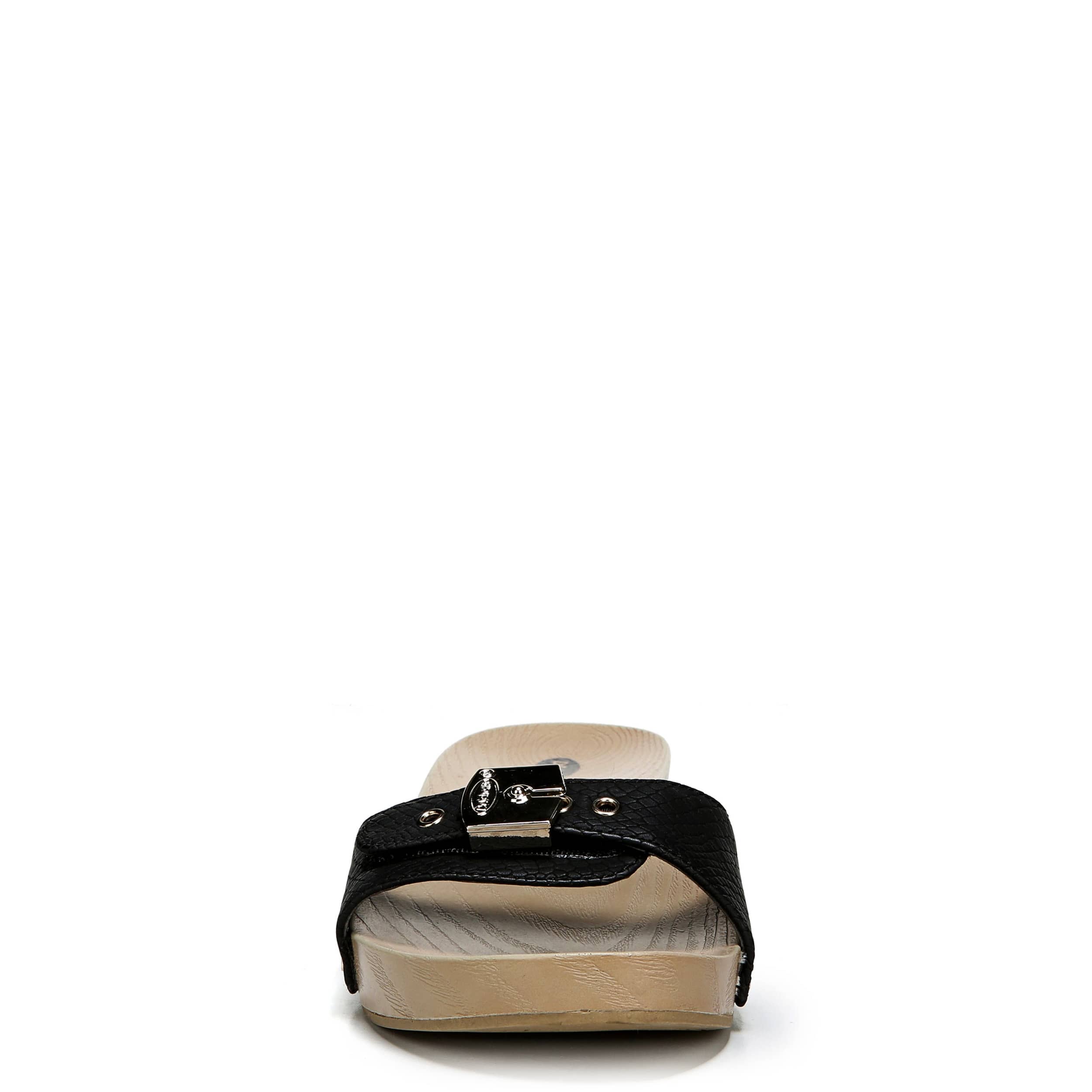 Slip on the cute and classy Classic sandal from Dr. Scholl's and immediately feel the comfort and quality supporting your feet. The buckle accent along the vamp, made of a faux leather upper, adds just a touch of style that compliments your dressy summer ensembles.