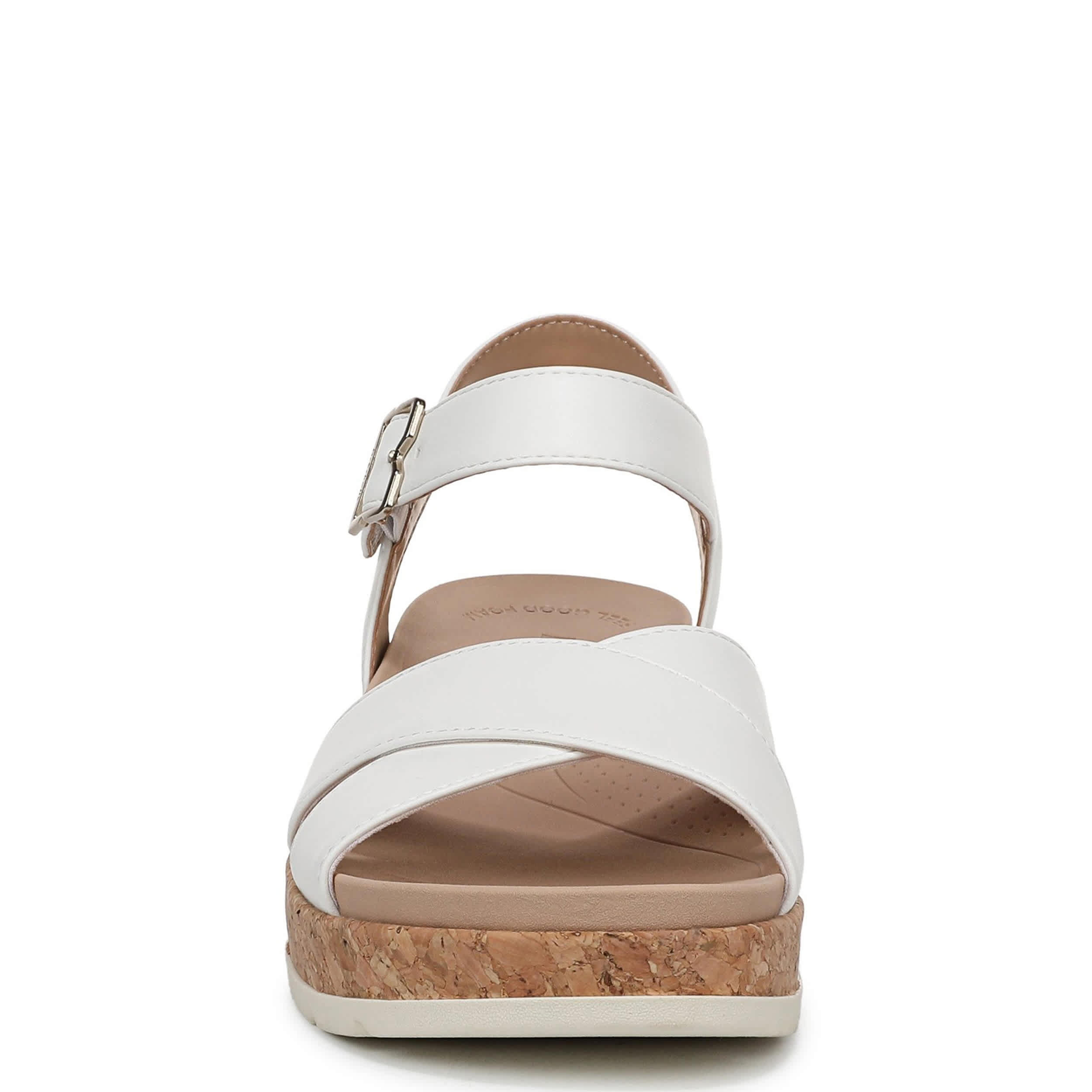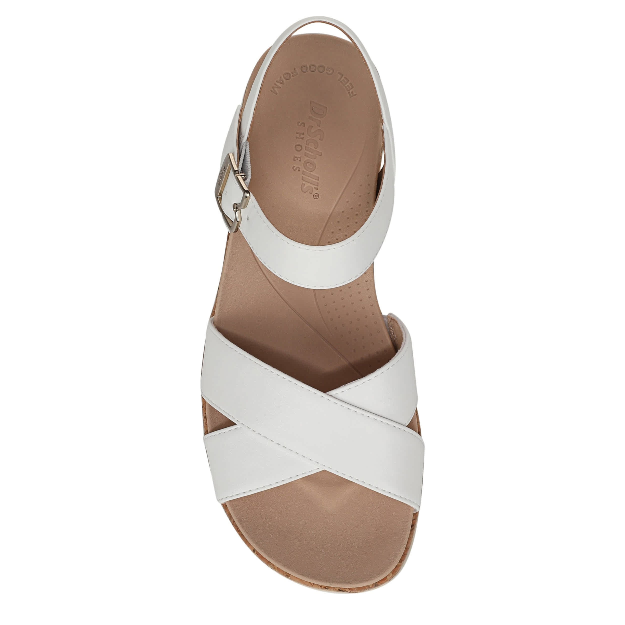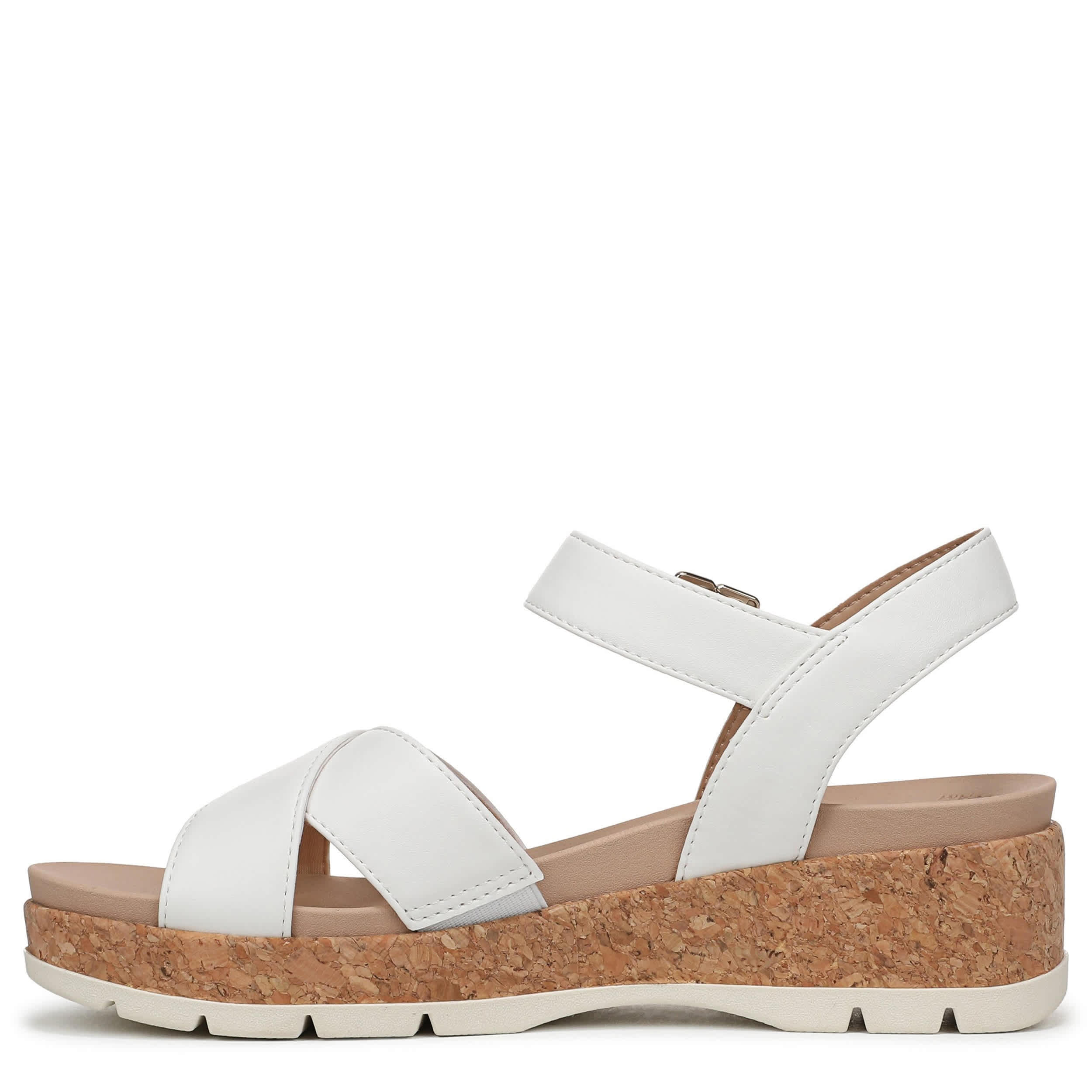 Trend forward in the Free Love women's sandal from Dr. Scholl's. Featuring a metallic faux leather upper with crisscross straps and seamless stitching for extra style, this platform puts less pressure on your foot. The Insole Technology offers more bounce, while the sturdy heel adds just enough lift.