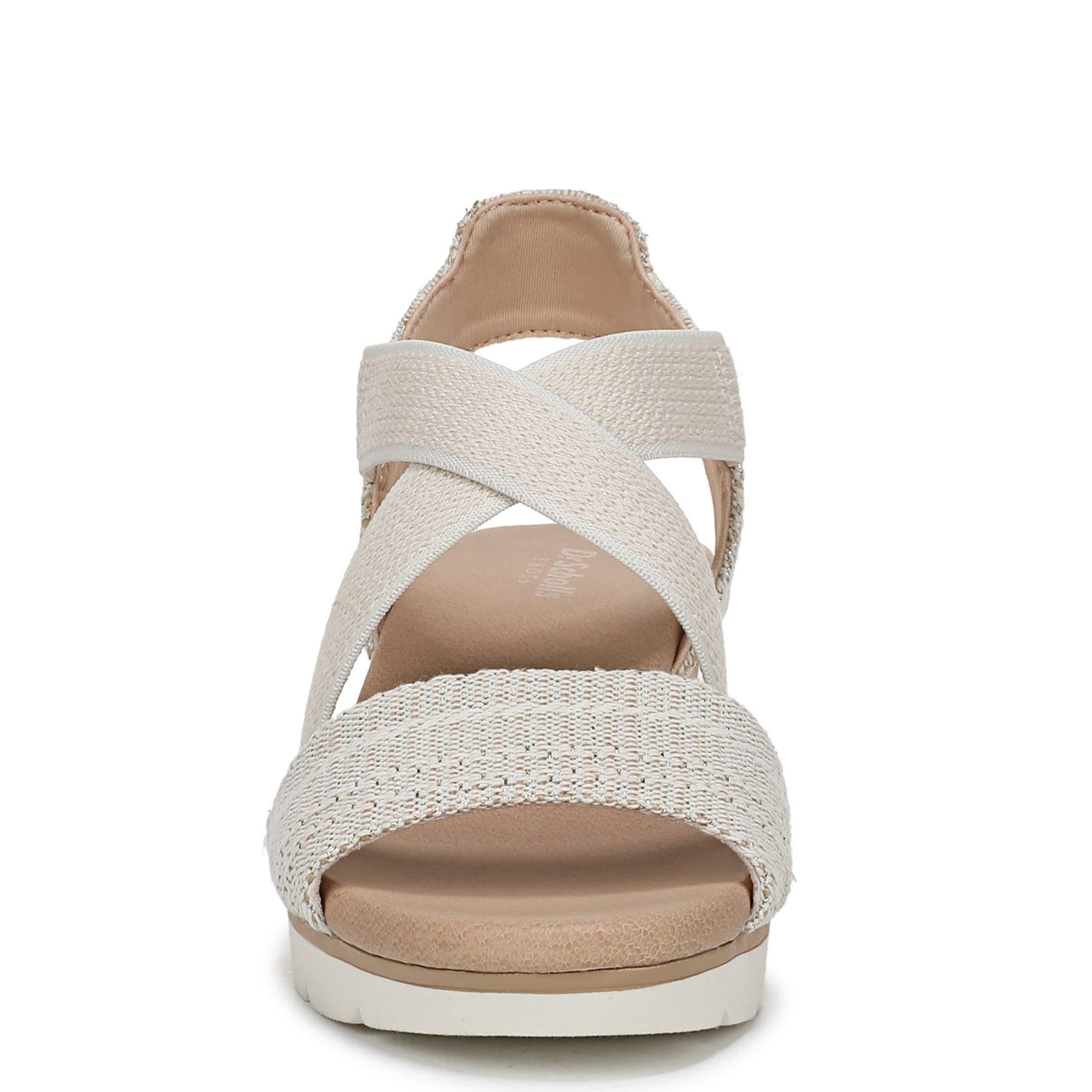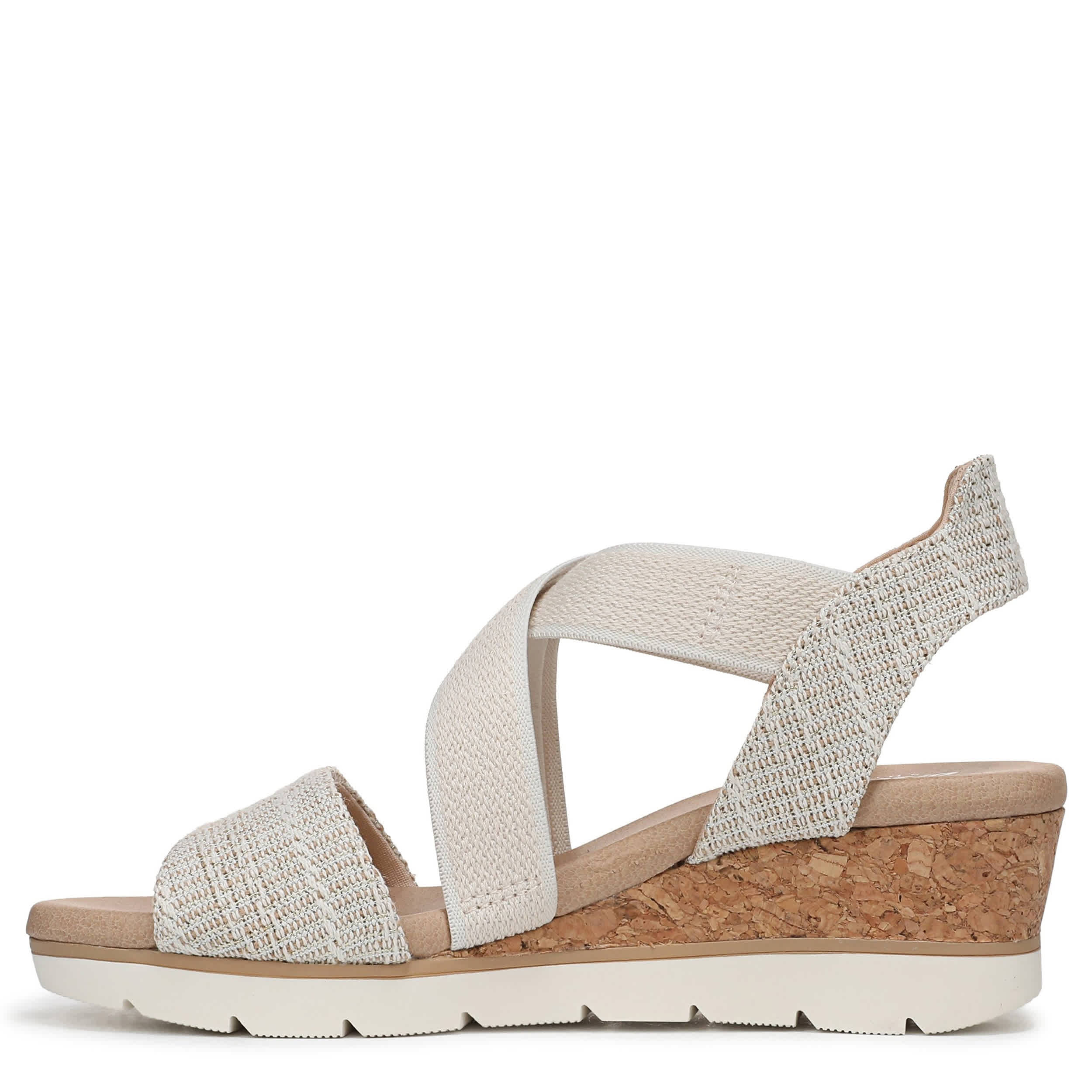 Step out in confidence with the Dr. Scholl's Just Cute wedge sandal. Made with a stretchy, strappy upper with a secure, sporty hybrid design, this shoe is easy to pair with any outfit. Insole Technology includes arch support, while the wedge gives just enough elevation.